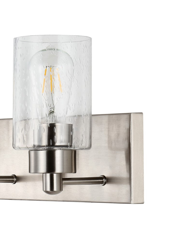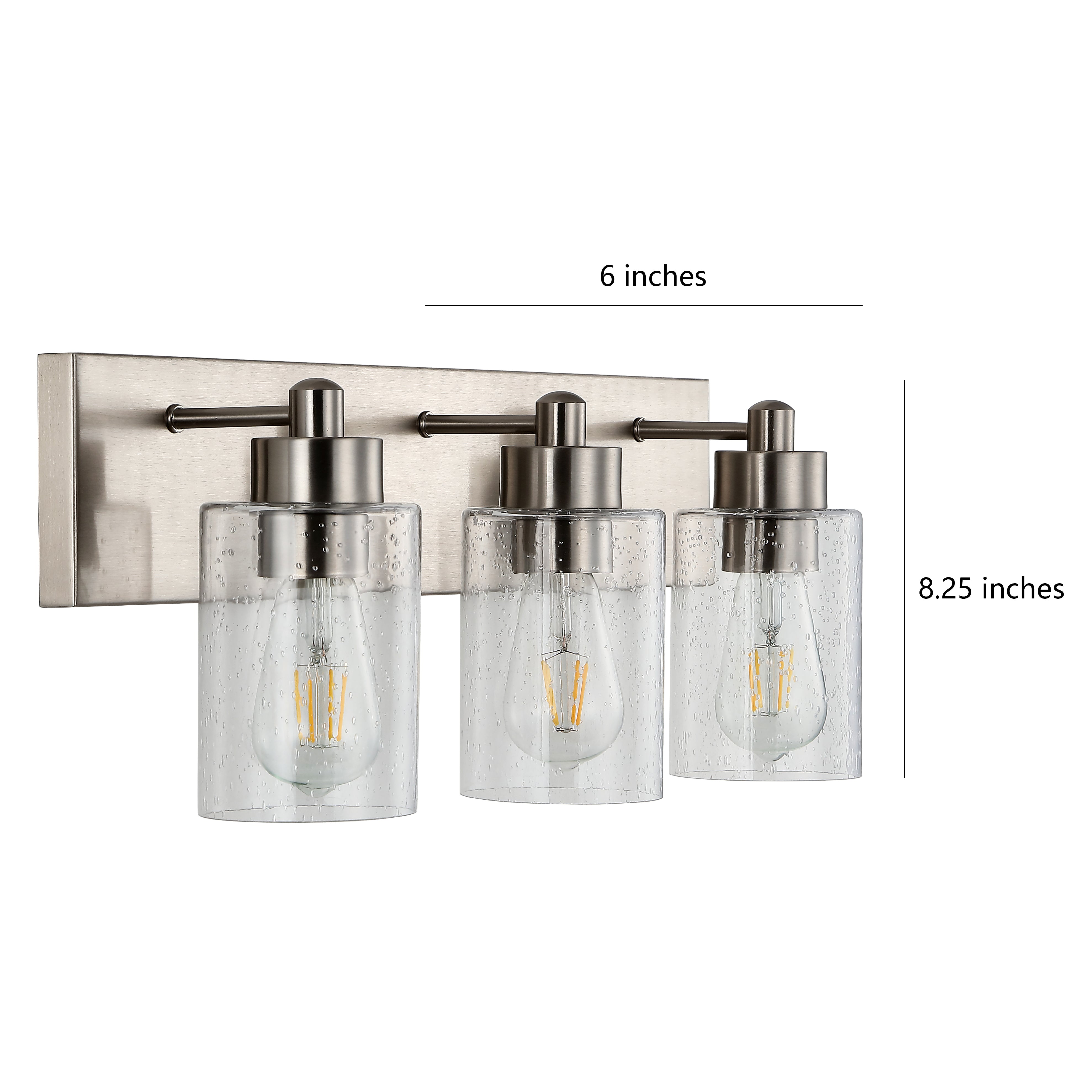 Elevate your bath vanity with our modern take on a classic mid-century wall light. Three LED bulbs are included, casting a warm glow and providing plenty of light. The pewter-inspired nickel finish adds Art Deco sparkle, and clear bubble-glass shades add to the elegant vintage style. This vanity light can be installed either facing up or down.