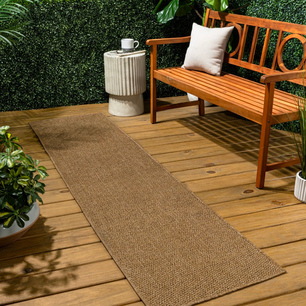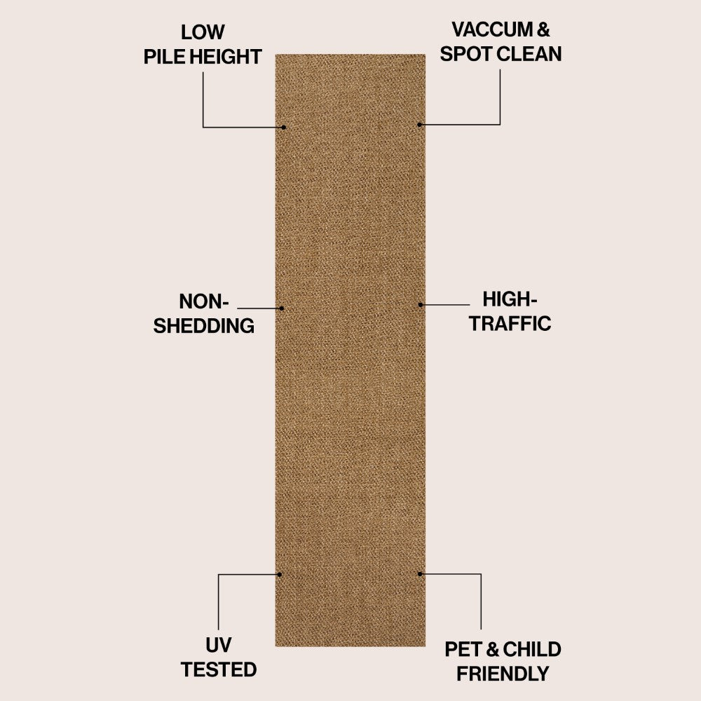 - Woven texture replicates the look of jute or sisal in warm brown tones