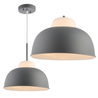 Oversized drum lights have been the top trend in boutique hotels and chic restaurants for the past couple of years, so we decided to make one scaled and designed for home use. In a matte gray metal and white glass construction, its colors are echoed not only in the shade but in the ceiling connection also. Using only a single bulb (one 9W LED bulb included), it creates maximum glow with the reflective white interior of the drum.