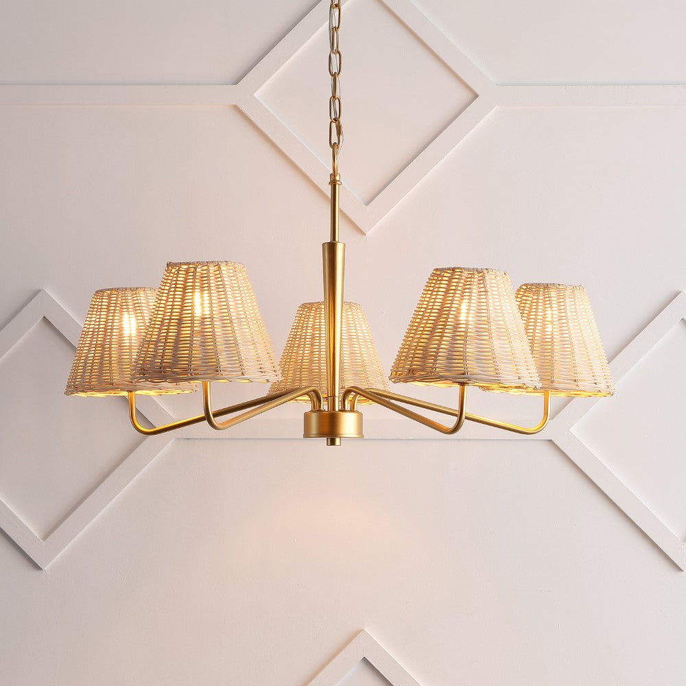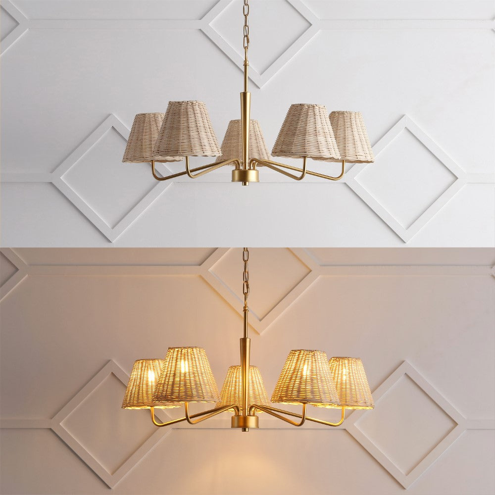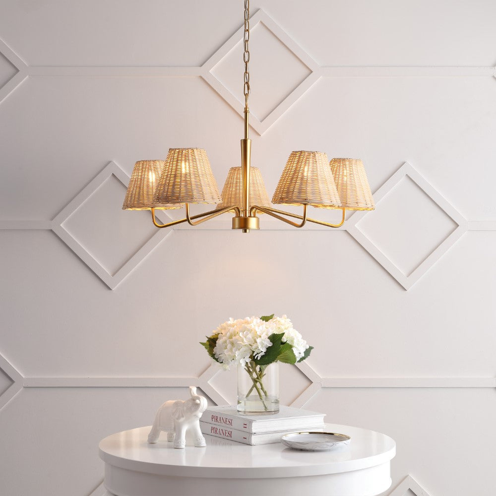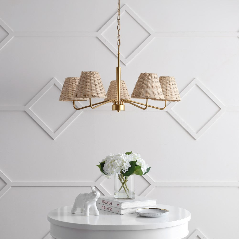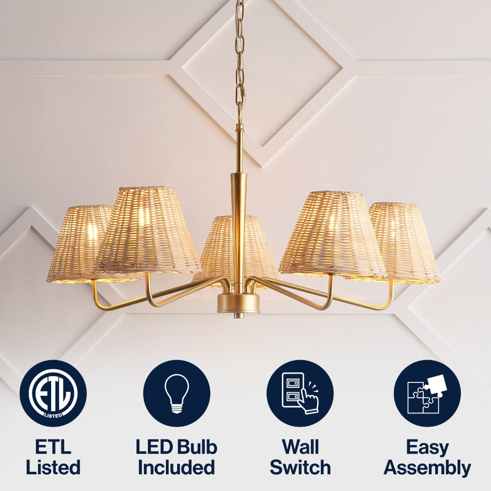 Modern design meets coastal chic in this stylish 5-light chandelier. The on-trend design combines a metallic finish with natural accents for an uncluttered, minimalist look. Warm LED bulbs provide bright lighting for the kitchen island, dining table or office.