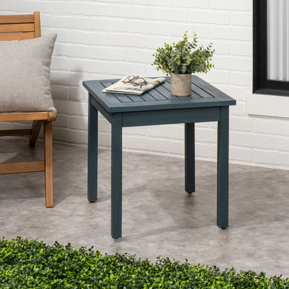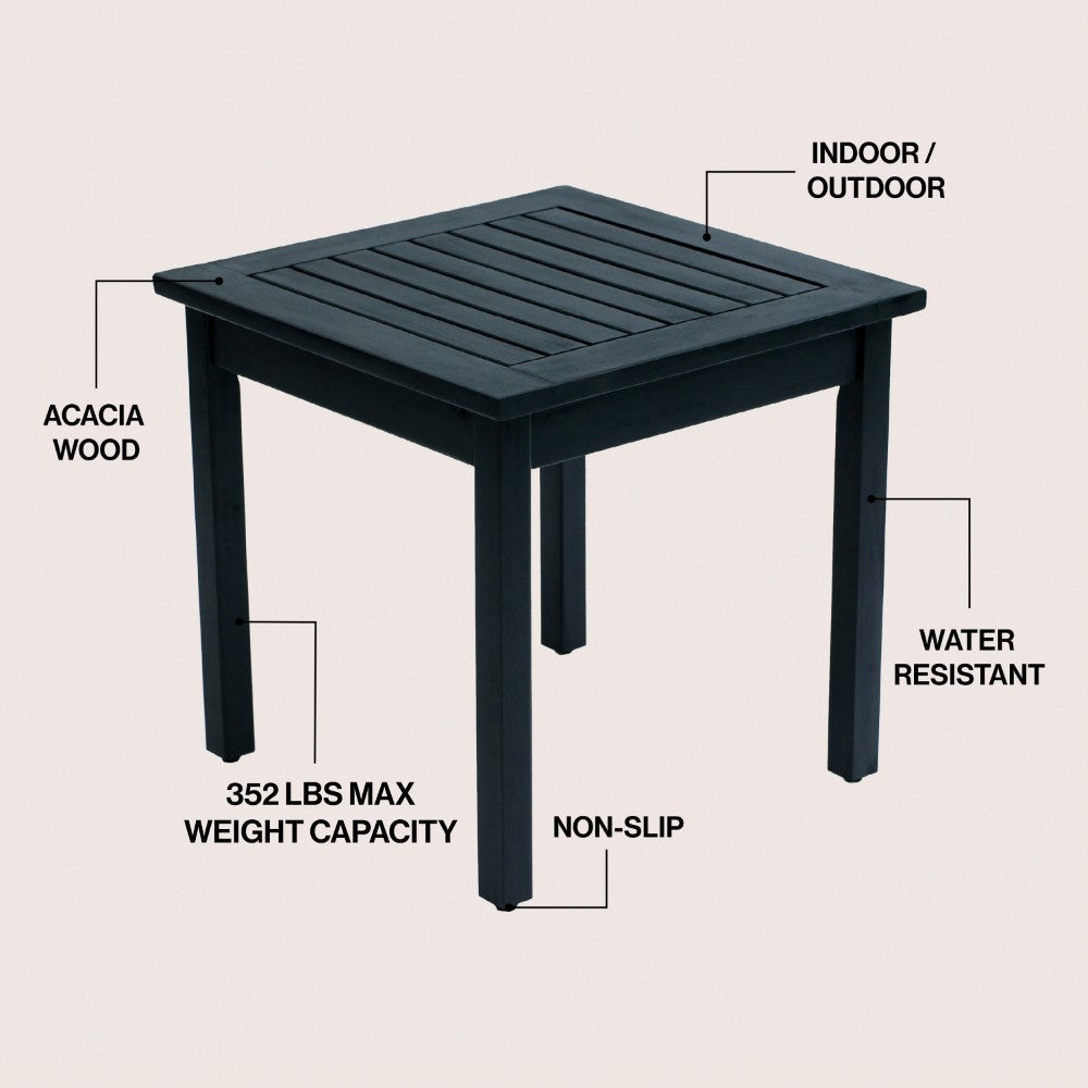 This classic slatted table fits easily beside a sofa or between two patio chairs. The square, modern design is made from sturdy acacia wood with a protective oil finish. Create the perfect coffee or cocktail spot on your deck or patio with this timeless outdoor table.