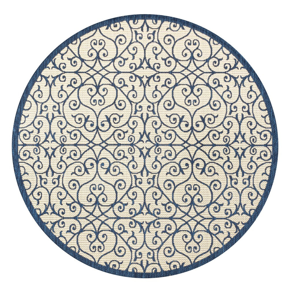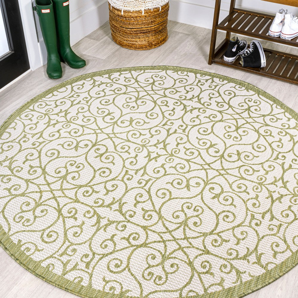 Alfombra Vintage Filigree Textured Weave Indoor/outdoor Round Rug