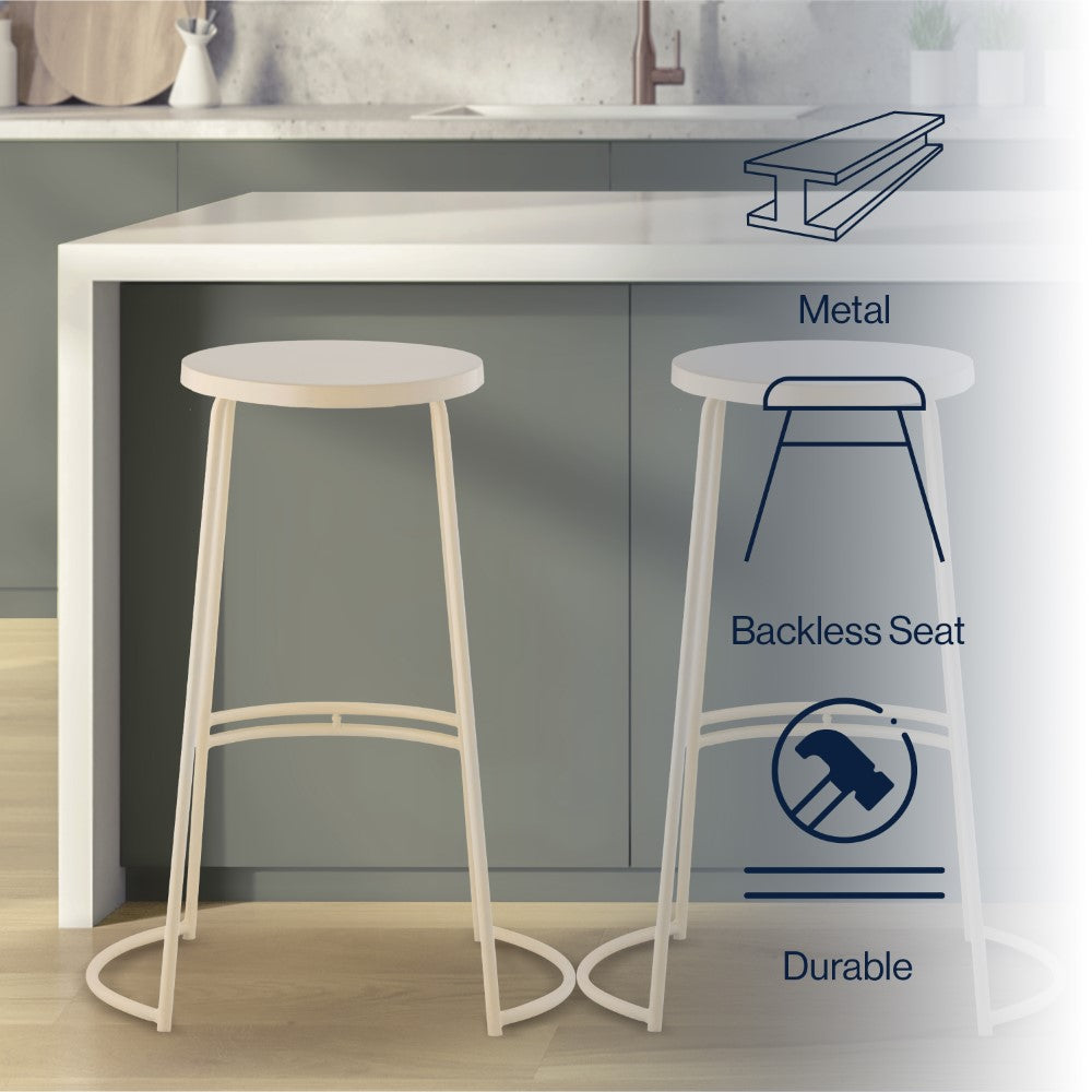 - Made from durable metal with an integrated footrest, this stool is a sturdy yet stylish addition to any home