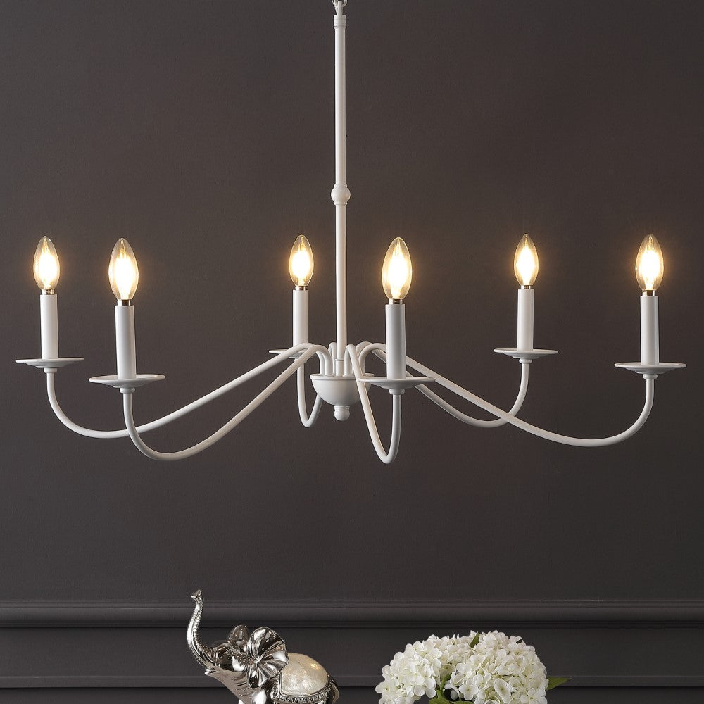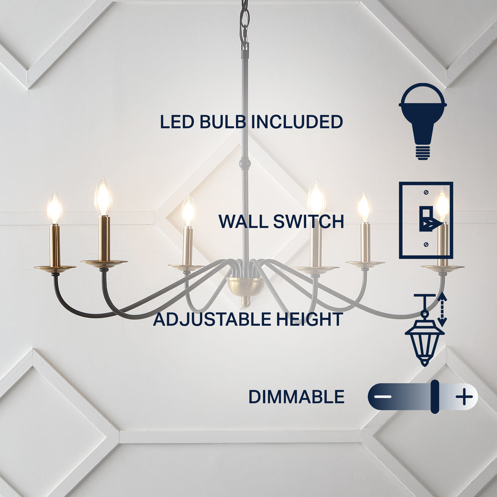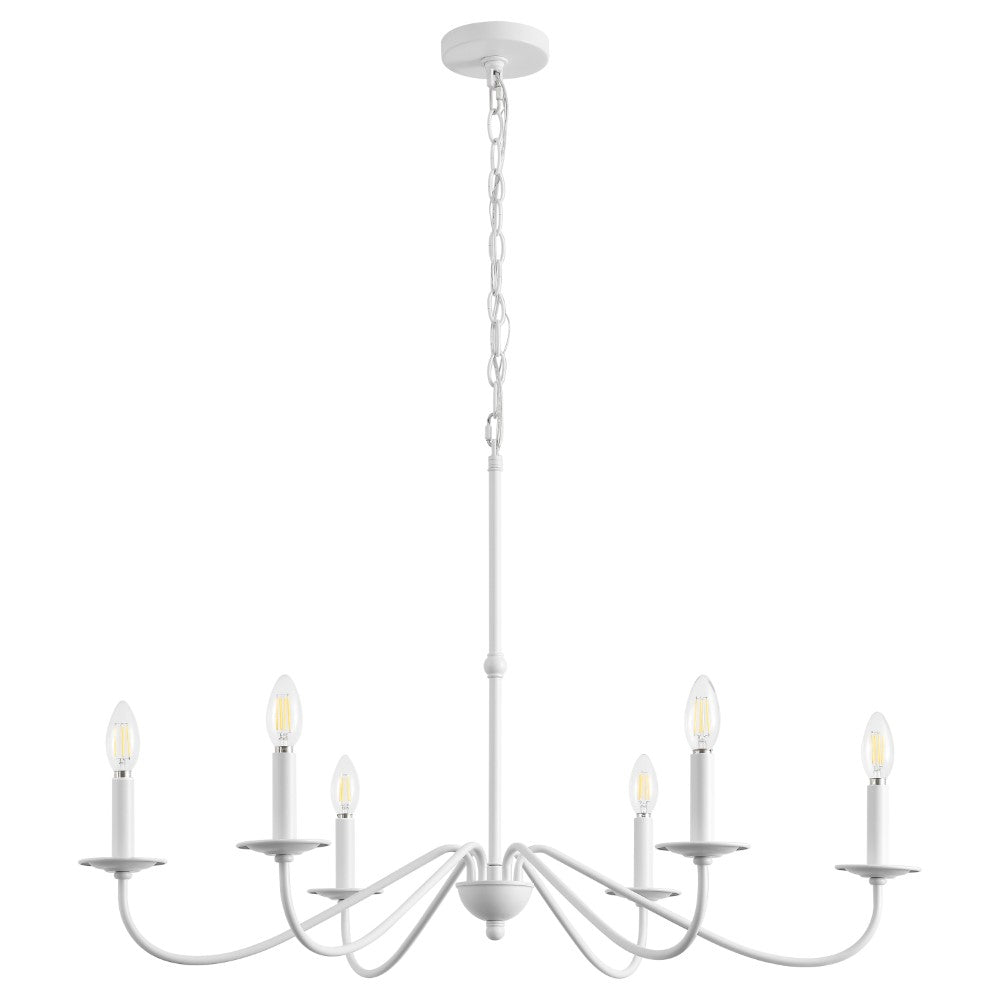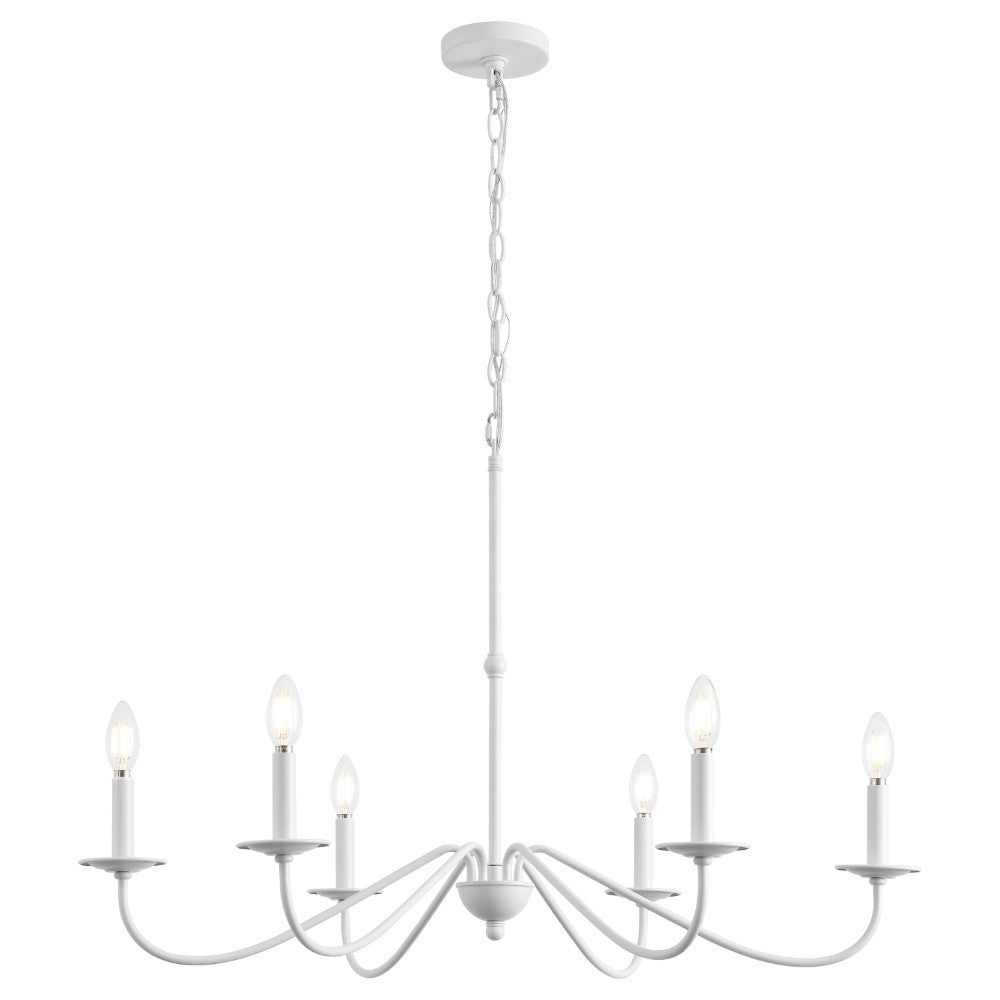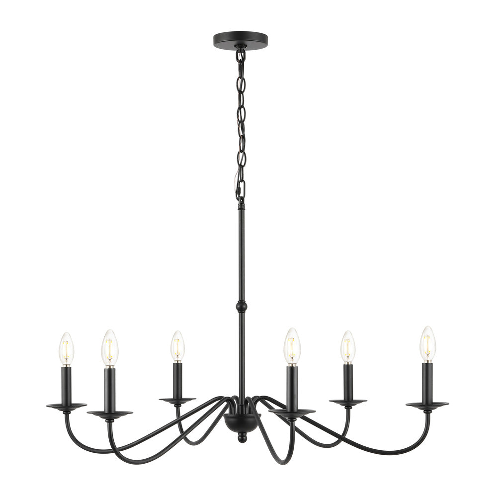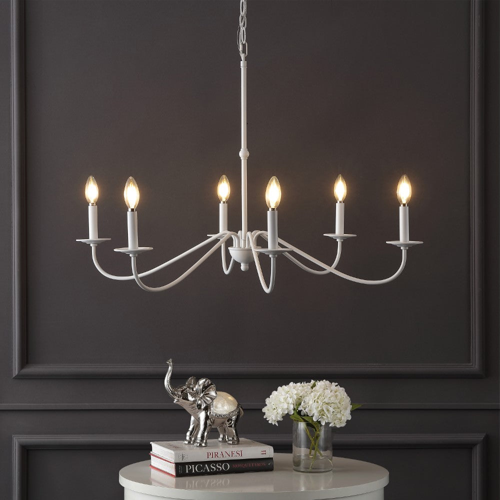 Based on historic wrought iron chandeliers, our rustic 6-light design features a quality finish. Perfectly sized for a farmhouse dining room, tall entry, or great room with high ceilings, our chandelier is just under 35" wide and features tall candles with LED candle bulbs. Use this versatile chandelier in a modern farmhouse, French country or Tuscan style home, or to add character to a rustic, industrial space.