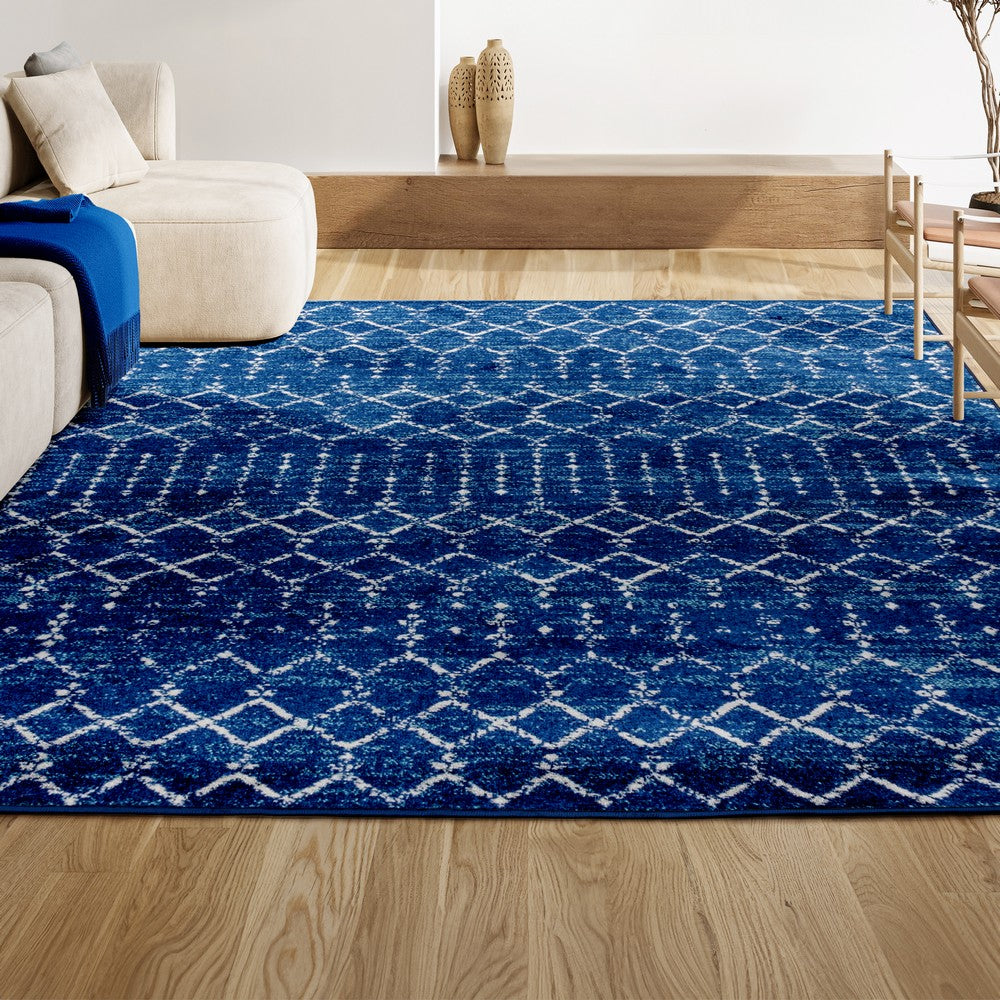 Kolkata Moroccan HYPE Boho Vintage Area Rug Blue/White