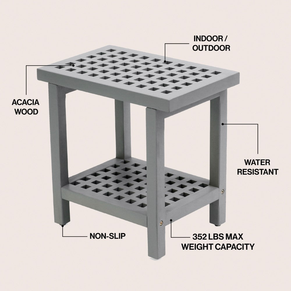 Liora 18.1" Modern Classic Grid Slat Solid Acacia Wood Indoor/Outdoor Shower Stool