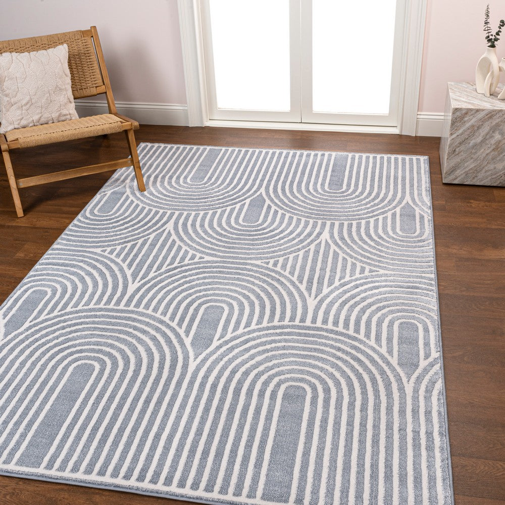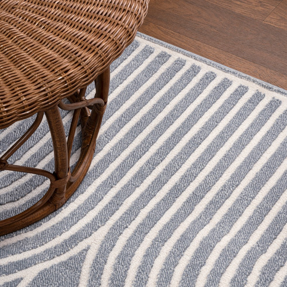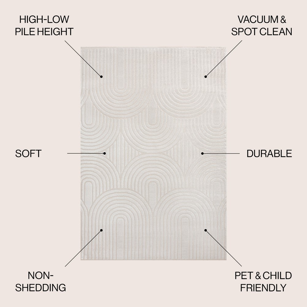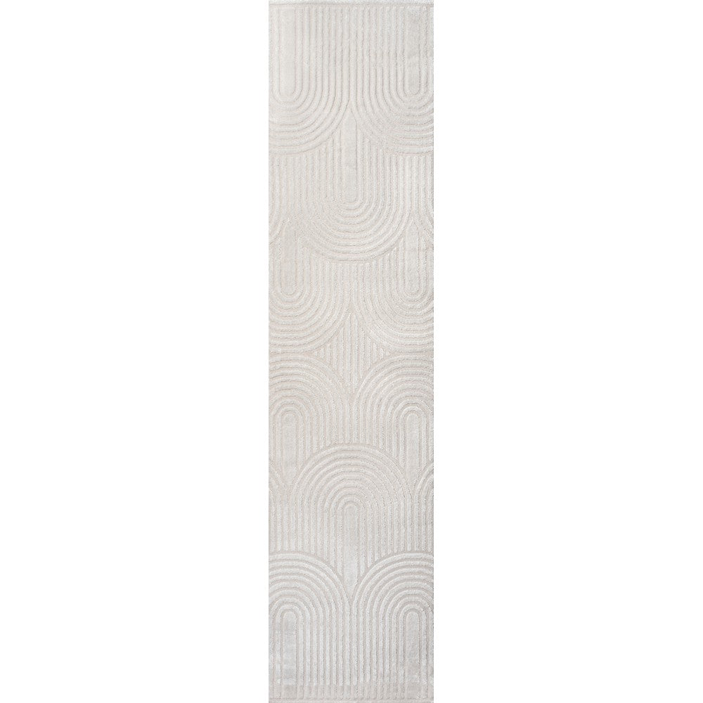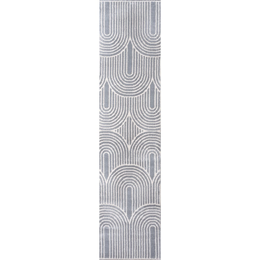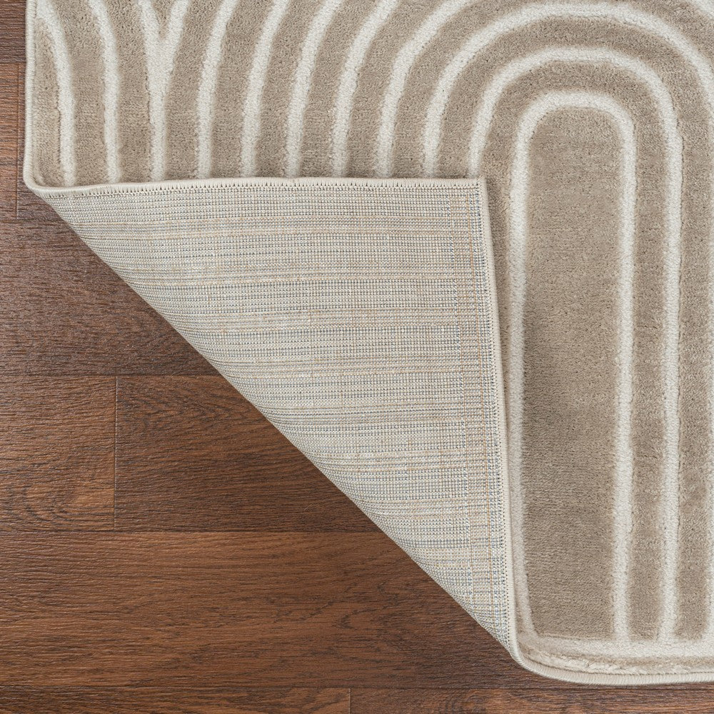 Pastel MidCentury Art Deco Striped Arches Two-Tone High-Low Area Rug