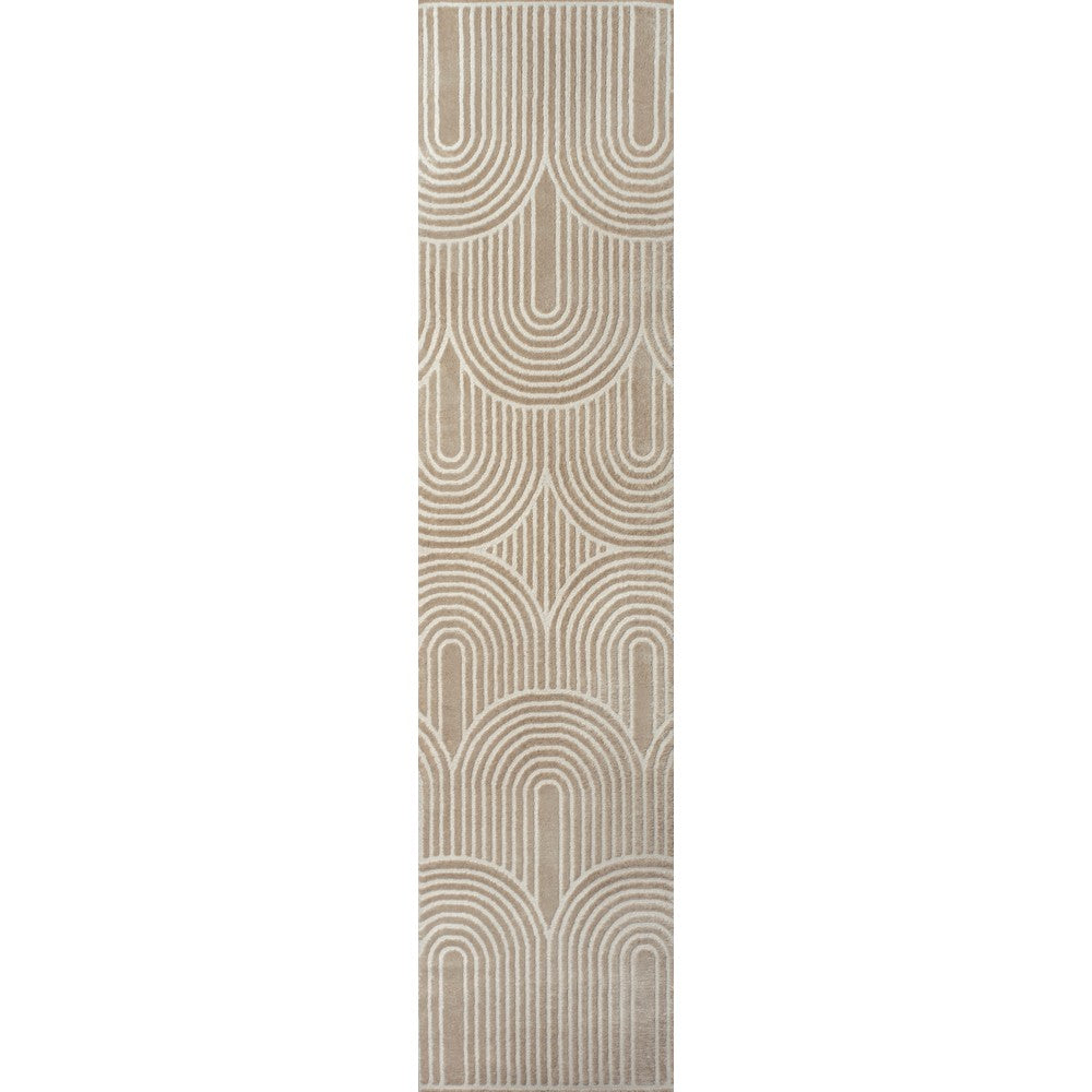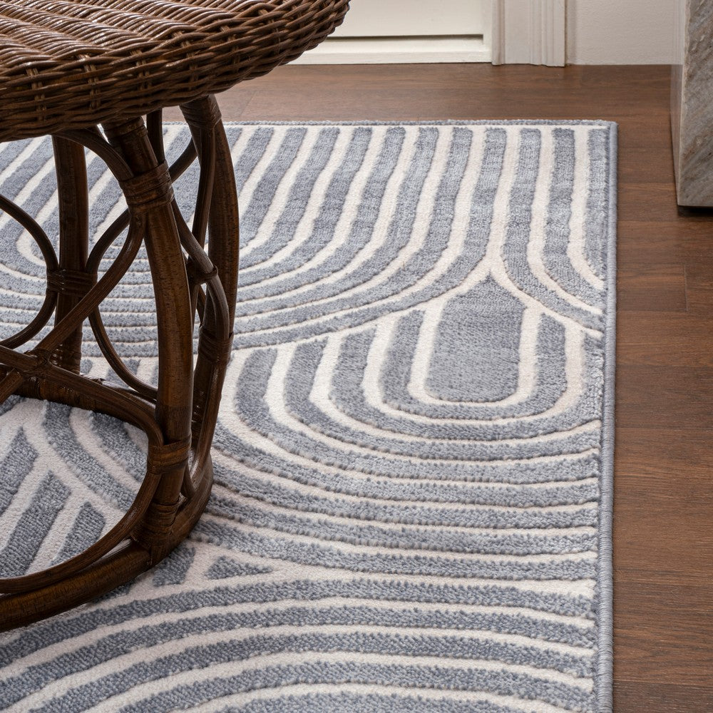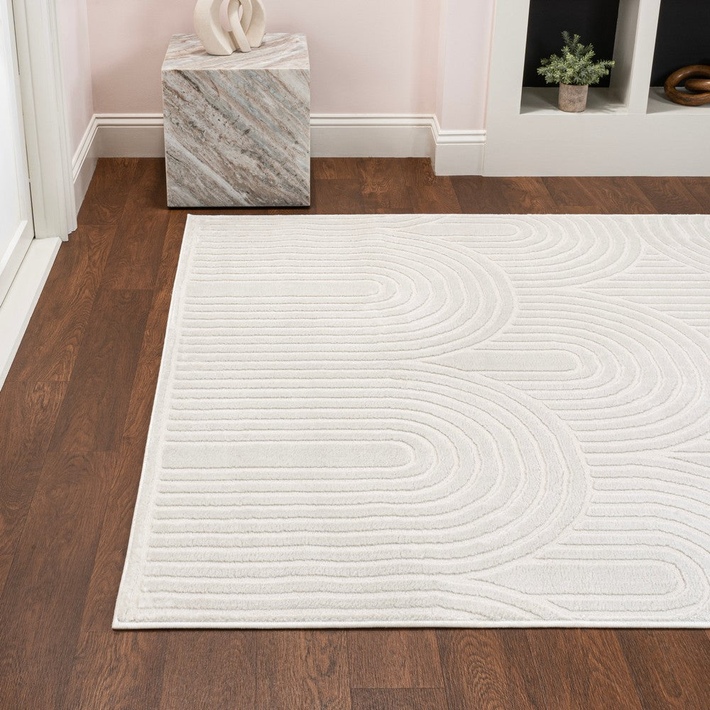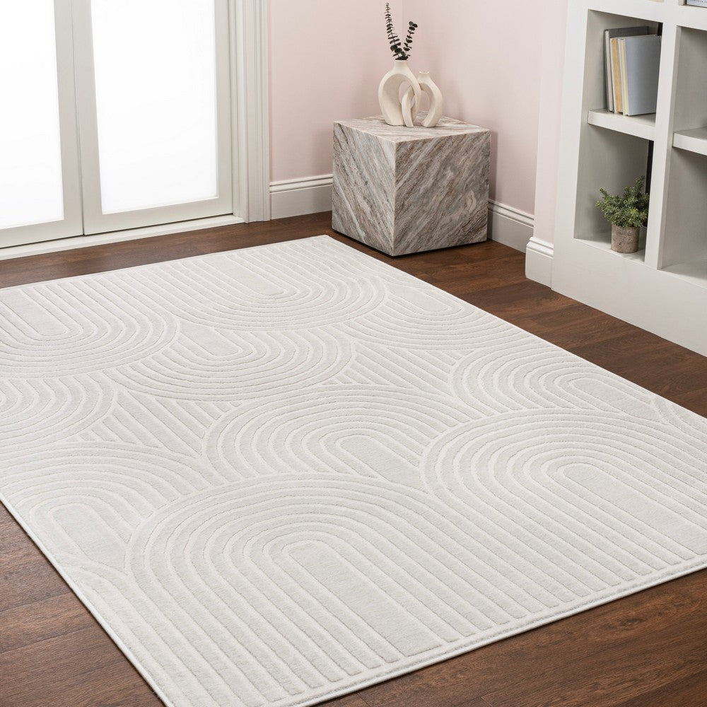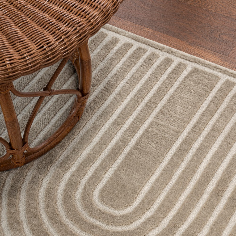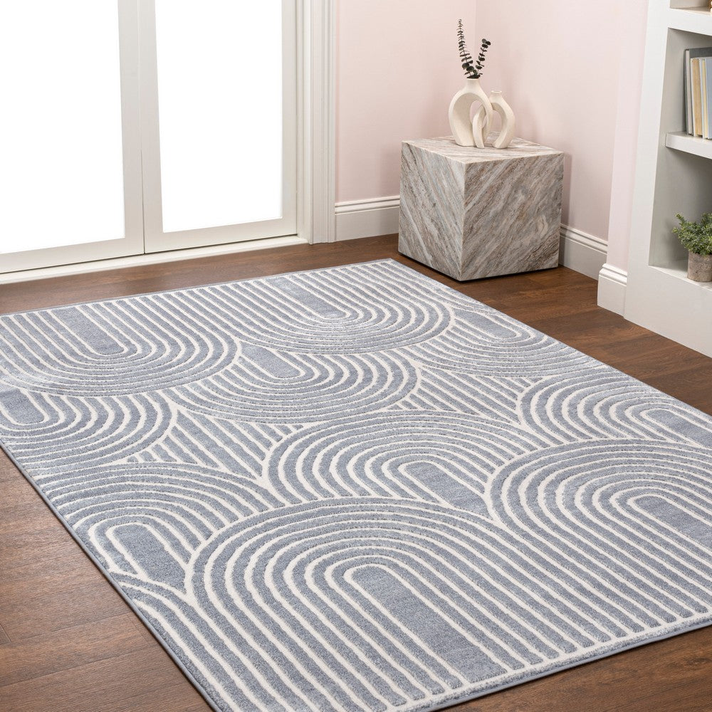 Pastel MidCentury Art Deco Striped Arches Two-Tone High-Low Area Rug