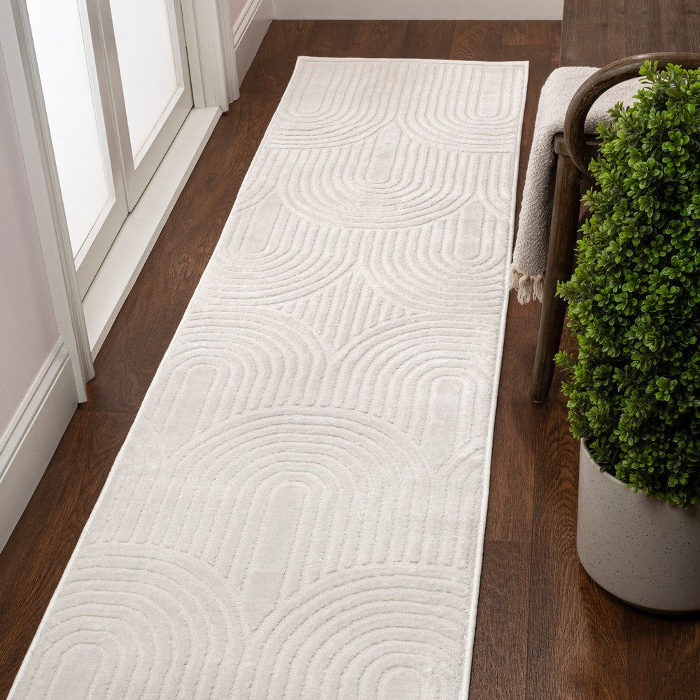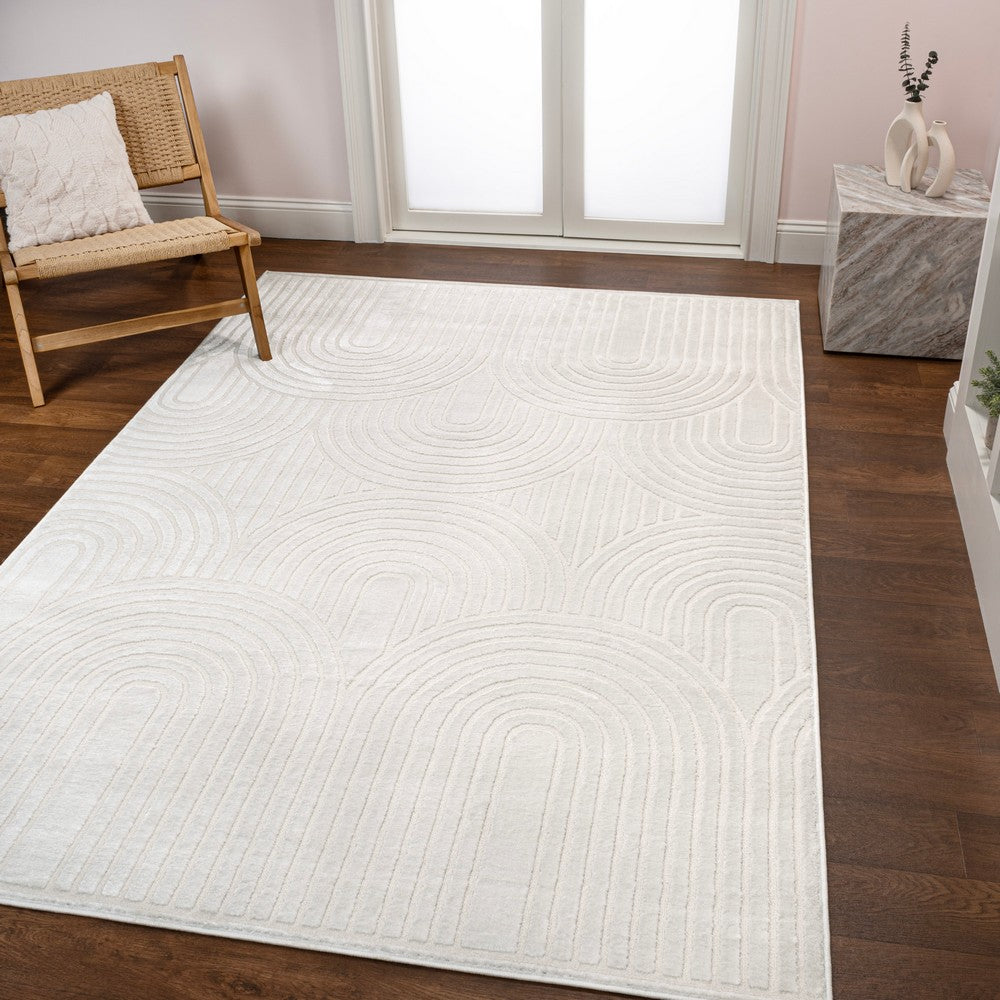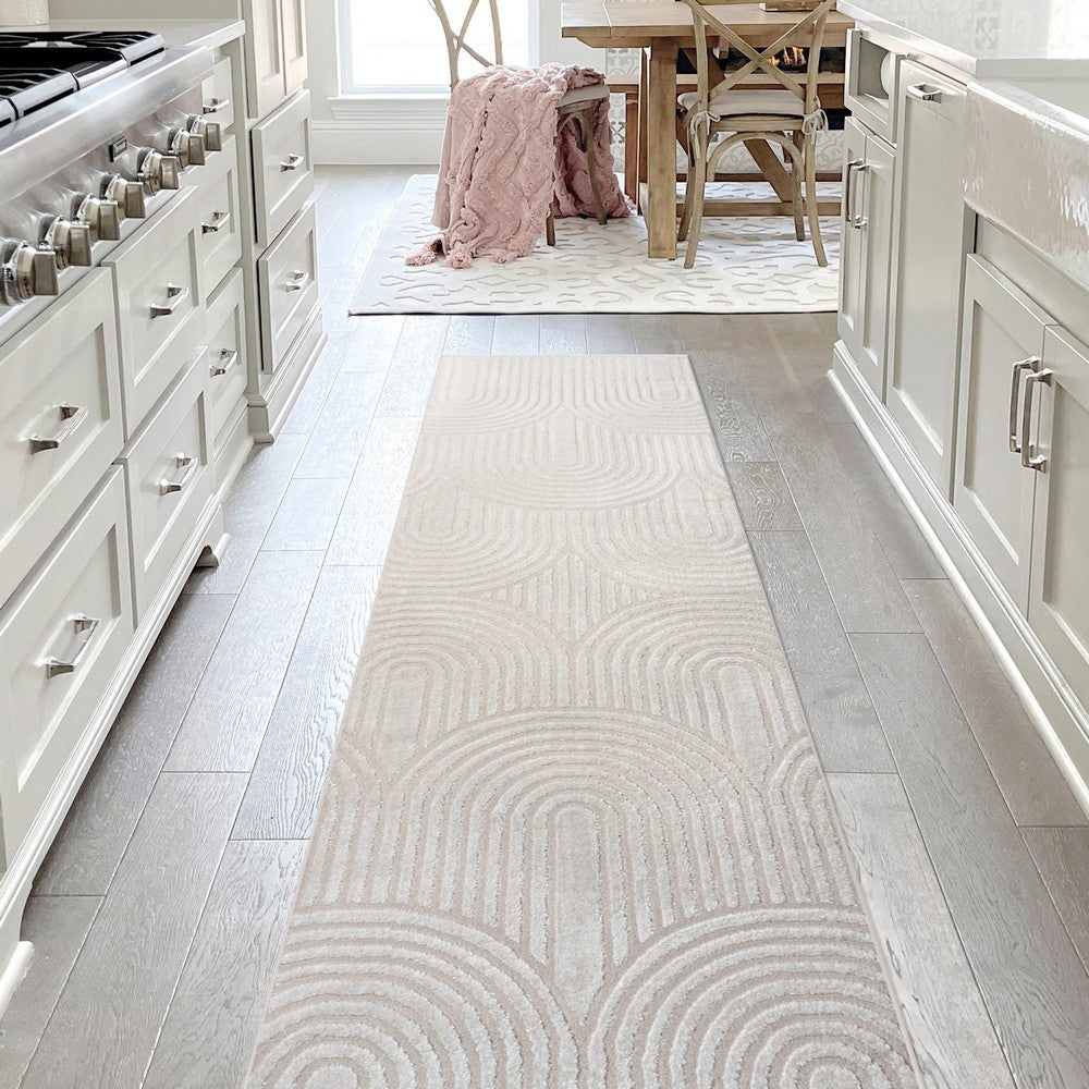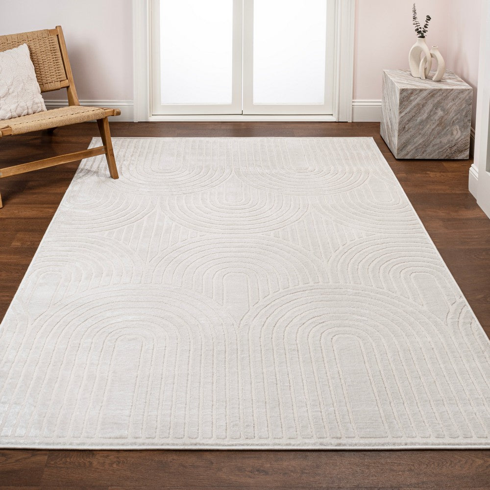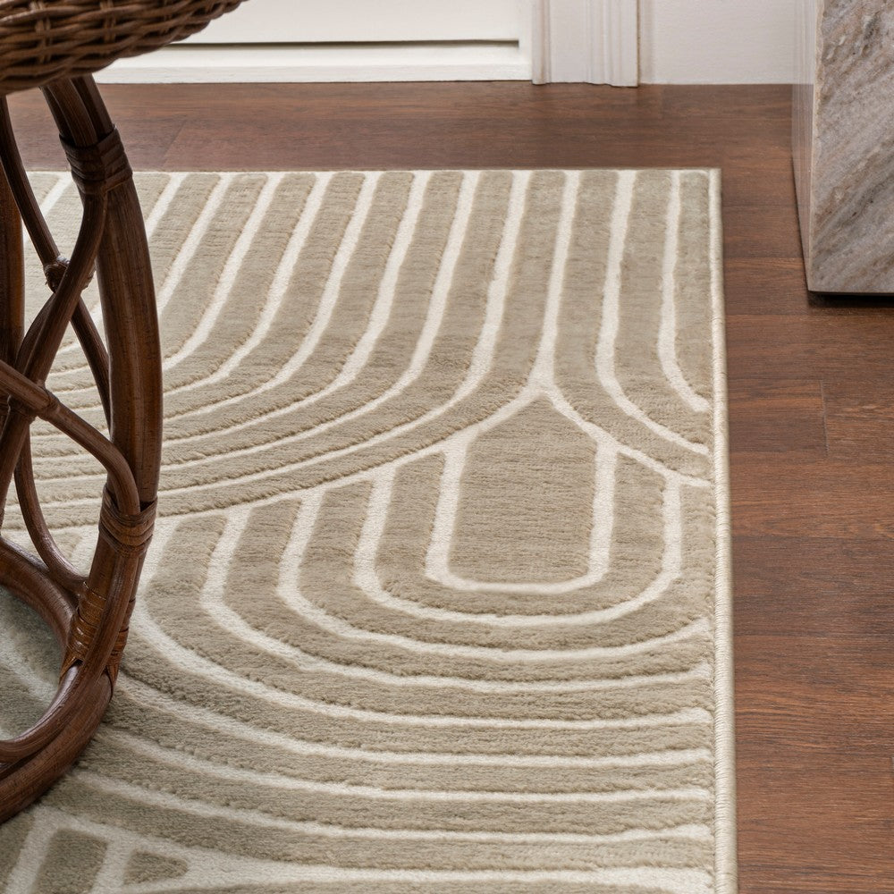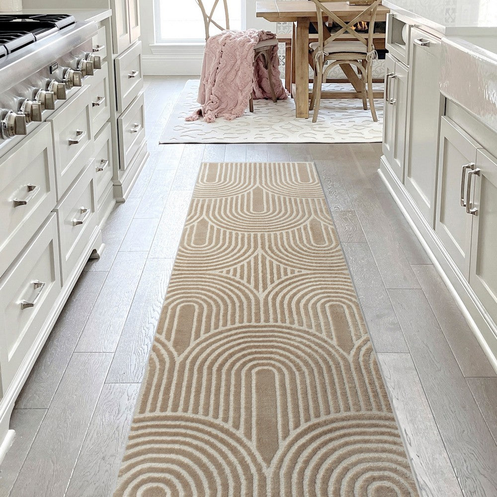 Pastel MidCentury Art Deco Striped Arches Two-Tone High-Low Area Rug
