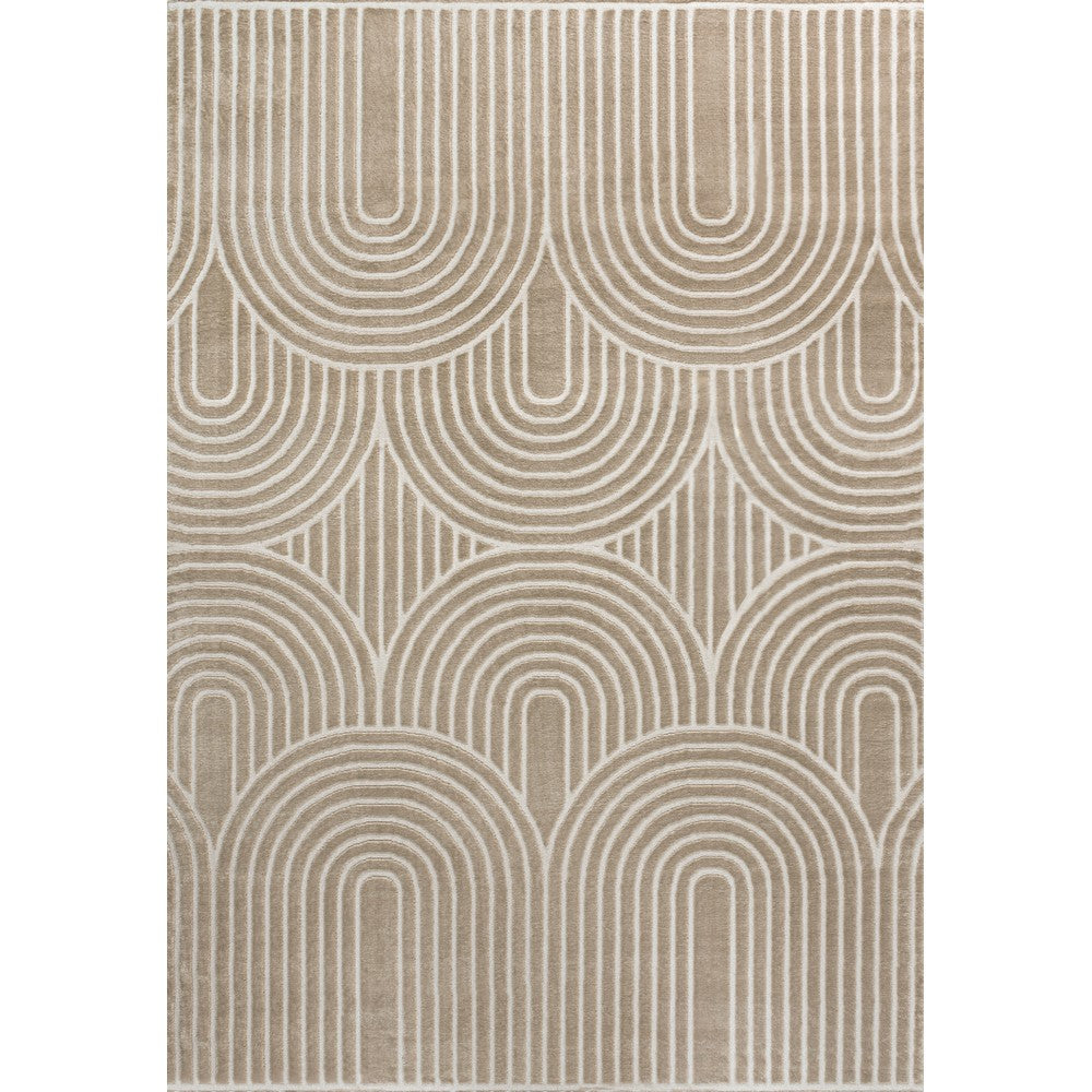 This modern, geometric rug pattern is inspired by Art Deco and midcentury designs. Woven from plush polyester, it has an all-over pattern of striped arches and a two-tone color scheme; a high-low pile accentuates the pattern. It's a bold modern statement for the bedroom, living room or dining room. Please note that variations in the rug's appearance may occur when the fibers are brushed due to natural light reflection and weaving characteristics.