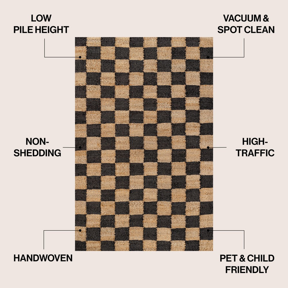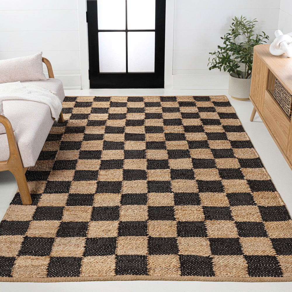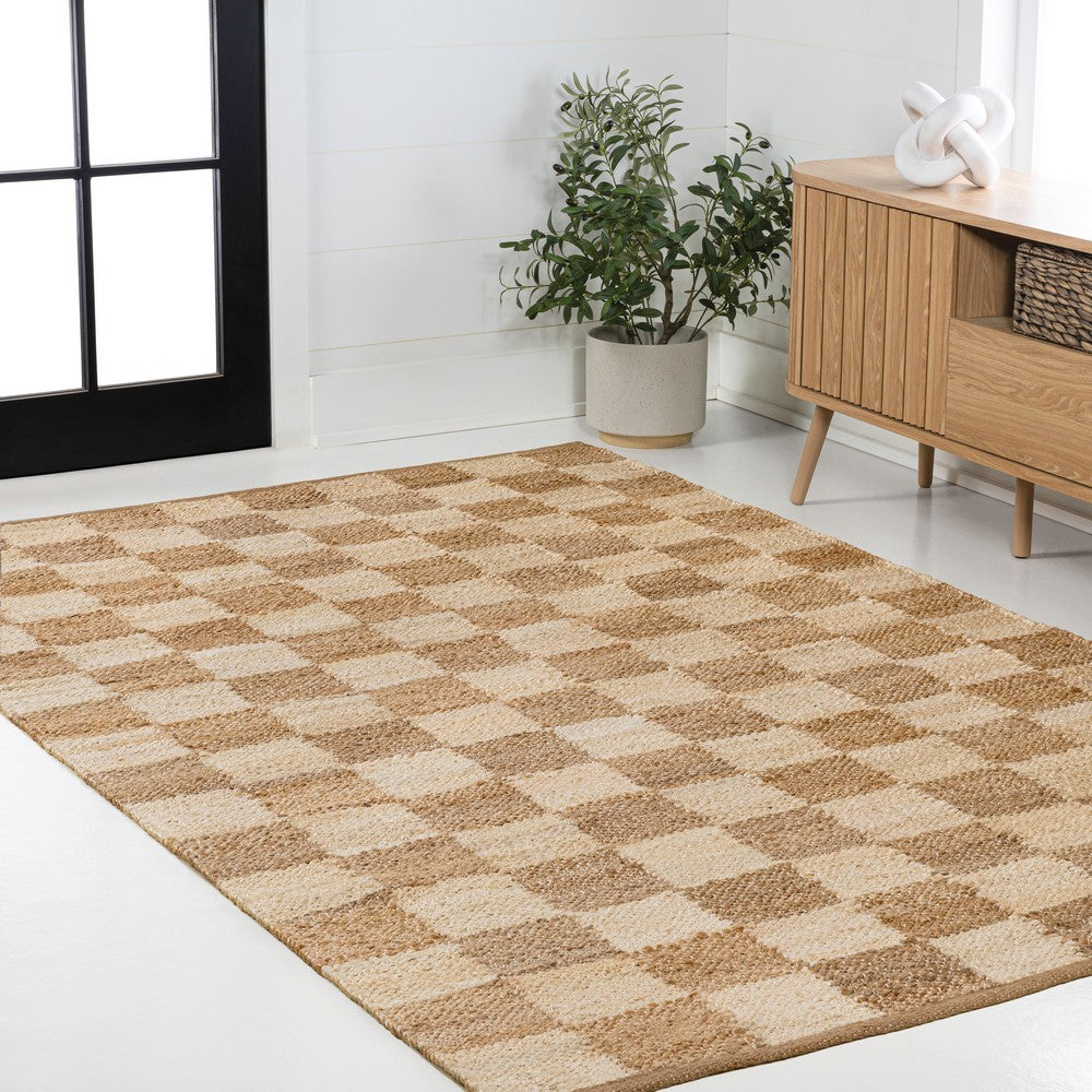 Rudra Modern Farmhouse Woven Jute Checkerboard Area Rug