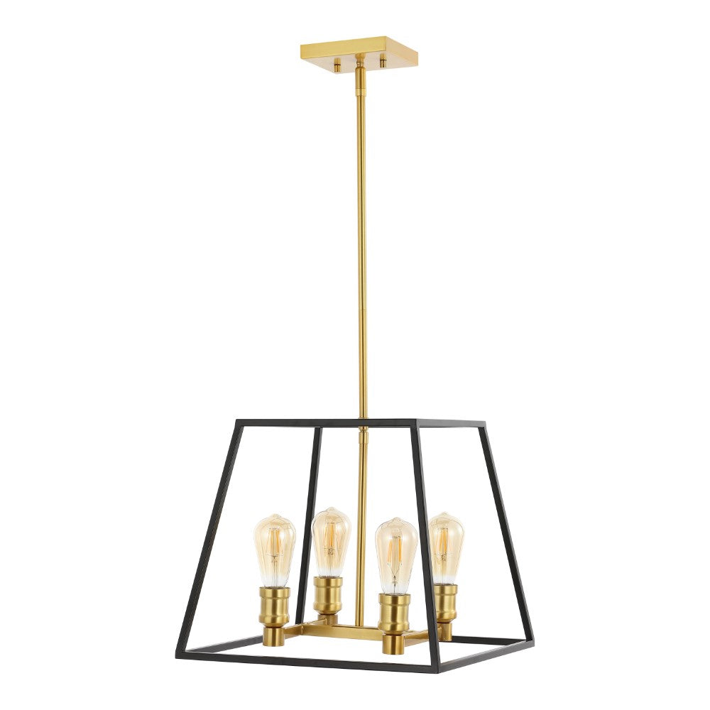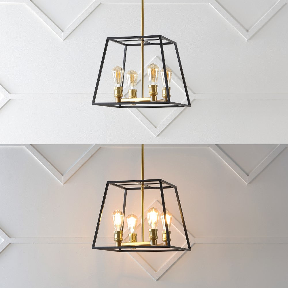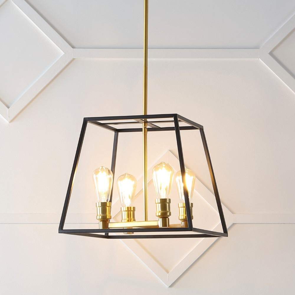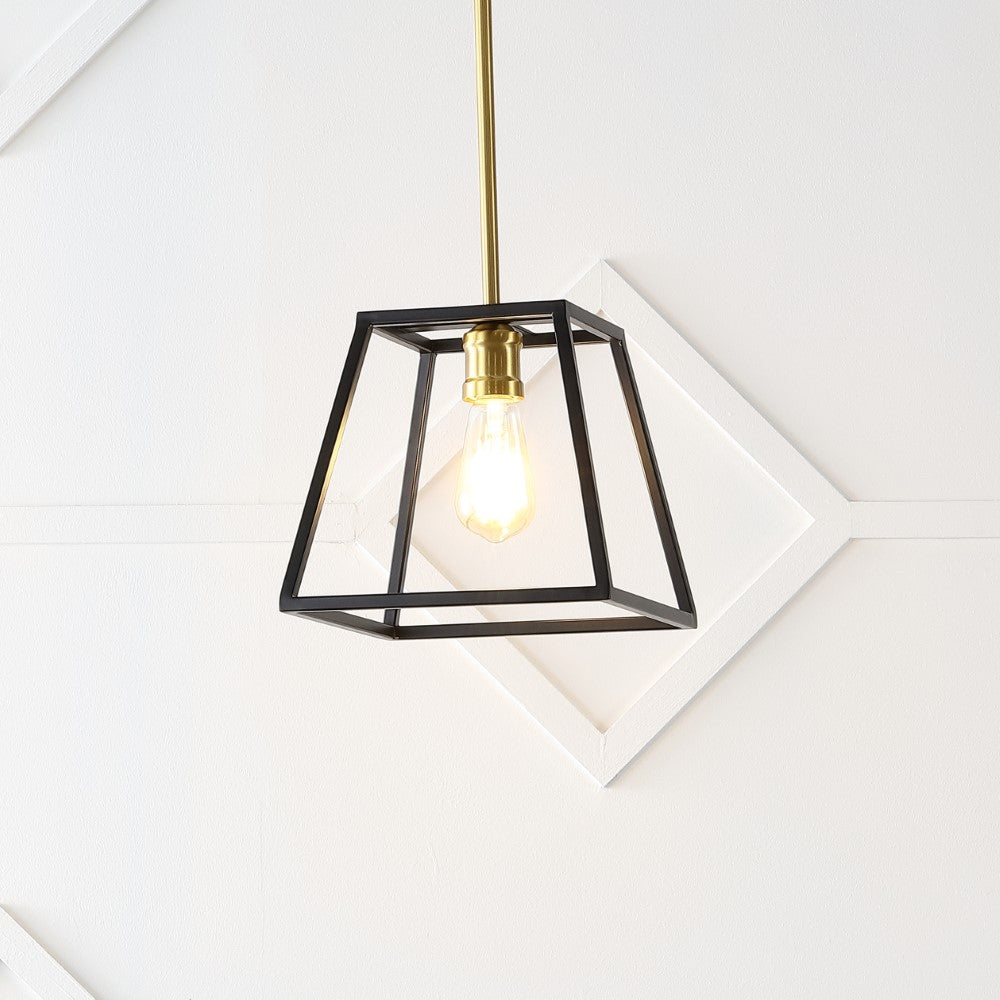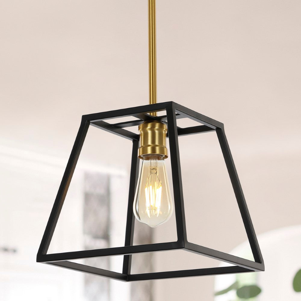The black metal frame has classic brass-gold fittings, while the open frame adds a modern touch