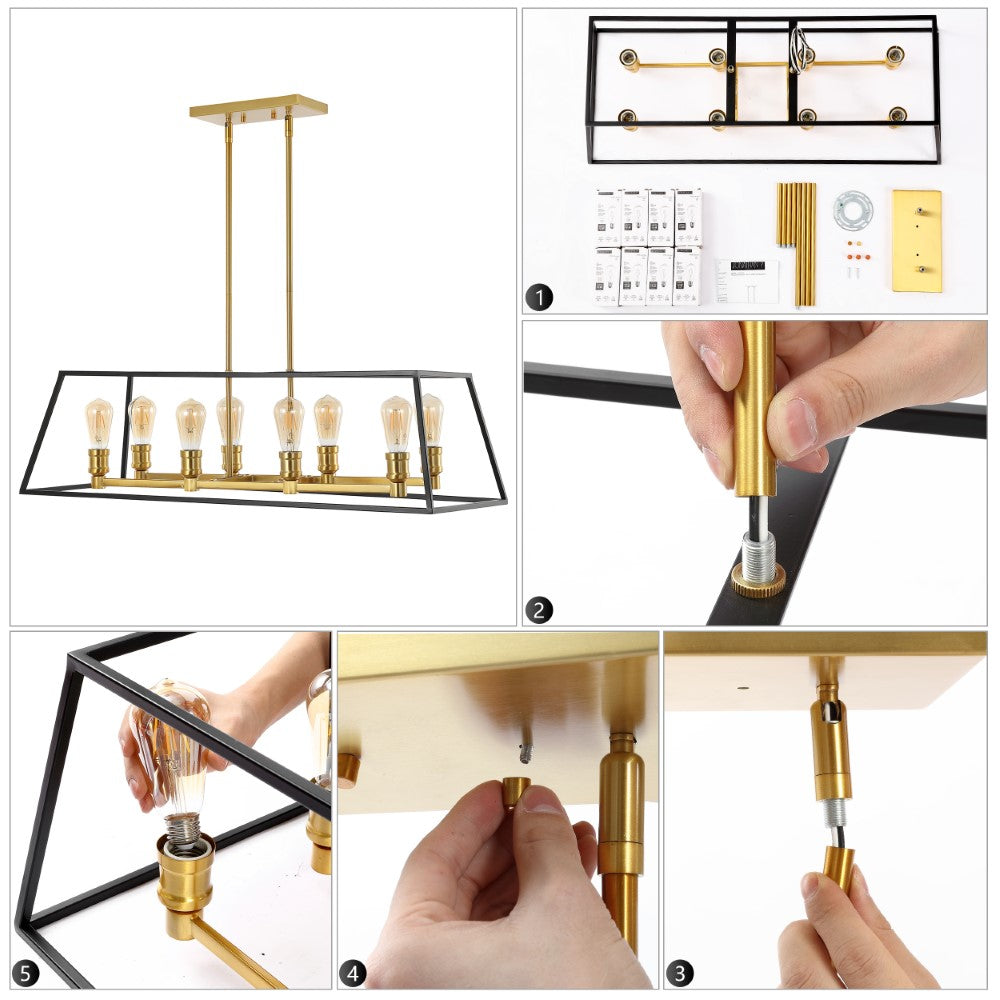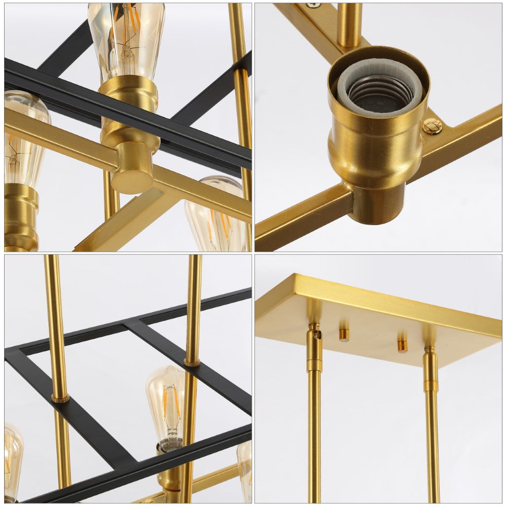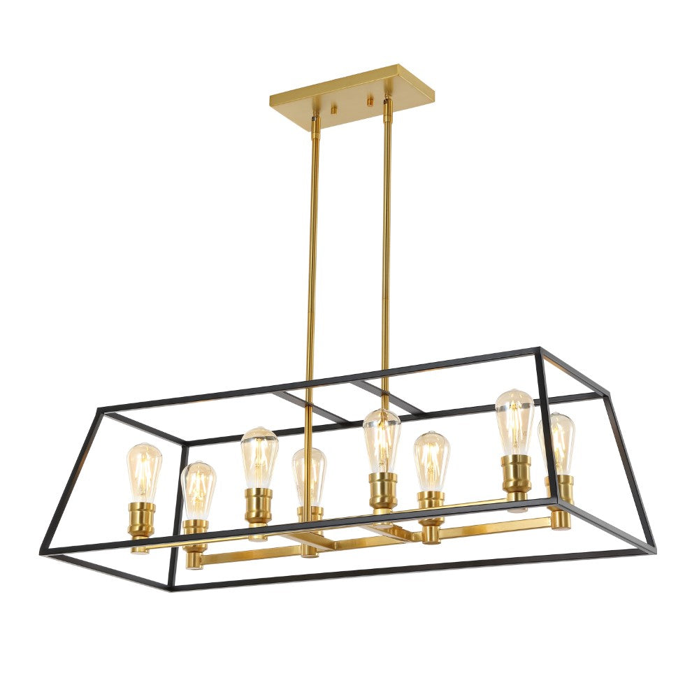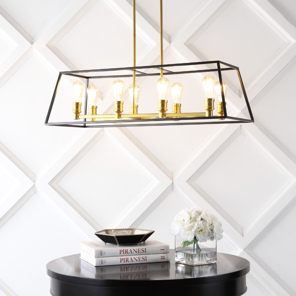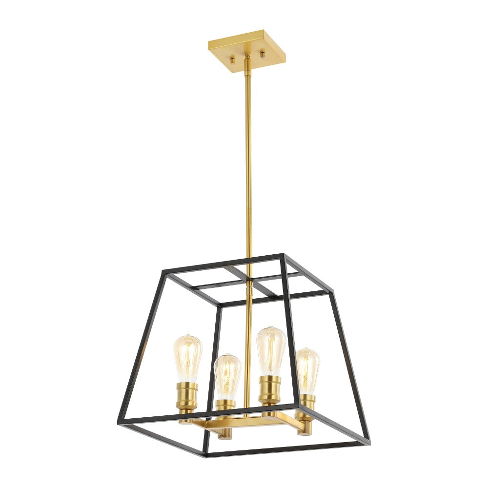 The black metal frame has classic brass-gold fittings, while the open frame adds a modern touch