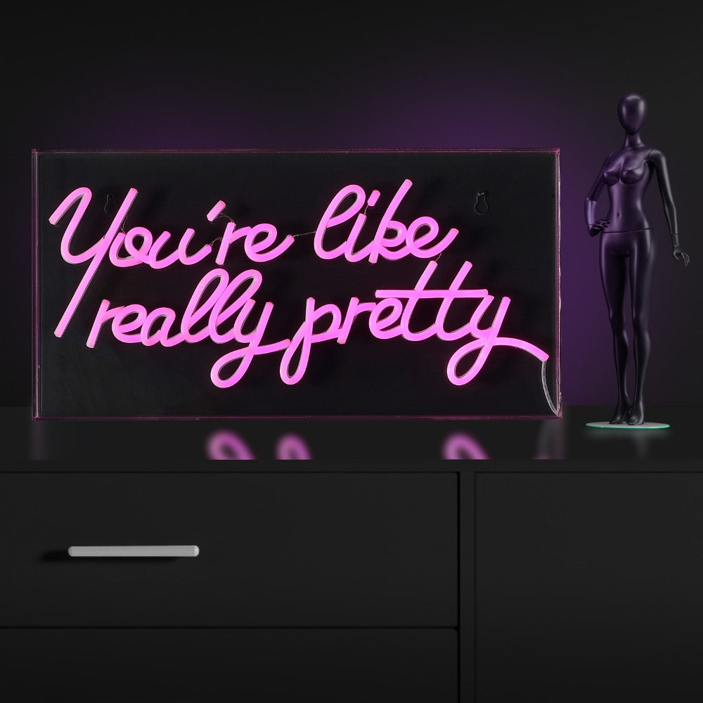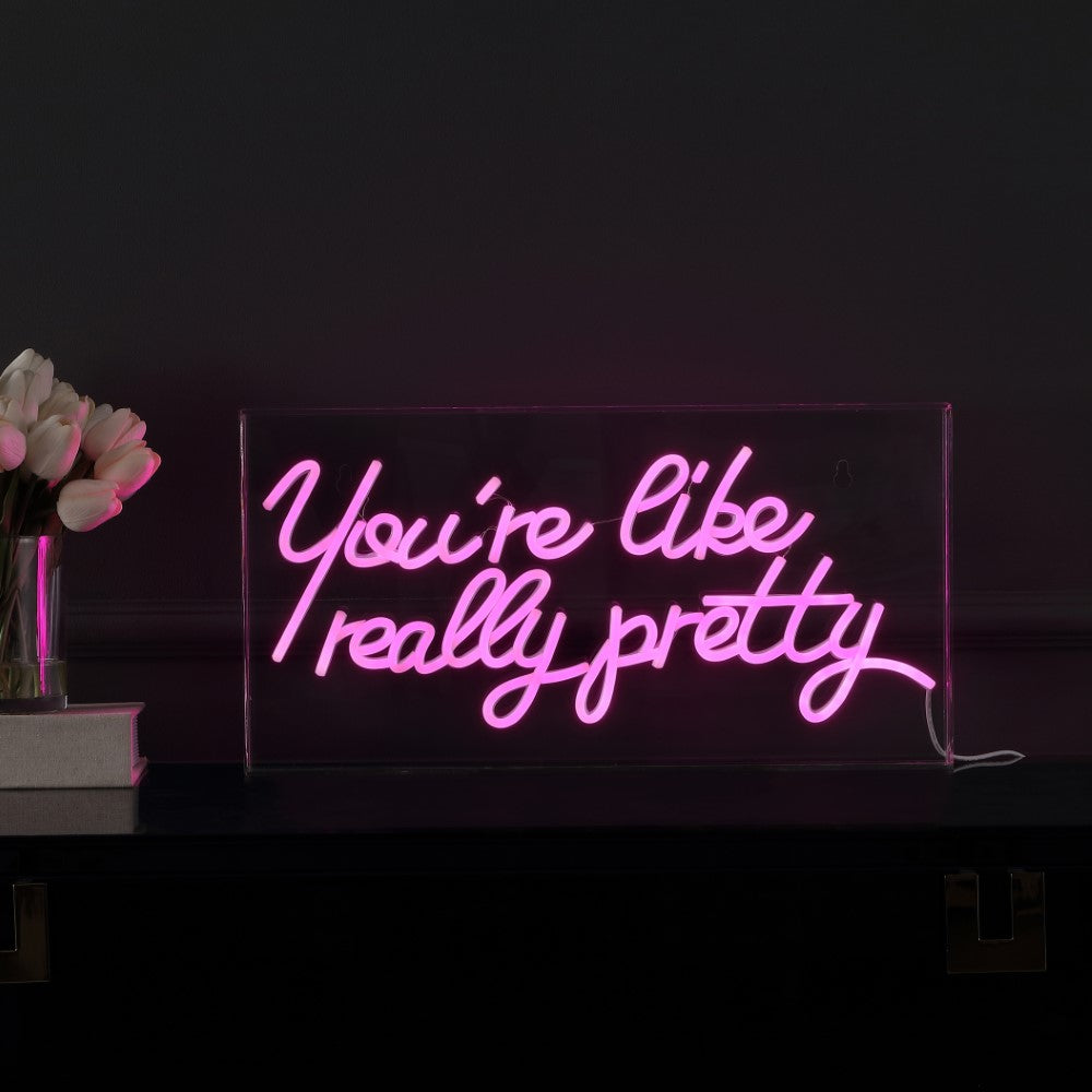 Bright neon makes a whimsical addition to your bookshelf or gallery wall. Whether it's for enhancing the club vibe or romantic ambiance in the bedroom, our You're Like Really Pretty sign is the go-to choice. Convenient, low-voltage USB power is perfect for a bedroom or dorm room.