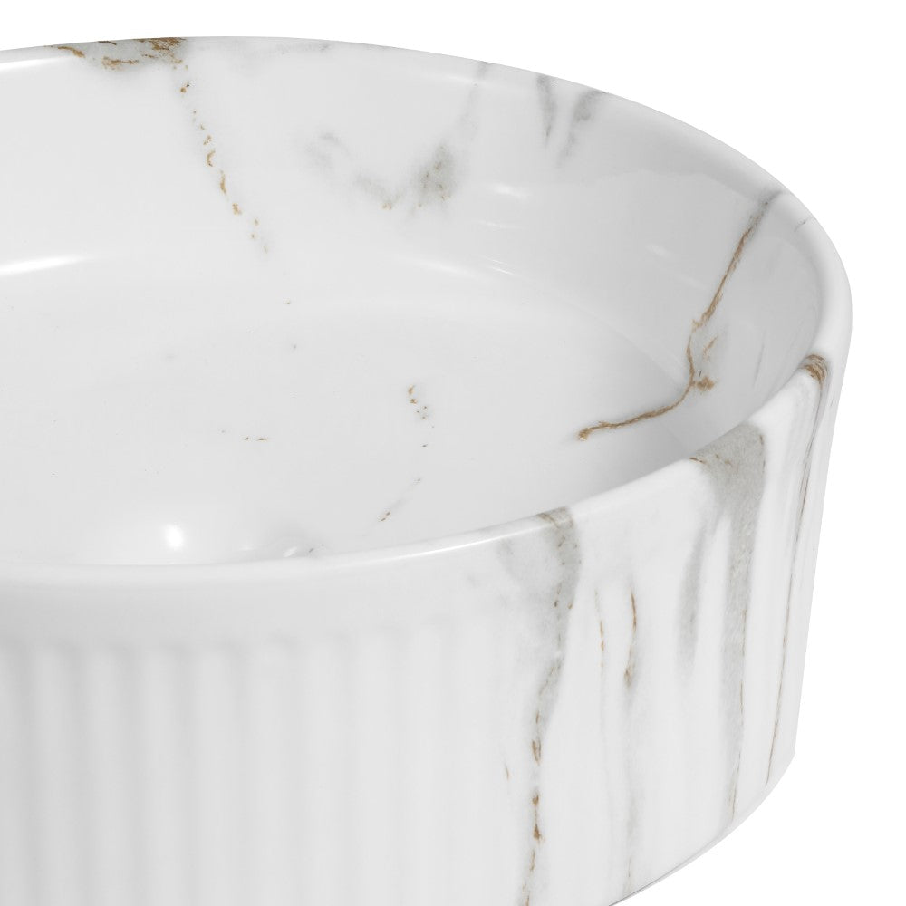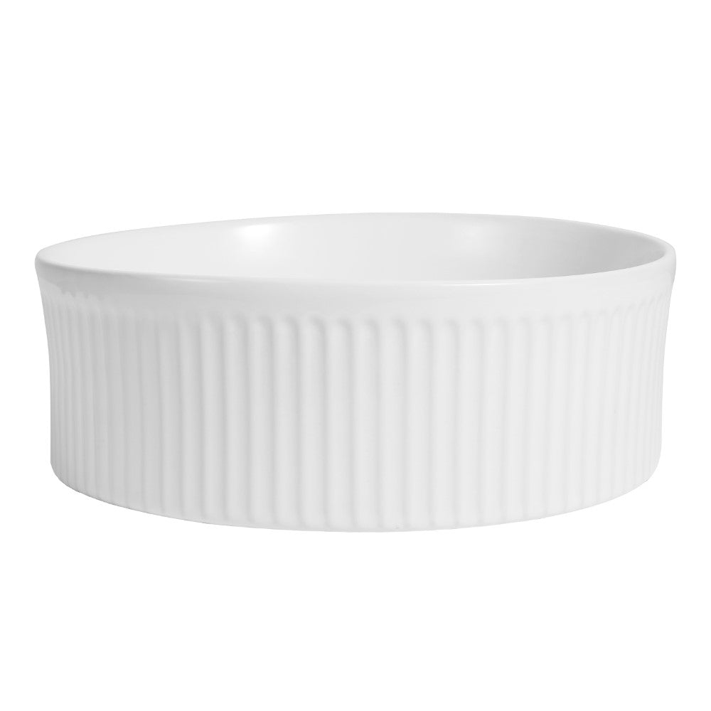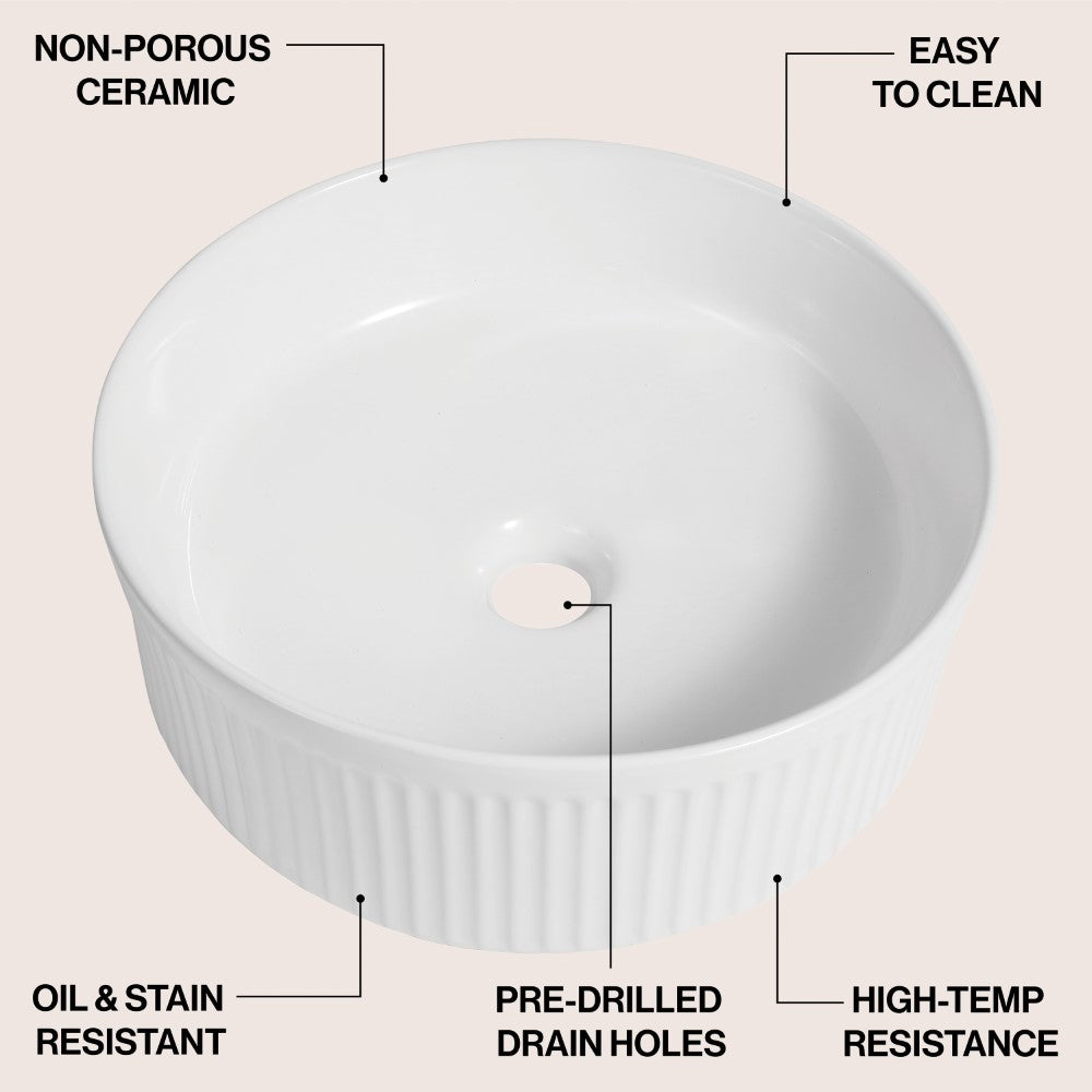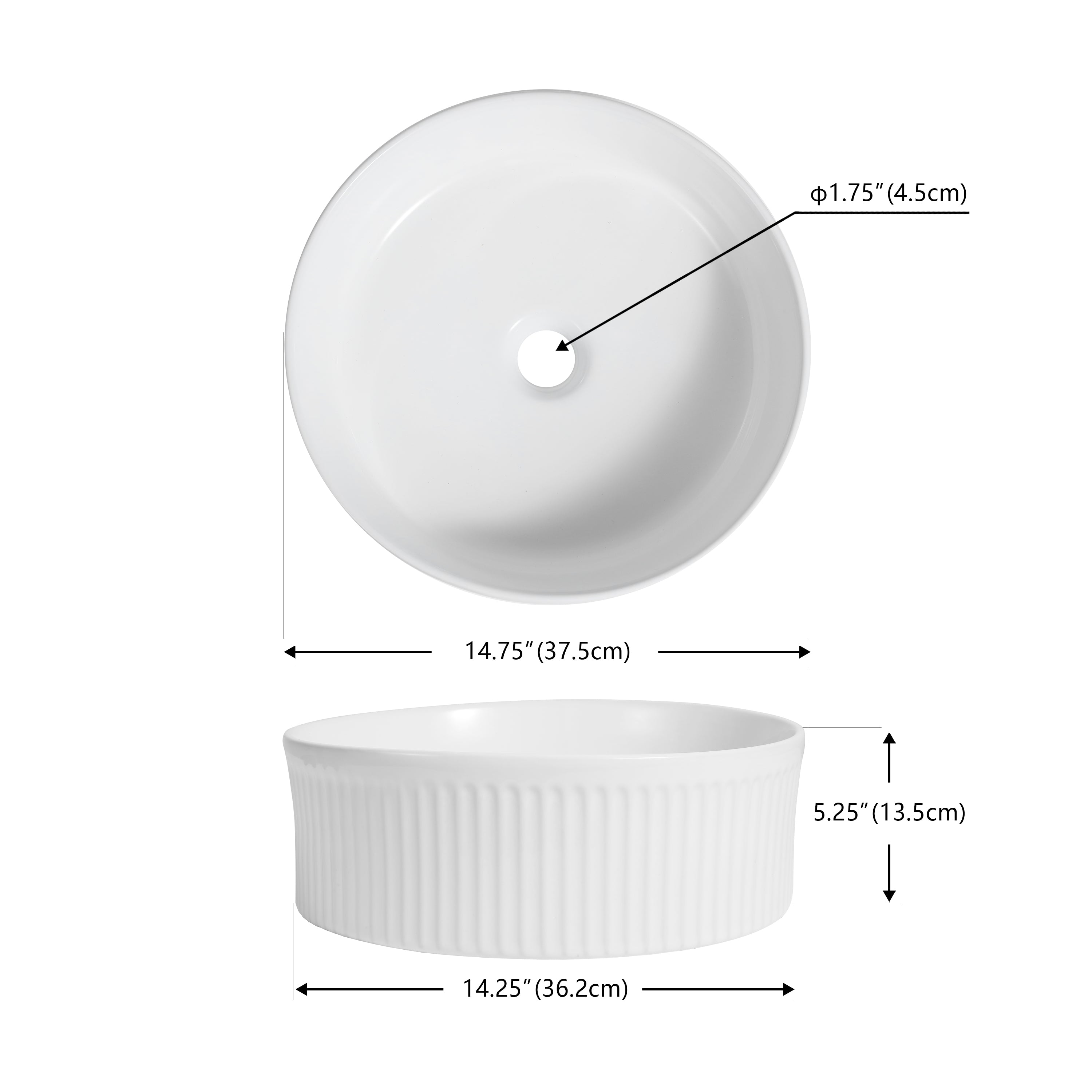 Savo 14.75 in. W x 14.75 in. D Modern Designer Round Fluted Ceramic Bathroom Vessel Sink