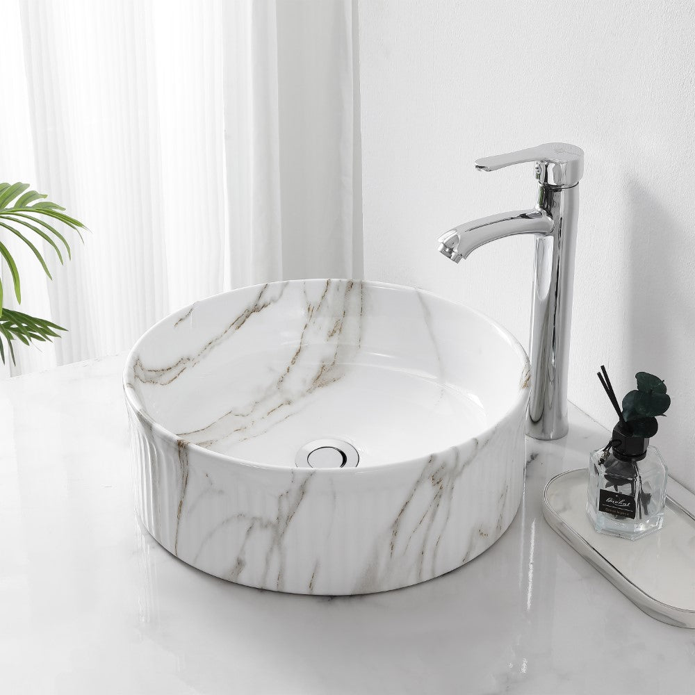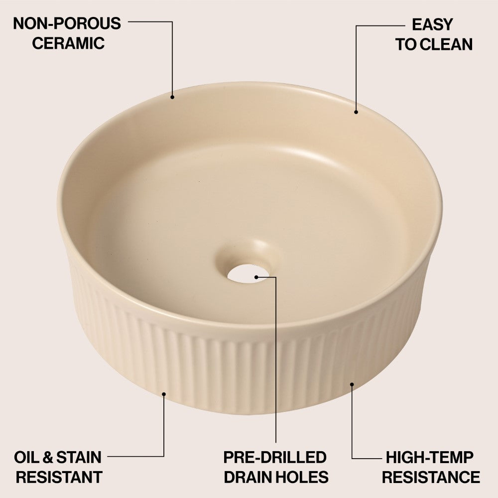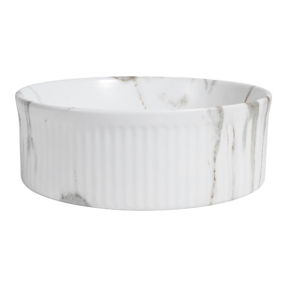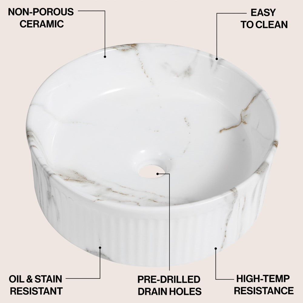 Savo 14.75 in. W x 14.75 in. D Modern Designer Round Fluted Ceramic Bathroom Vessel Sink