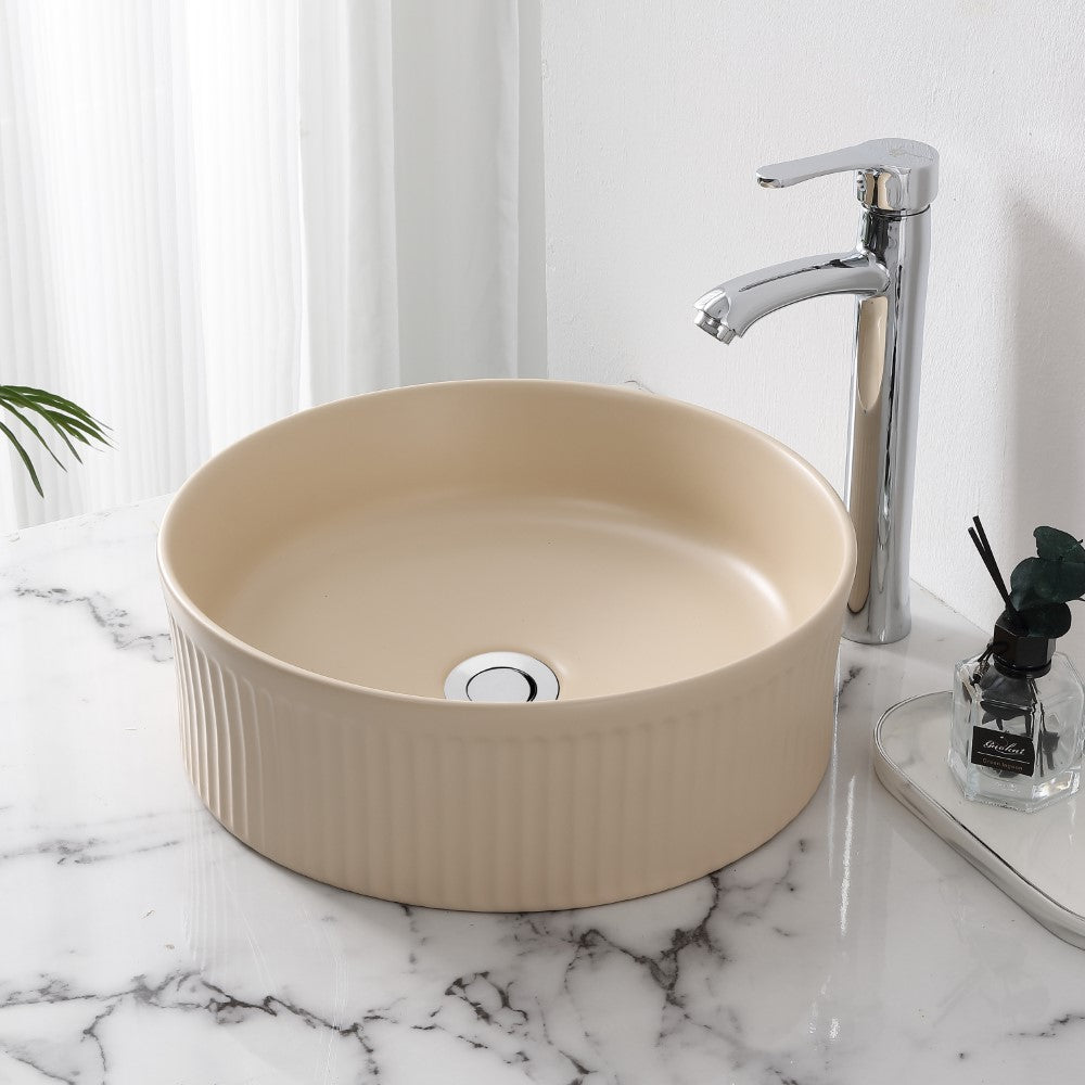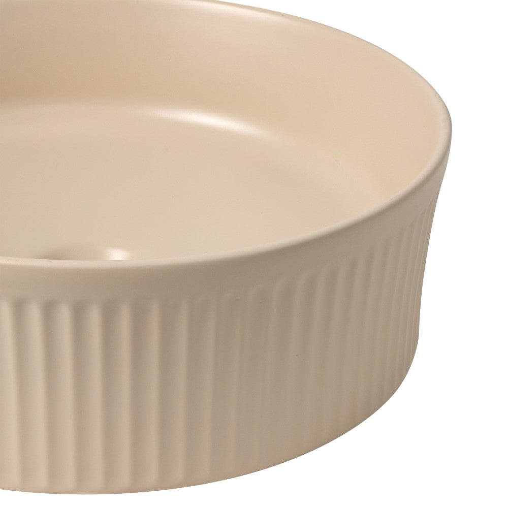 This vessel sink features a ribbed exterior design that adds texture and visual interest to your bathroom. Crafted from durable materials with a smooth interior, it offers both everyday practicality and timeless style. Perfect for powder rooms or full baths, this sink blends seamlessly with a variety of countertops and faucets for a polished finish.