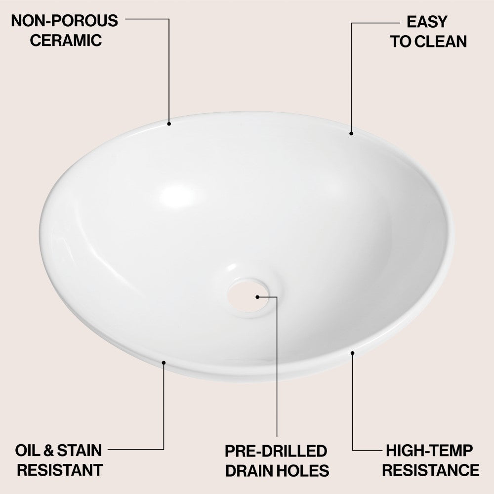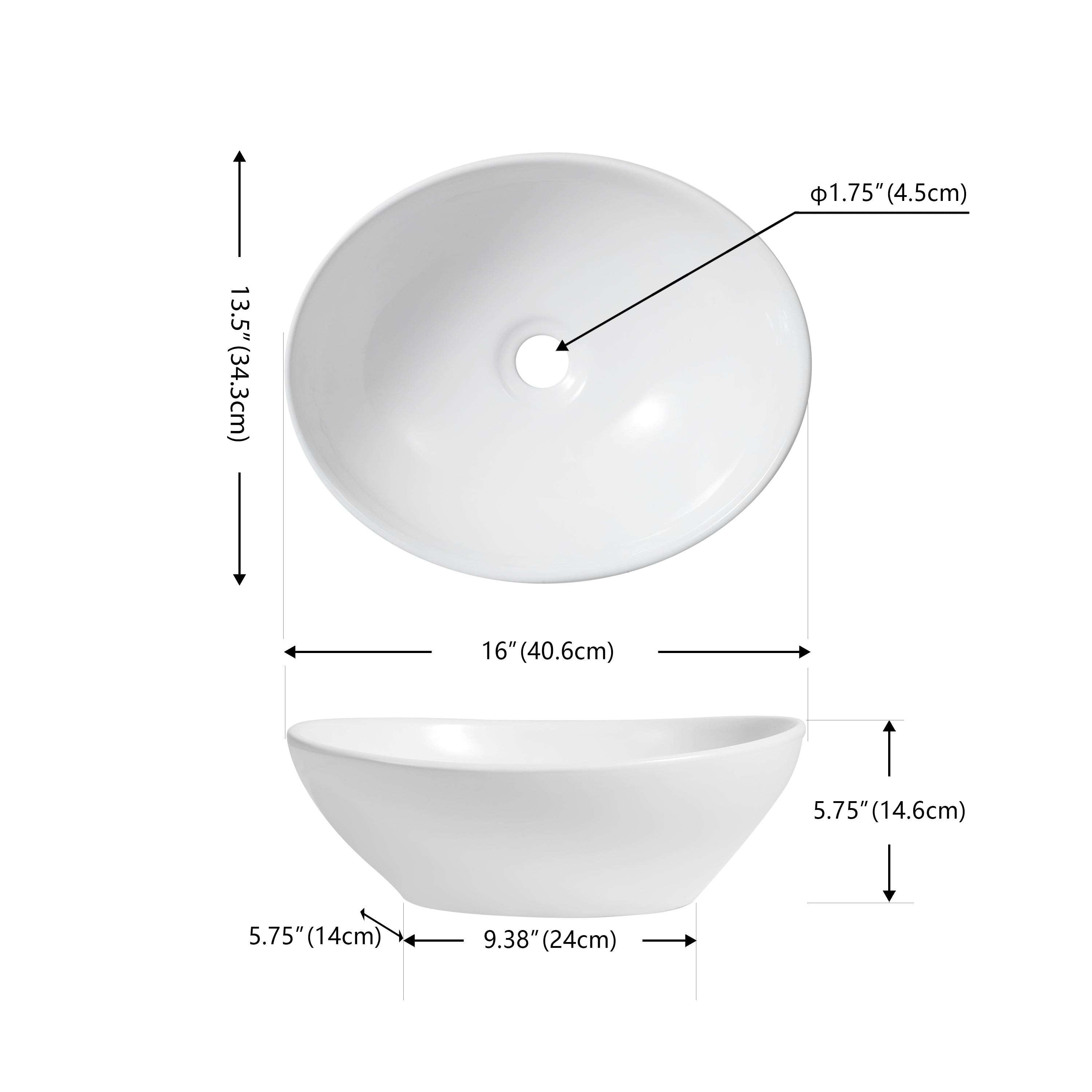 Zenu 16 in. W x 13.5 in. D Modern Minimalist Oval Ceramic Bathroom Vessel Sink