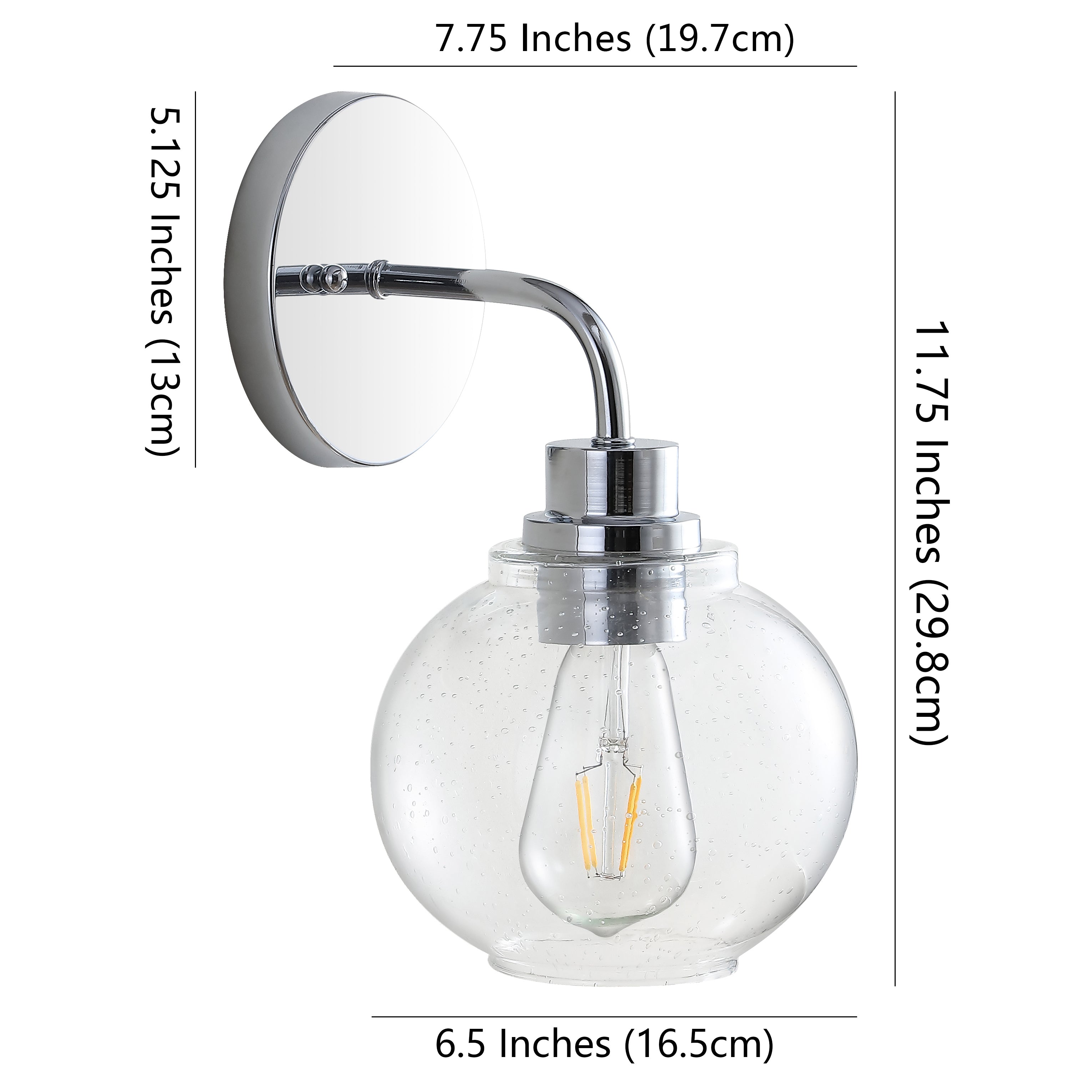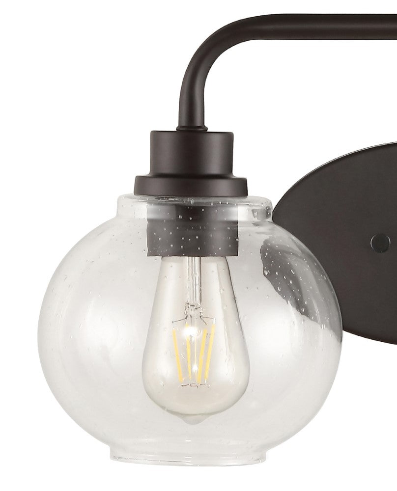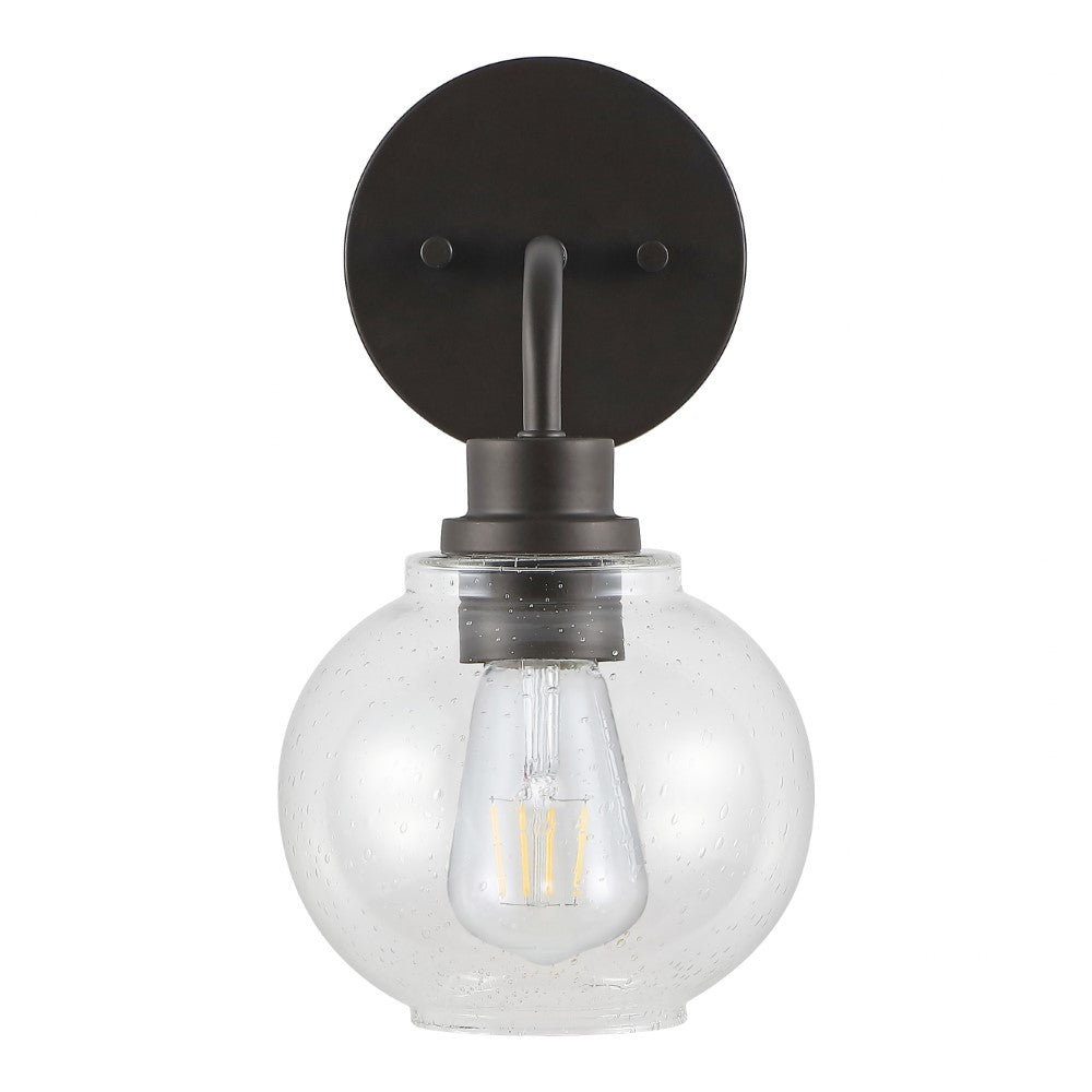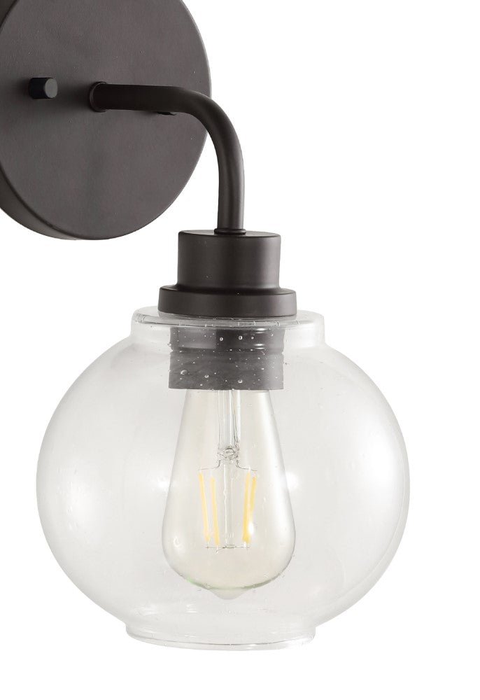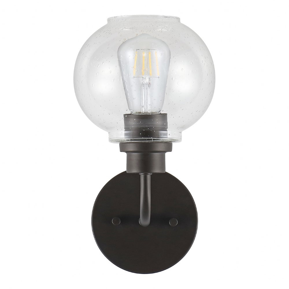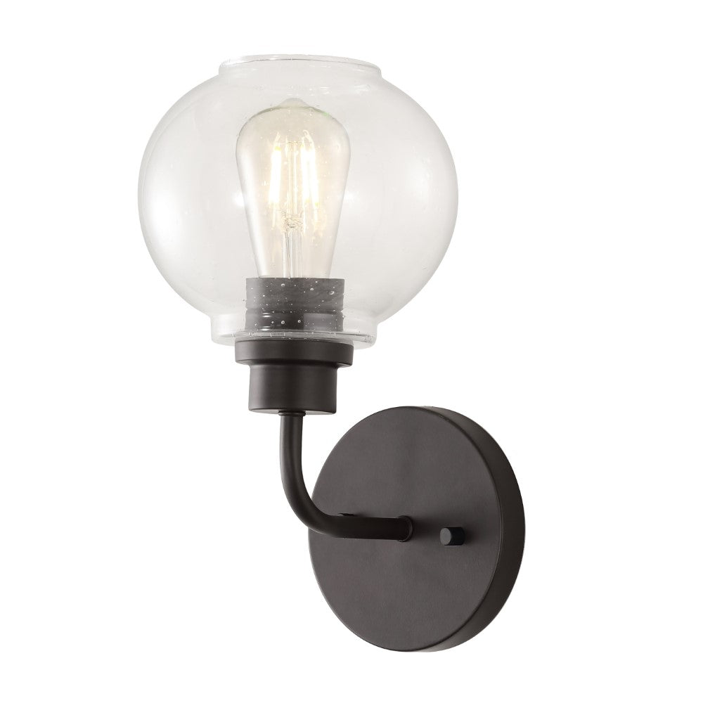 Bring on the vintage Parisian flair with our bistro-inspired wall light. A single LED bulb in a clear glass globe provides plenty of light. Clean lines and a oil rubbed bronze finish add modern French style to your bath vanity, kitchen, hallway or entry.