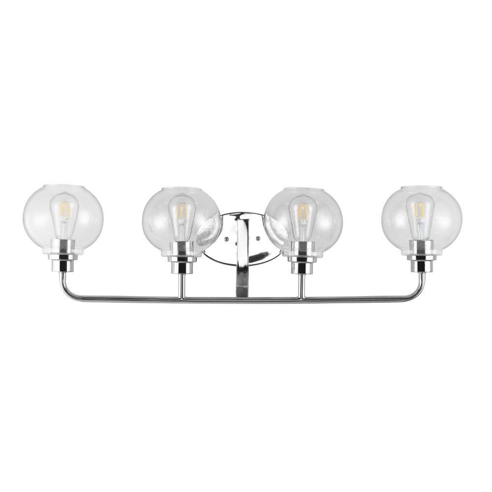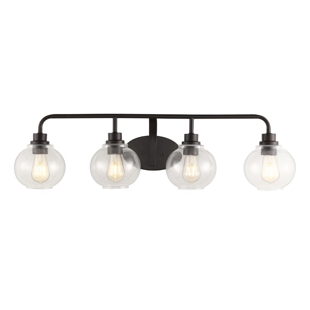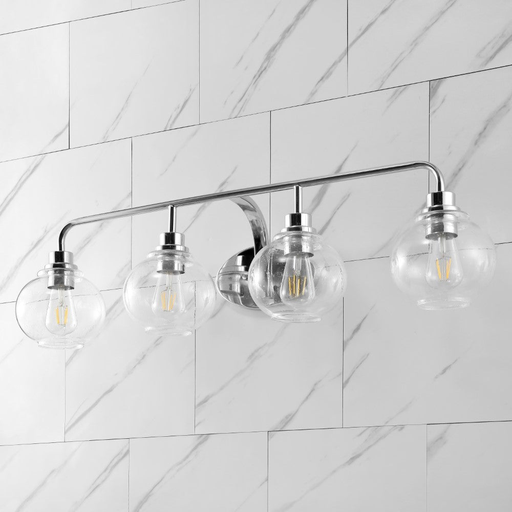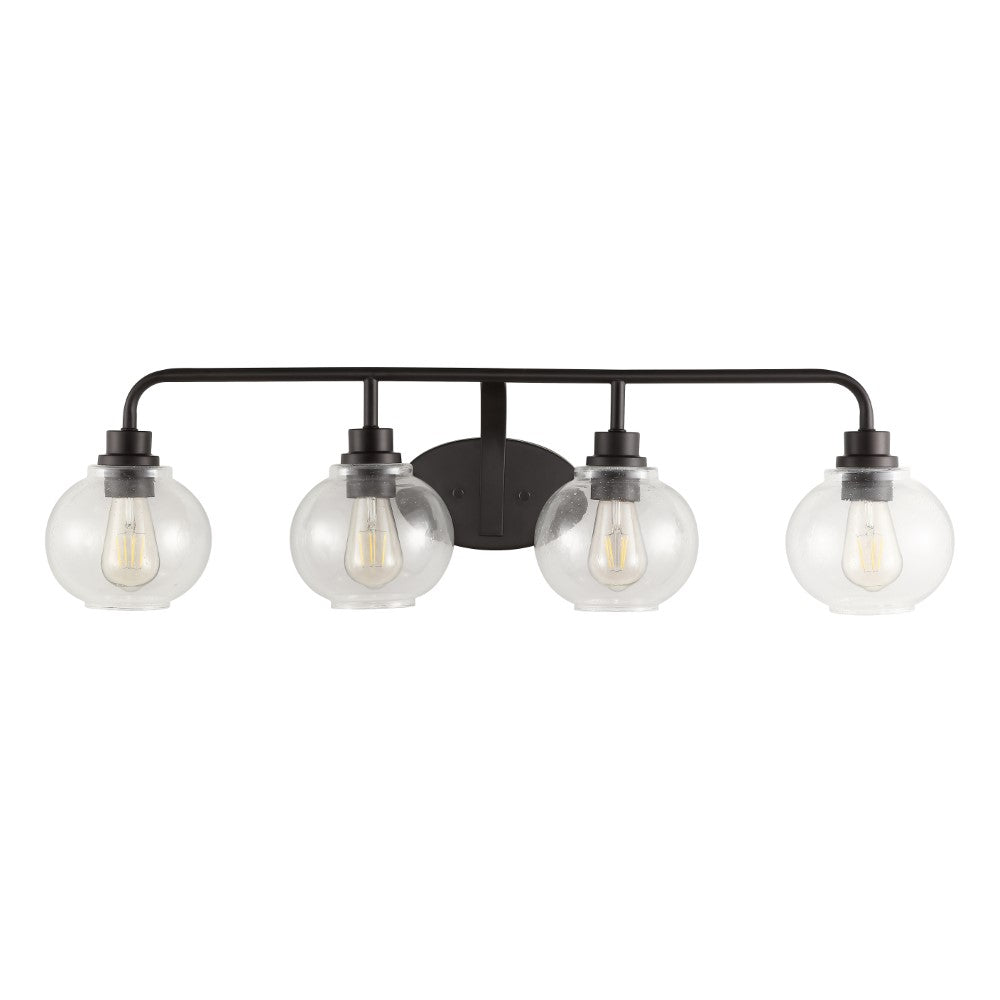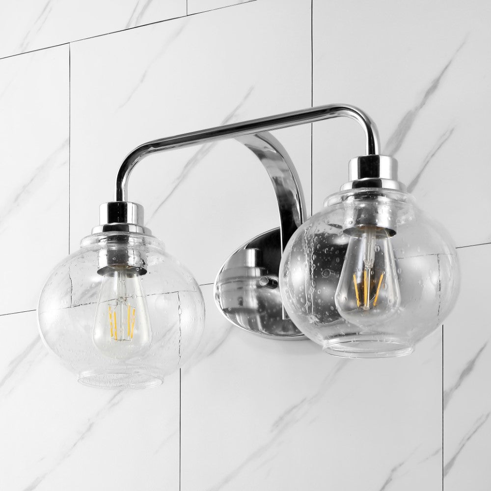 Bring on the vintage Parisian flair with our bistro-inspired wall light. A single LED bulb in a clear glass globe provides plenty of light. Clean lines and a oil rubbed bronze finish add modern French style to your bath vanity, kitchen, hallway or entry.