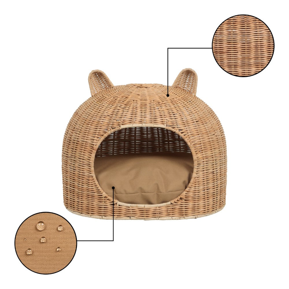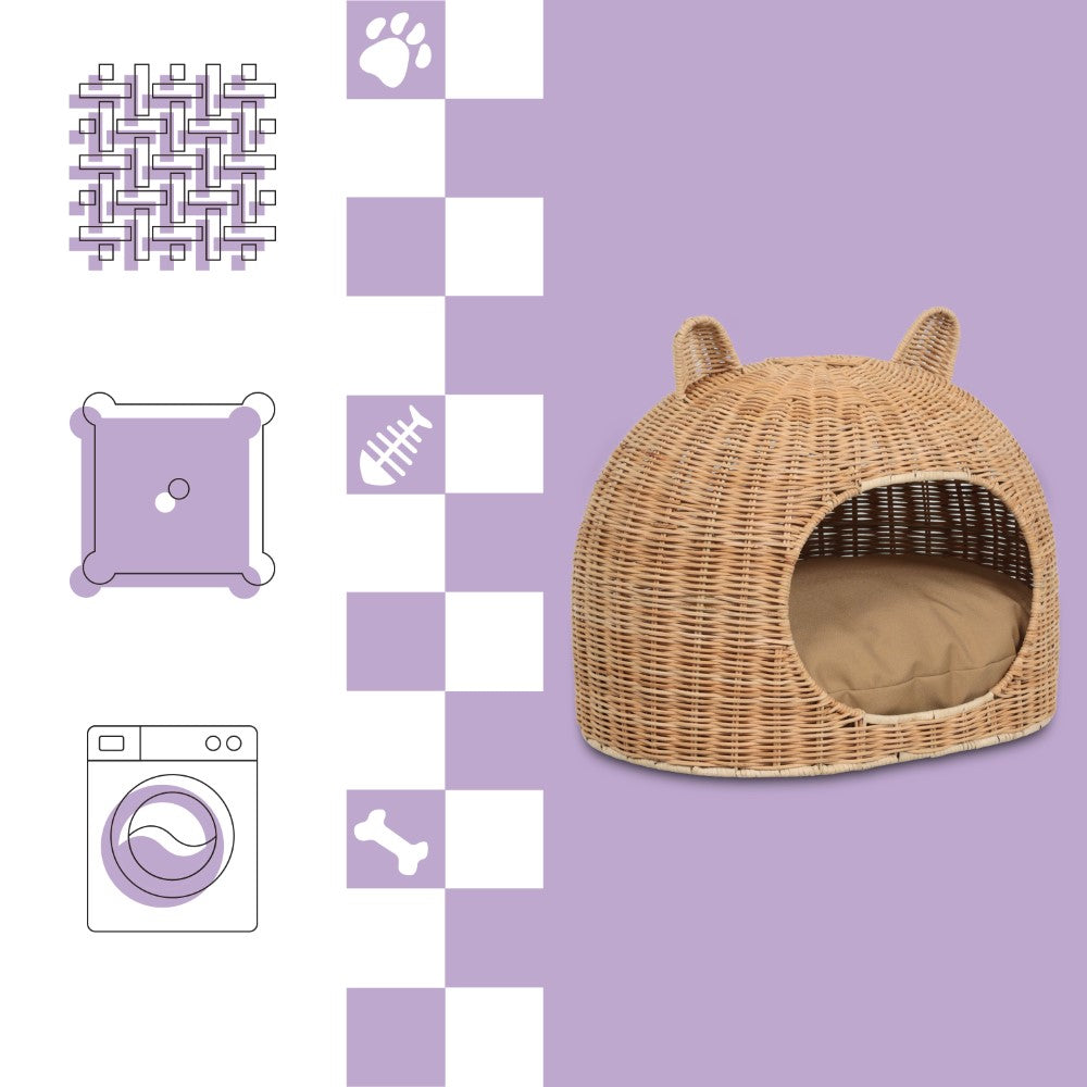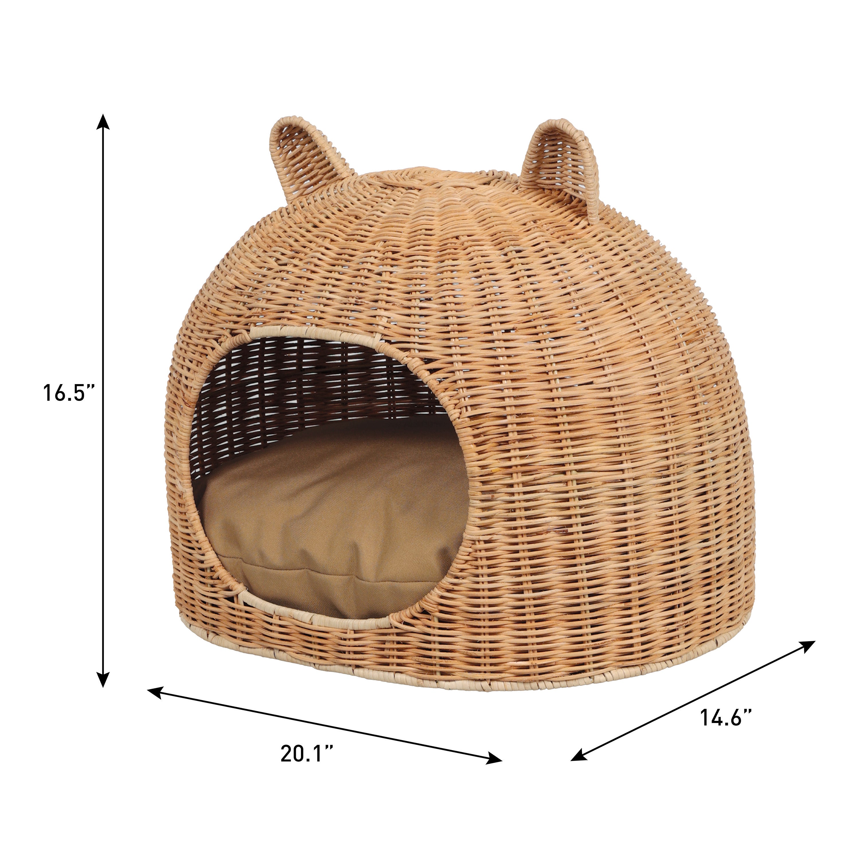 Make a pet feel at home with this novelty cat ear shaped wicker bed. Designed with a cozy dome shape and cat ears, this bed will fit in well in any bohemian or cottage styled home. At 20 inches wide, this bed can fit any adult pet.
