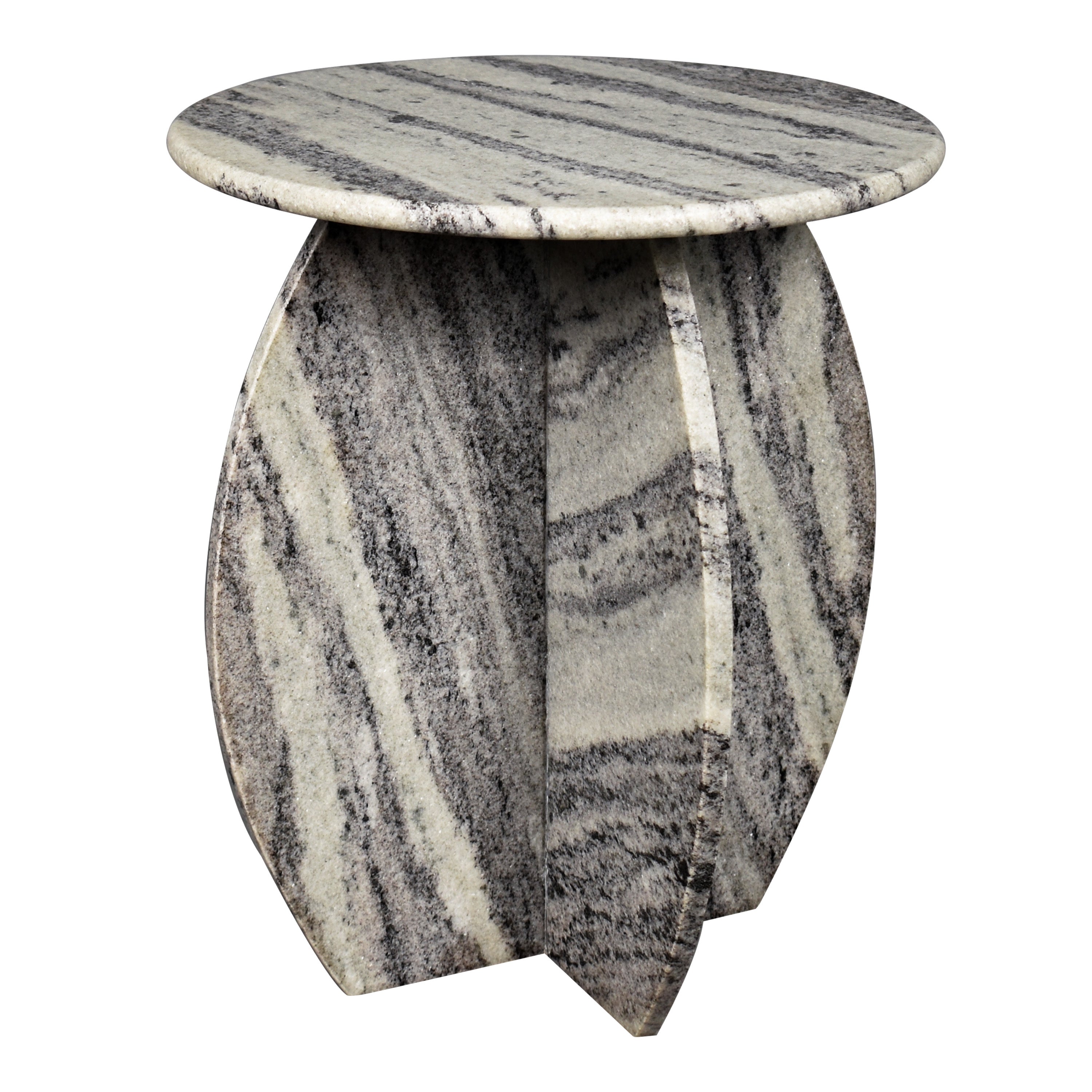 Classic and timeless, this round marble accent table is a chic minimalist design. The tabletop and x-shaped base are made entirely from natural stone. Set one beside a bedroom chair, or use a pair in front of a contemporary living room sofa.