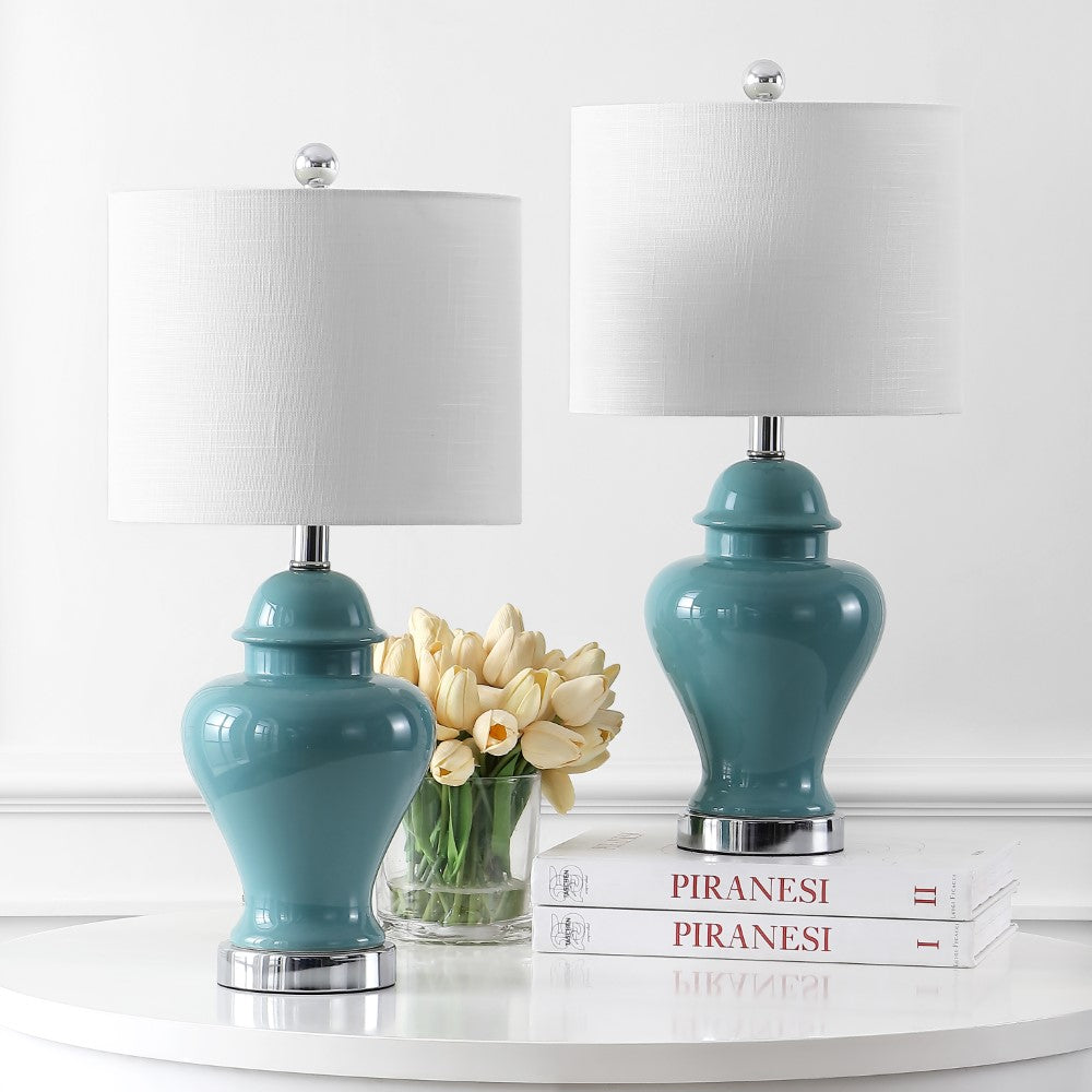 - Solid blue-green ginger jar lamps are design classics, perfect for traditional and modern homes