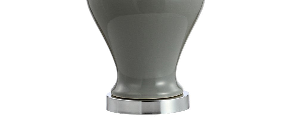 Our modern take on Chinoiserie features a soft, deep jade green glaze on a porcelain base. This pair of lamps is perfect for a bedroom, living room, or entry console. The traditional ginger jar shape channels Hollywood Regency style, while chrome fittings suit modern interiors. The silk-wrapped cord is an upscale touch. Includes an energy-saving dimmable LED bulb.