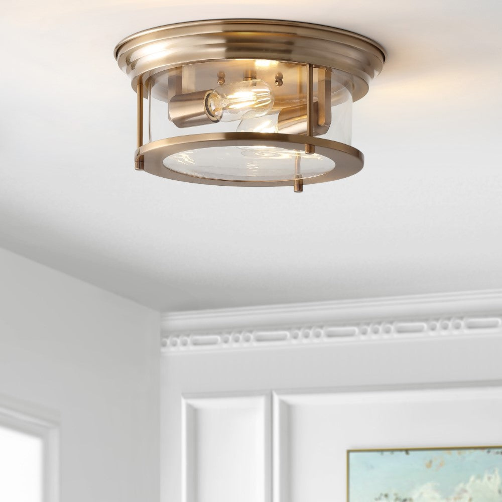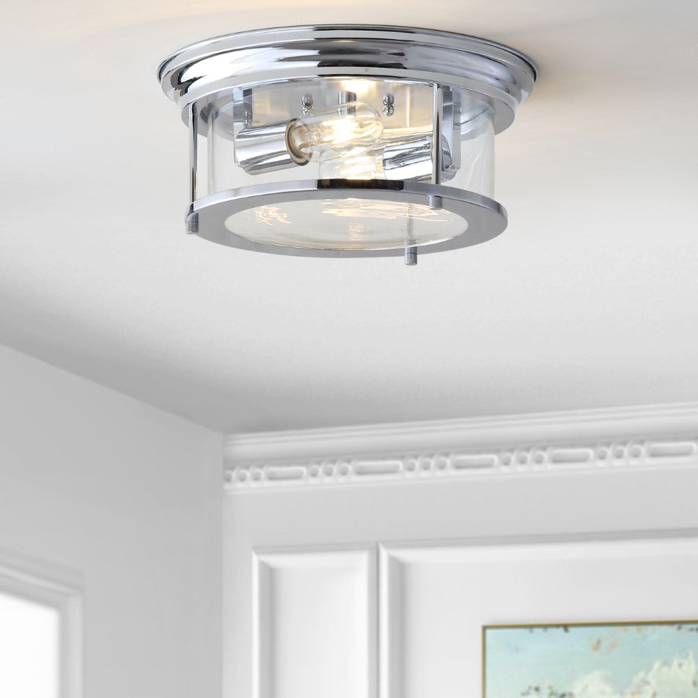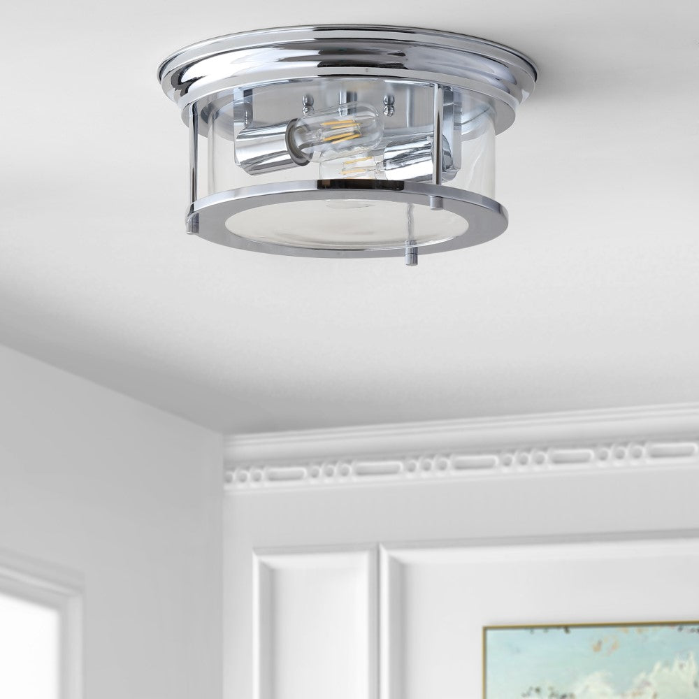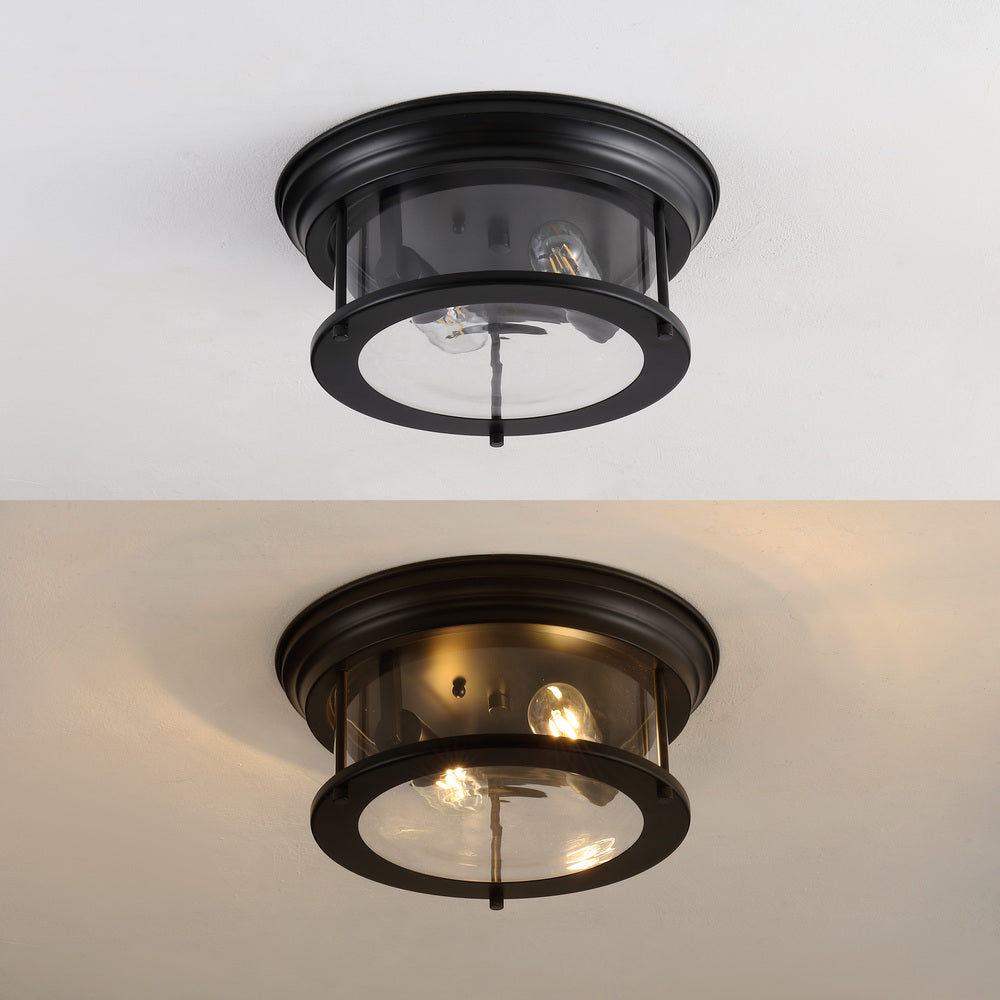 - A classic portal flush mount with glass walls emits direct light horizontally and diffused light below