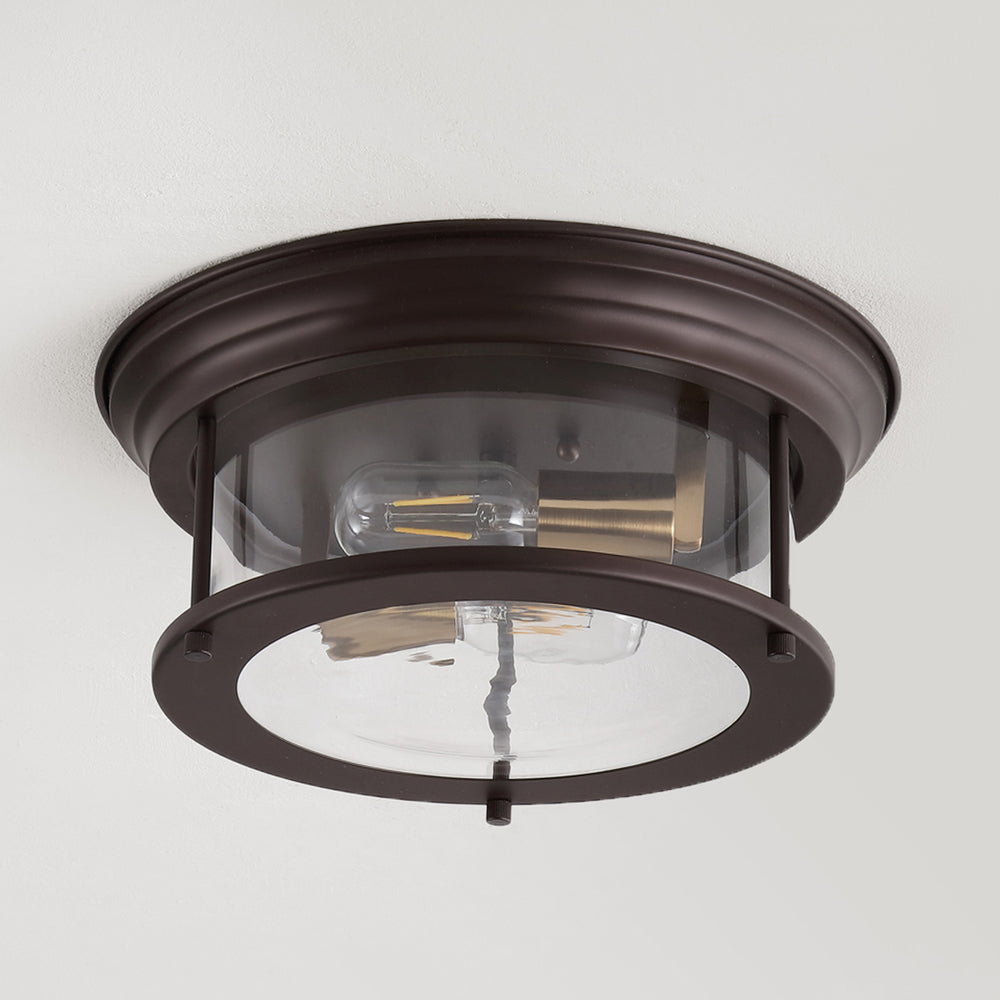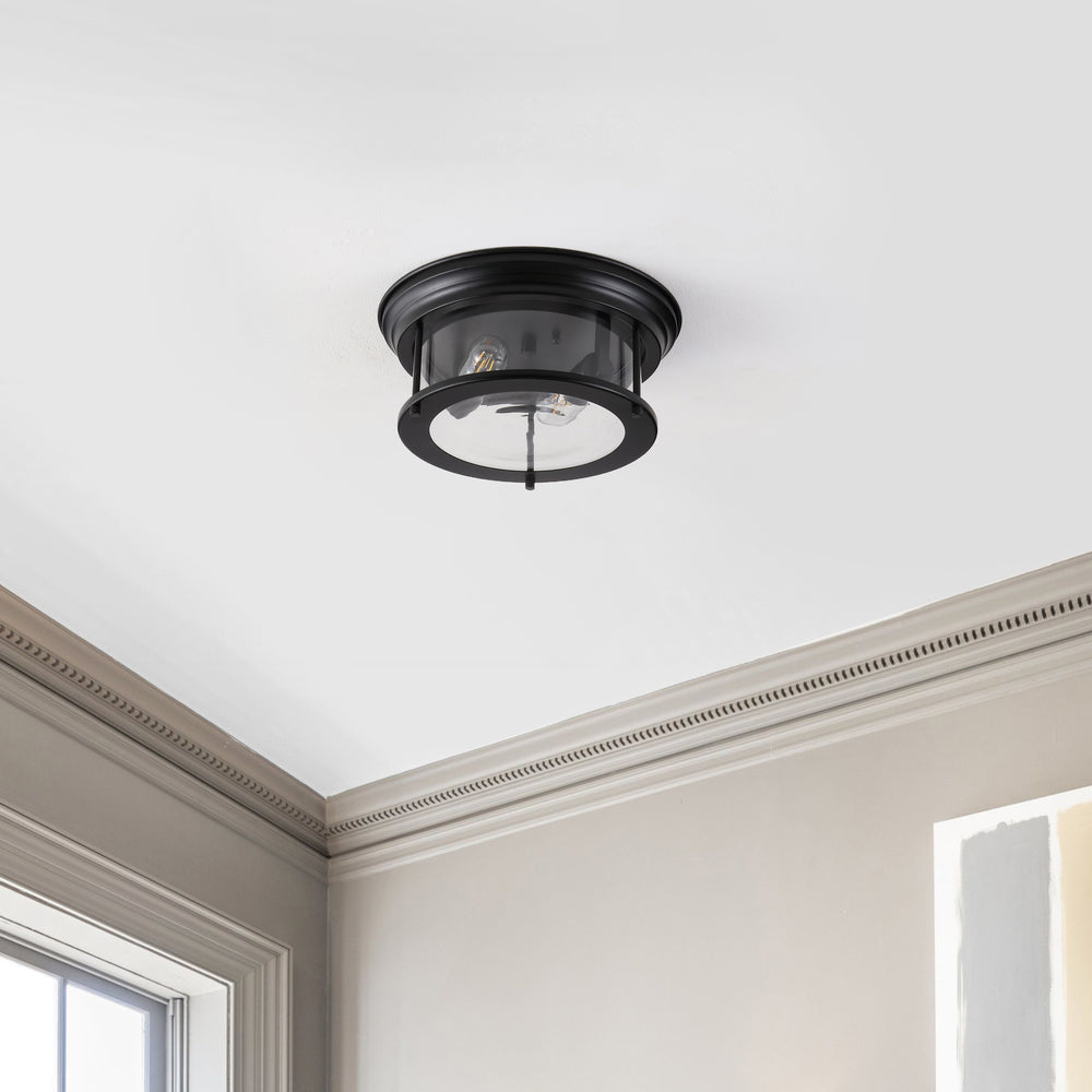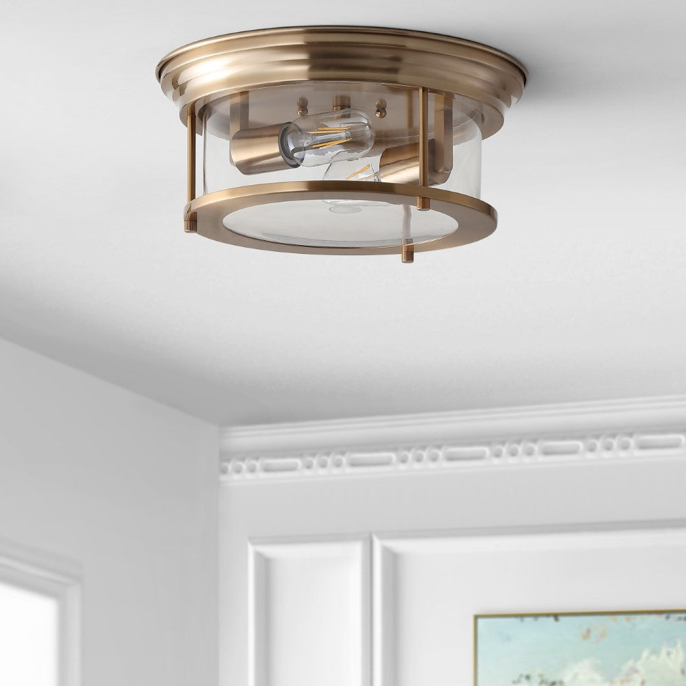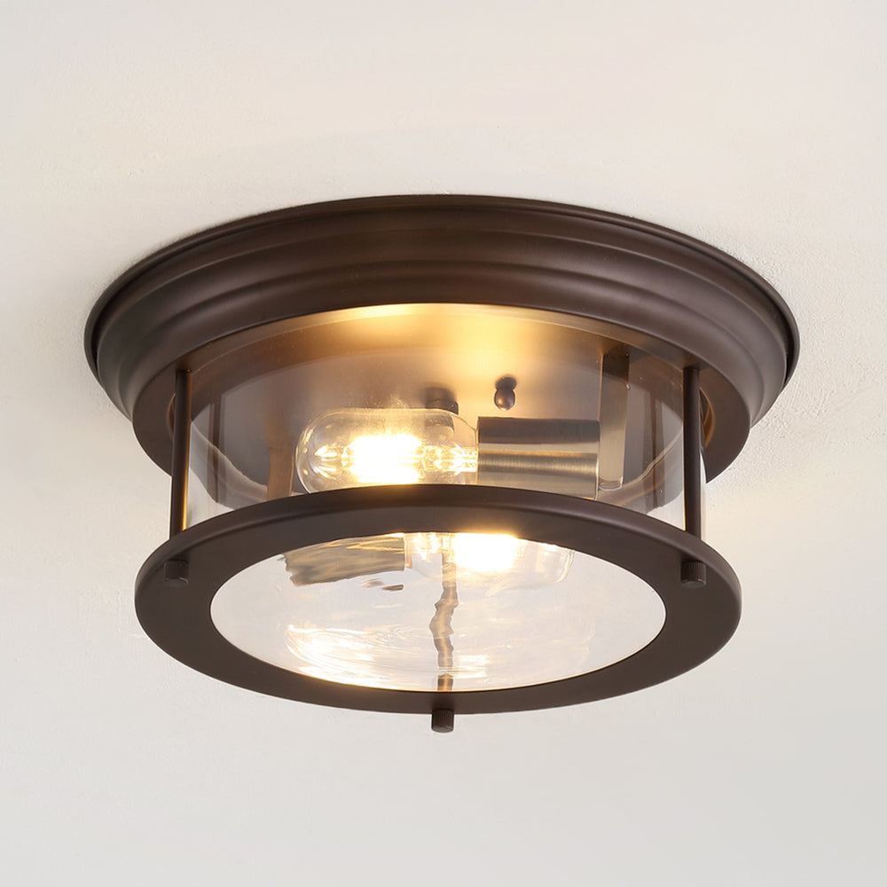 - A classic portal flush mount with glass walls emits direct light horizontally and diffused light below