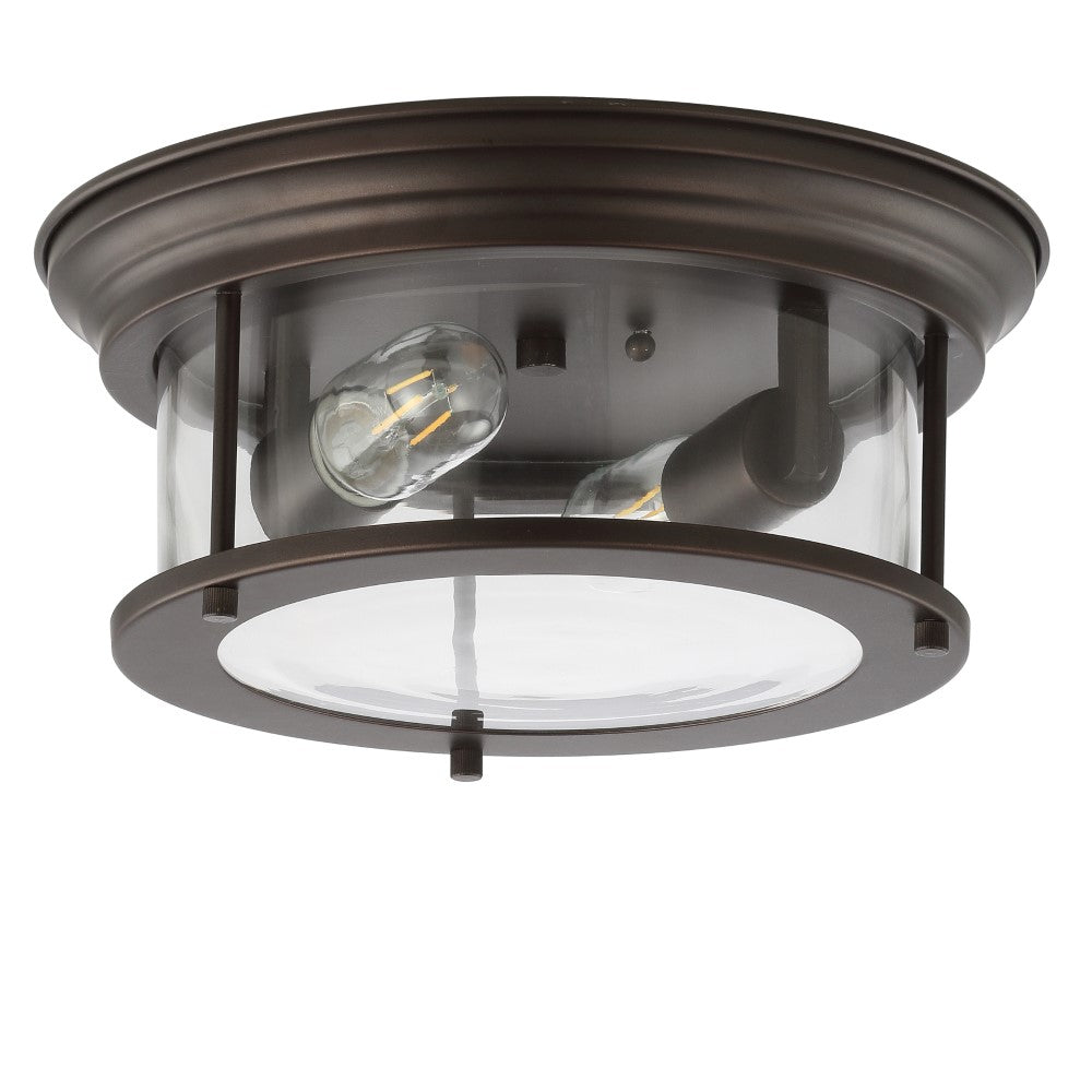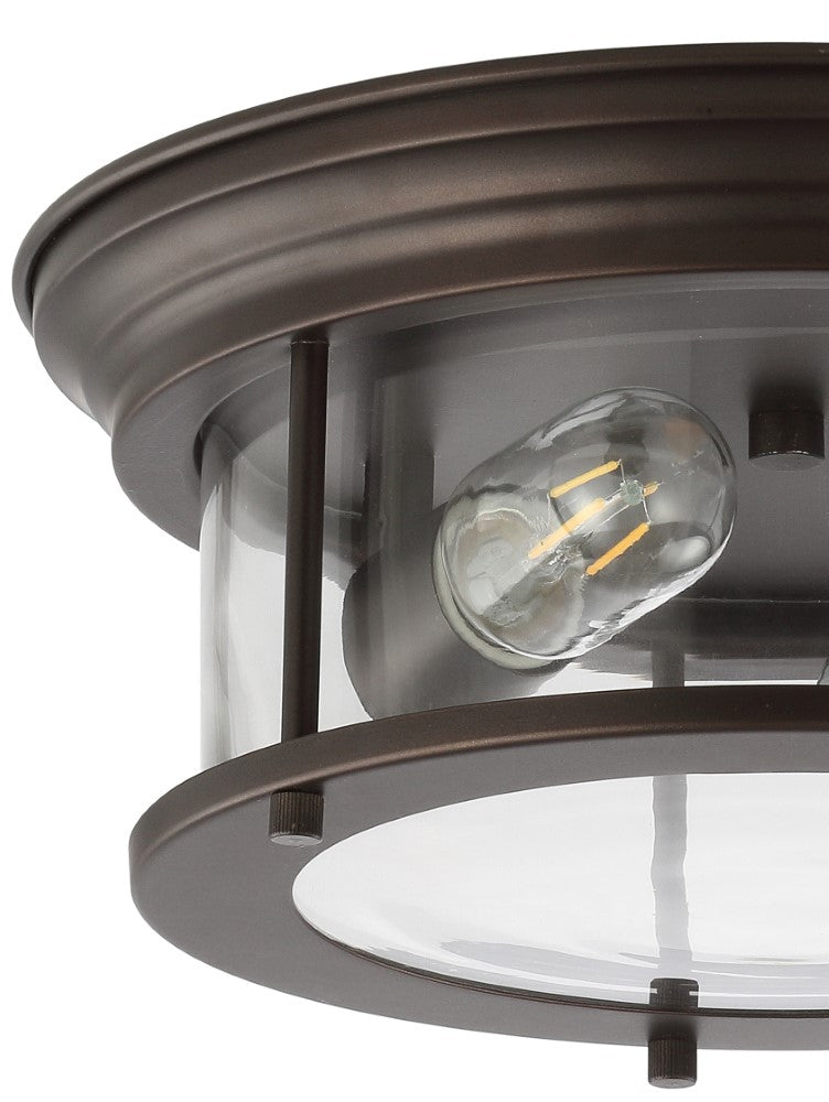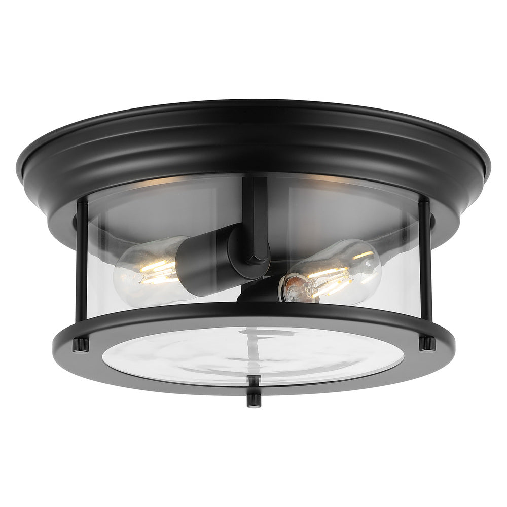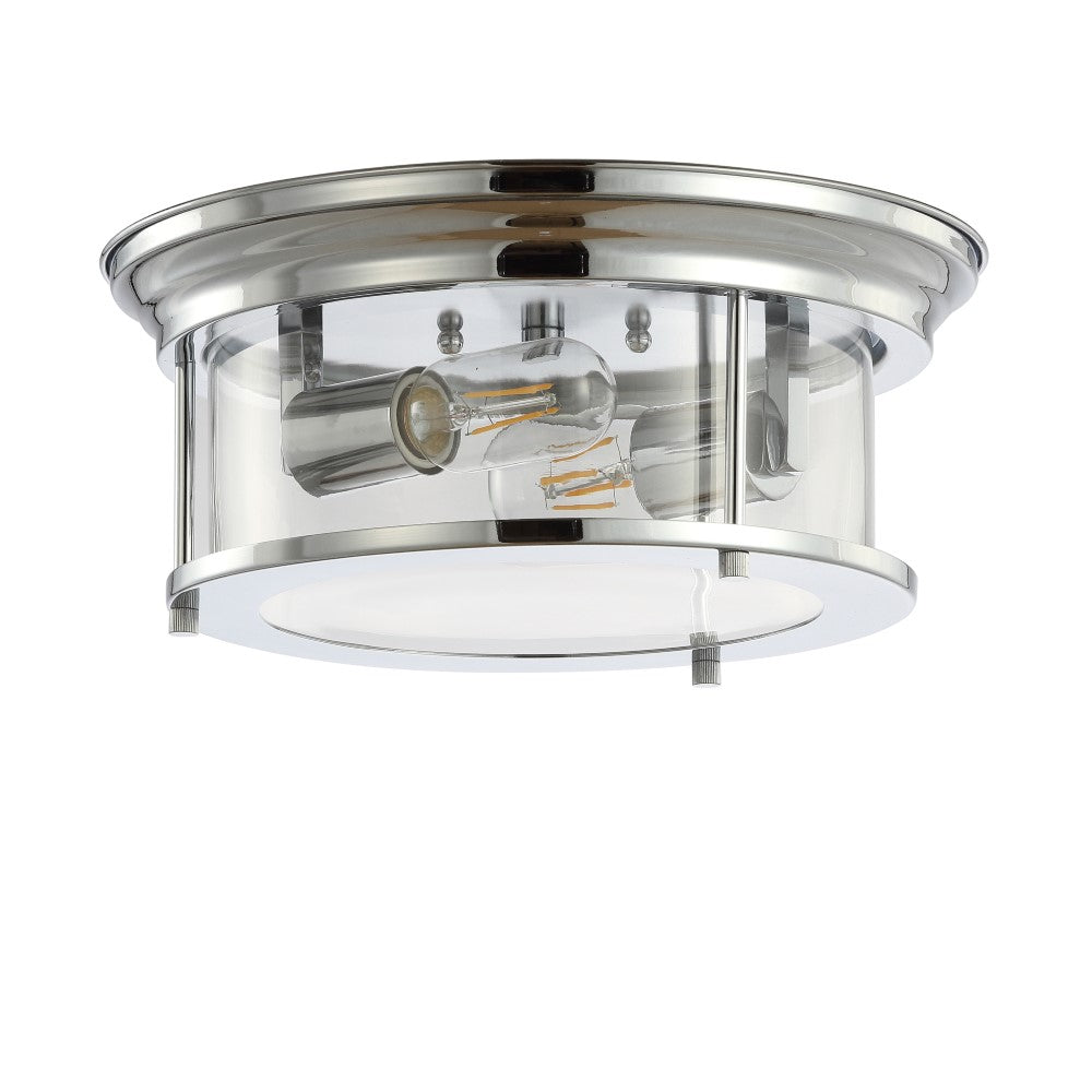 This flush mount puts a refined spin on an industrial-inspired design. The underside is sealed with white glass to cast a soft glow. With 2 light within, its a great fixture for kitchens, bathrooms, and dining areas needing dimmable light.