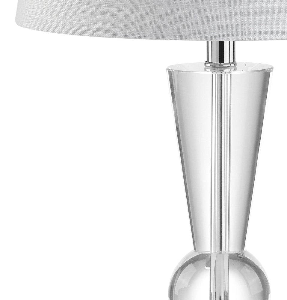Reminiscent of the hyacinth glasses that line the windows of shops in Copenhagen each Spring, the base on this small-scale table lamp brings Danish design to your home with a traditional twist -- in crystal! Topped with an empire shade in white cotton fabric and finished with a silk-wrapped cord, the styling opportunities are endless for this versatile piece. On top of its gorgeous design, this lamp is fabricated from premium materials -- 100% cotton fabric, crystal, and chromed electrical components -- making it a reliable choice for years to come.