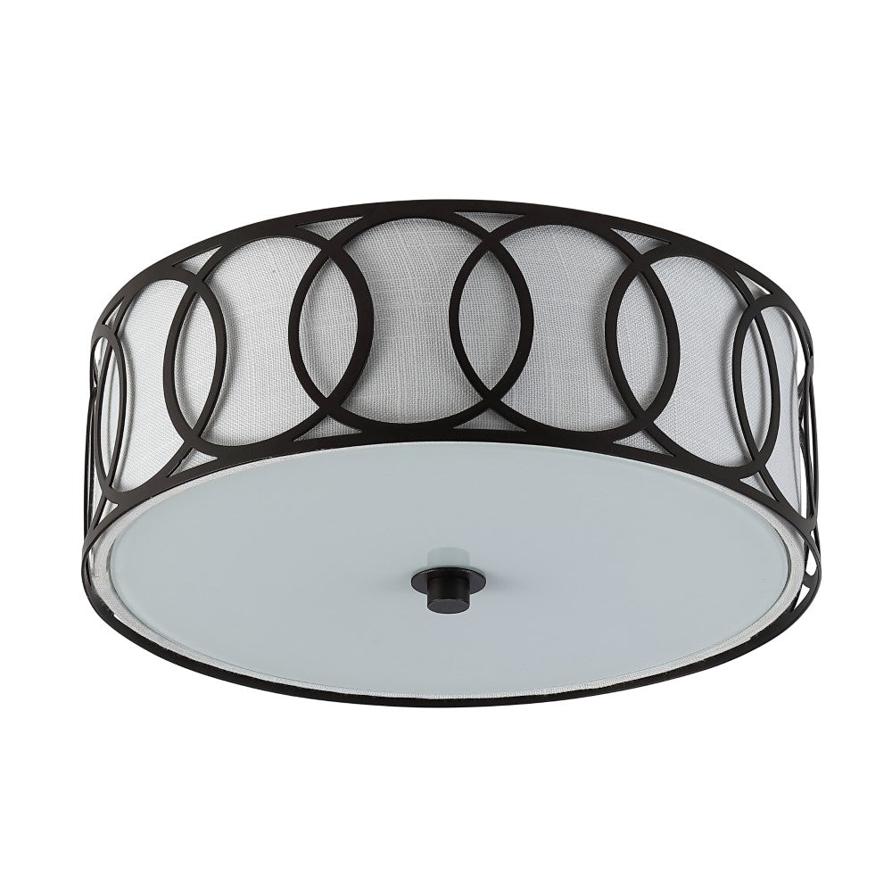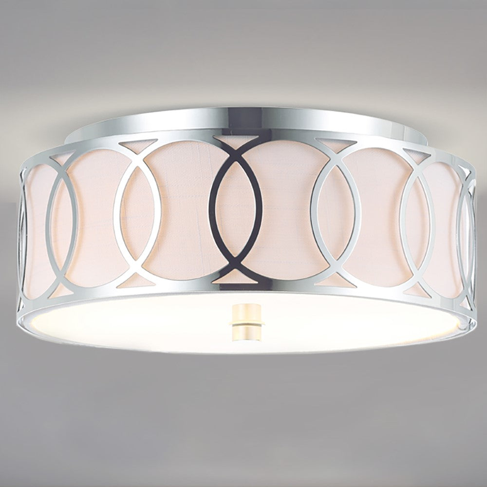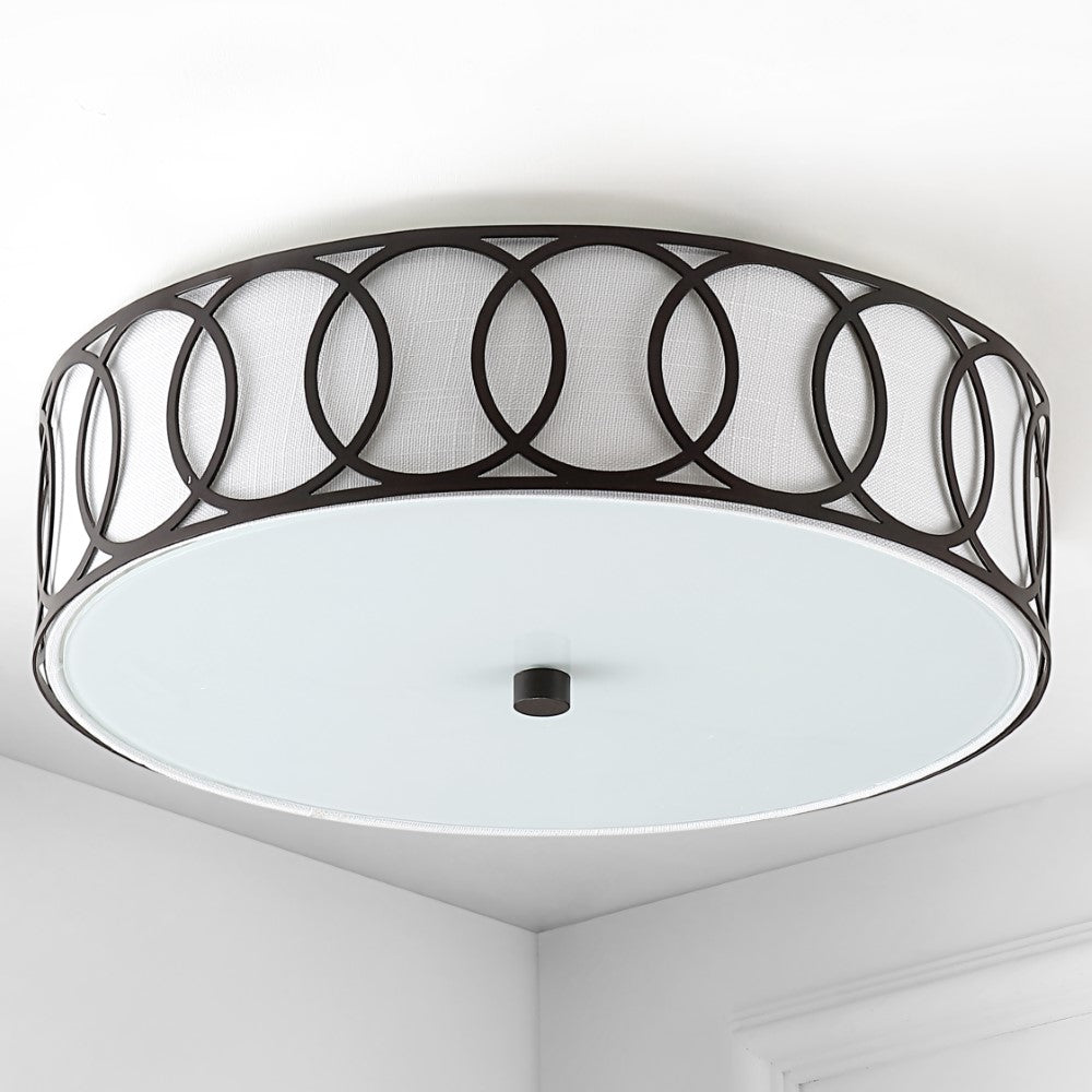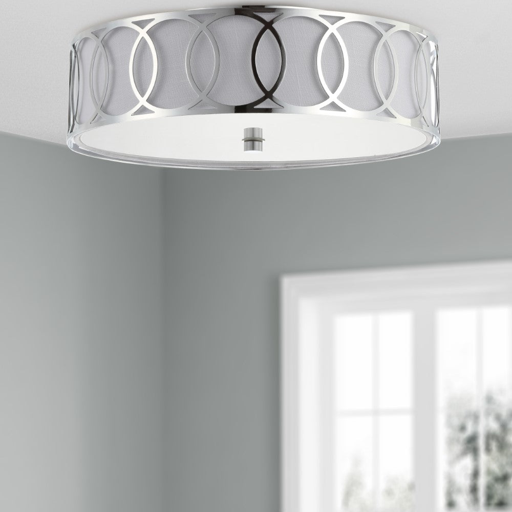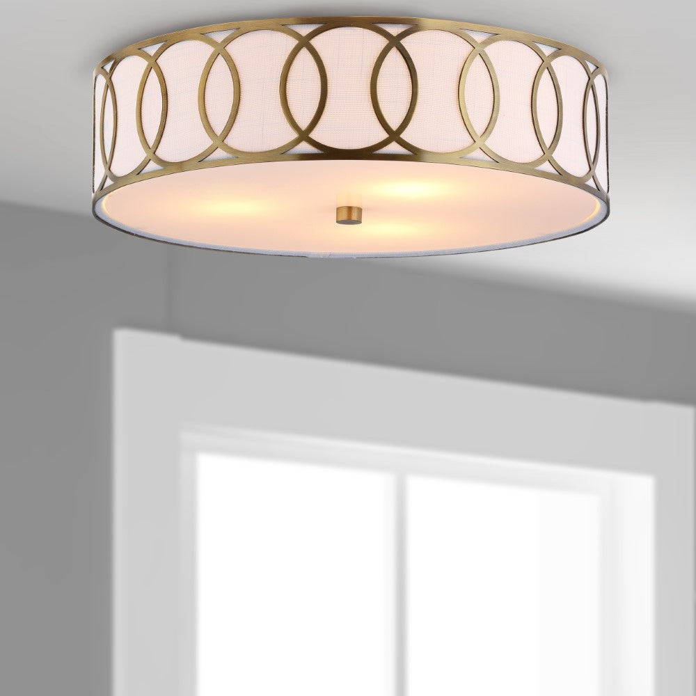 - This eye-catching flush mount ceiling light features overlapping circle fretwork surrounding a round linen shade