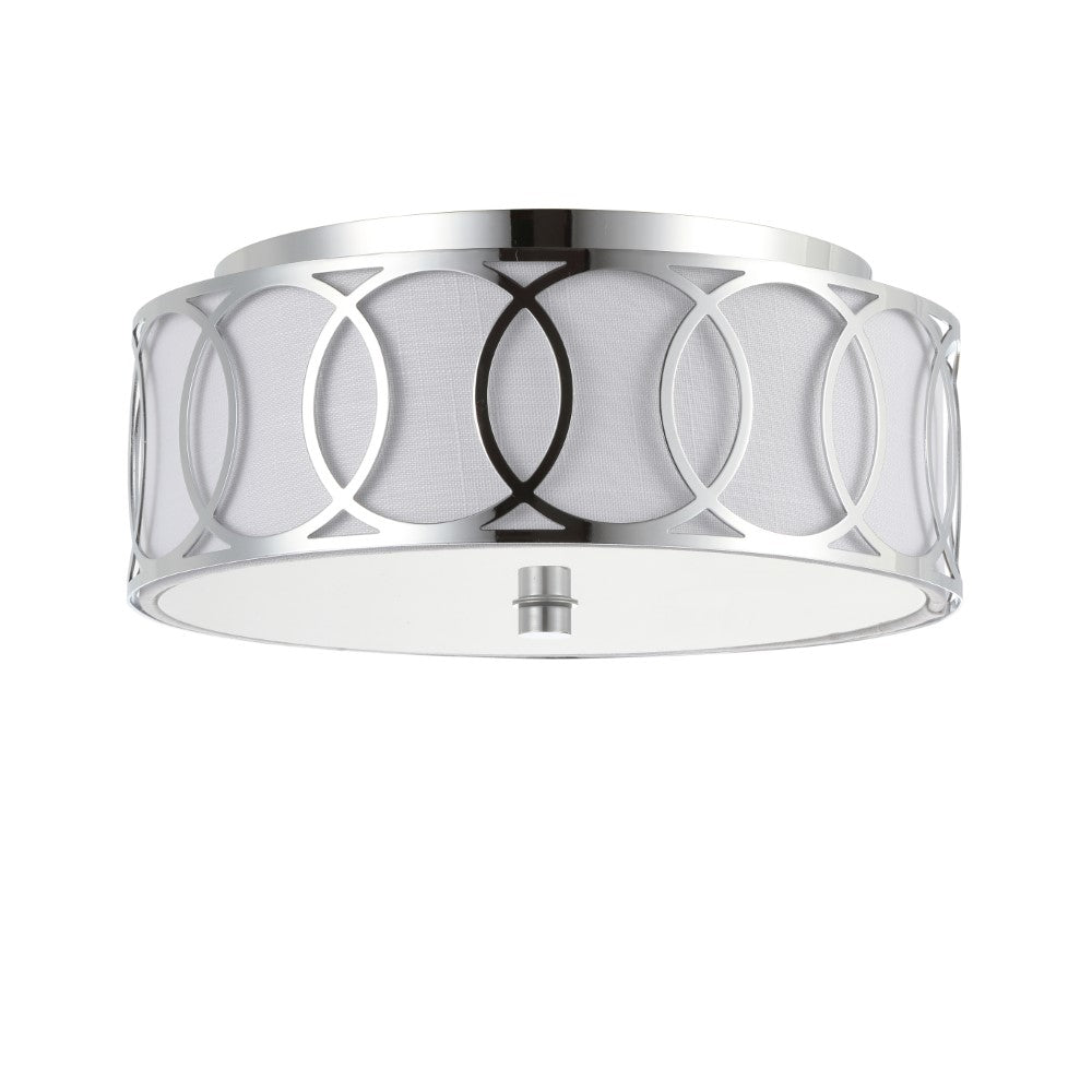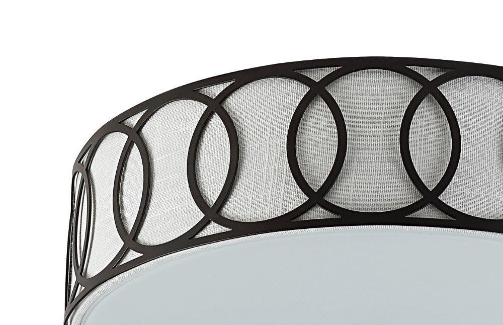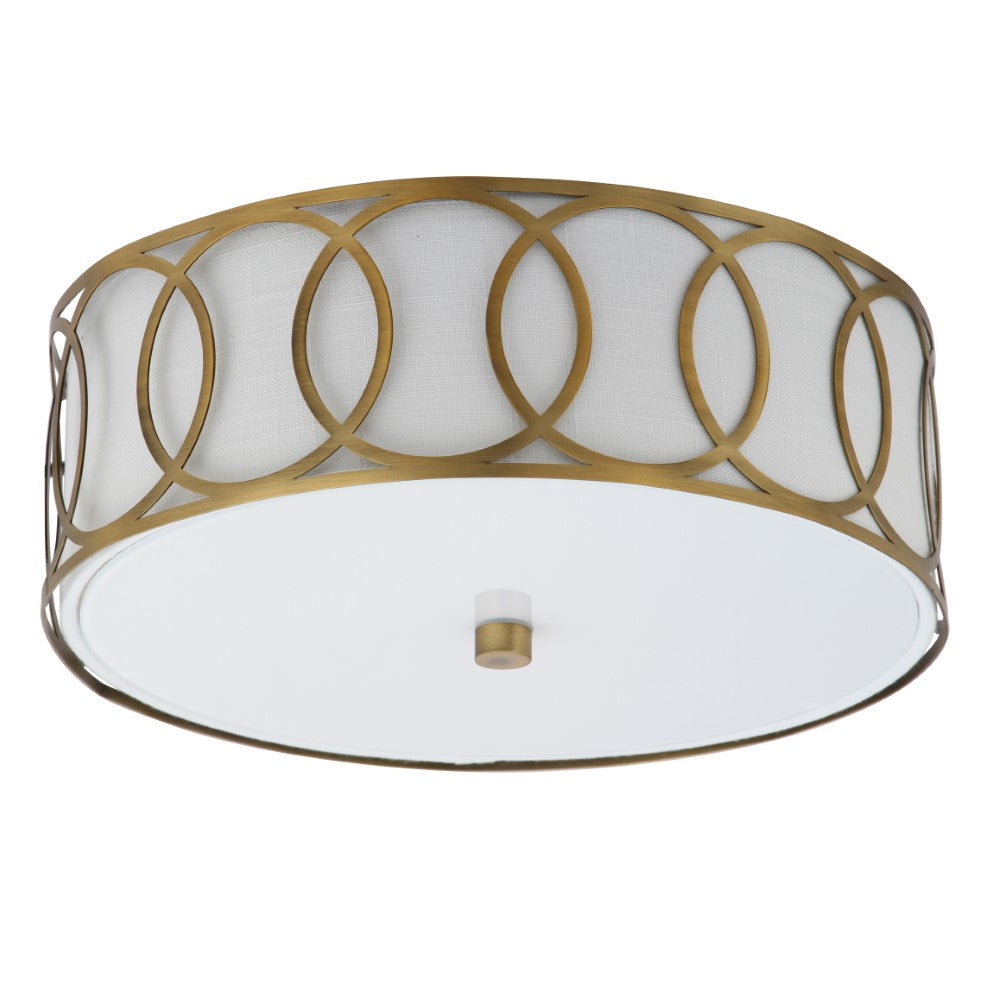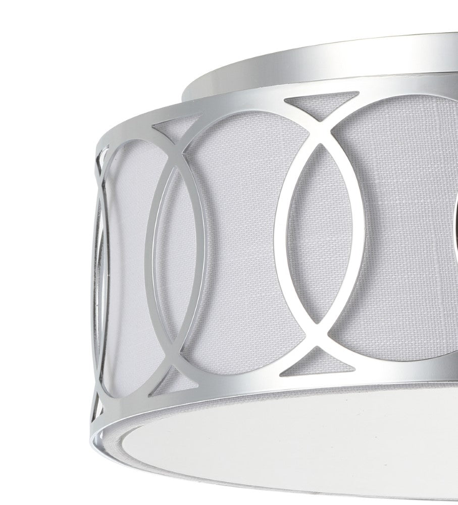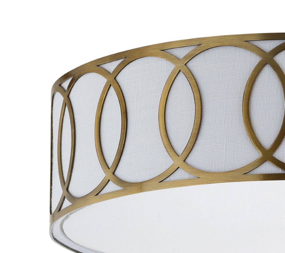 - This eye-catching flush mount ceiling light features overlapping circle fretwork surrounding a round linen shade