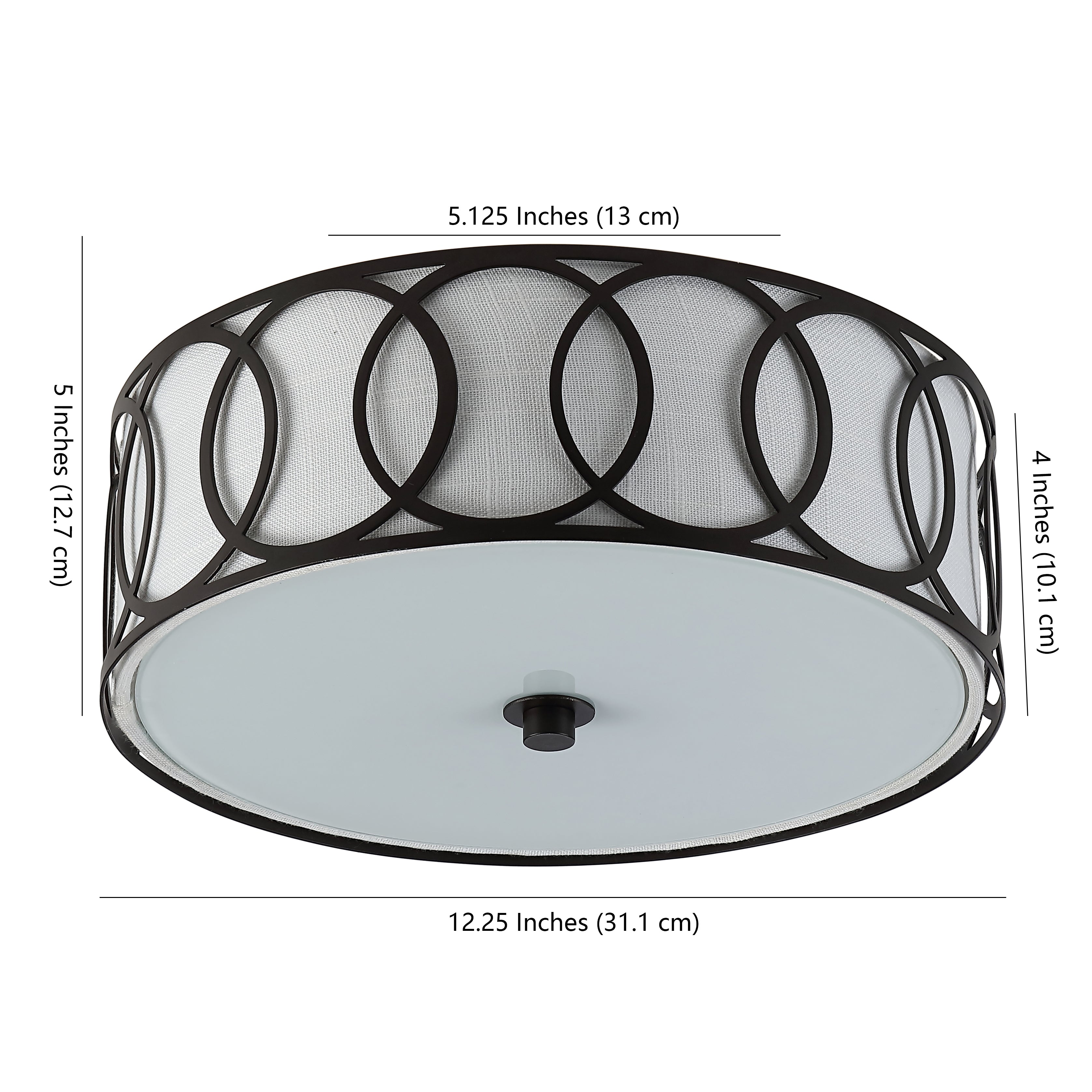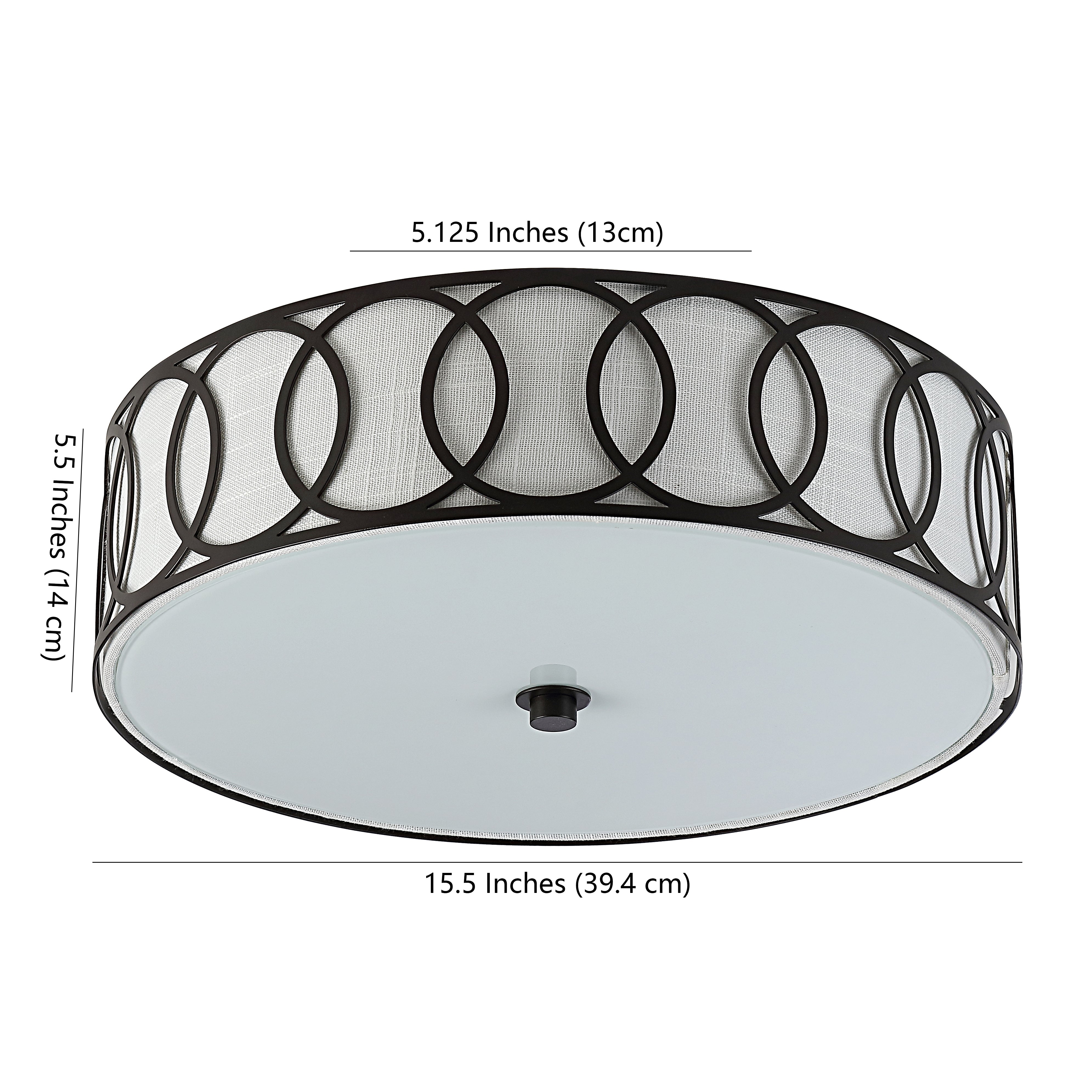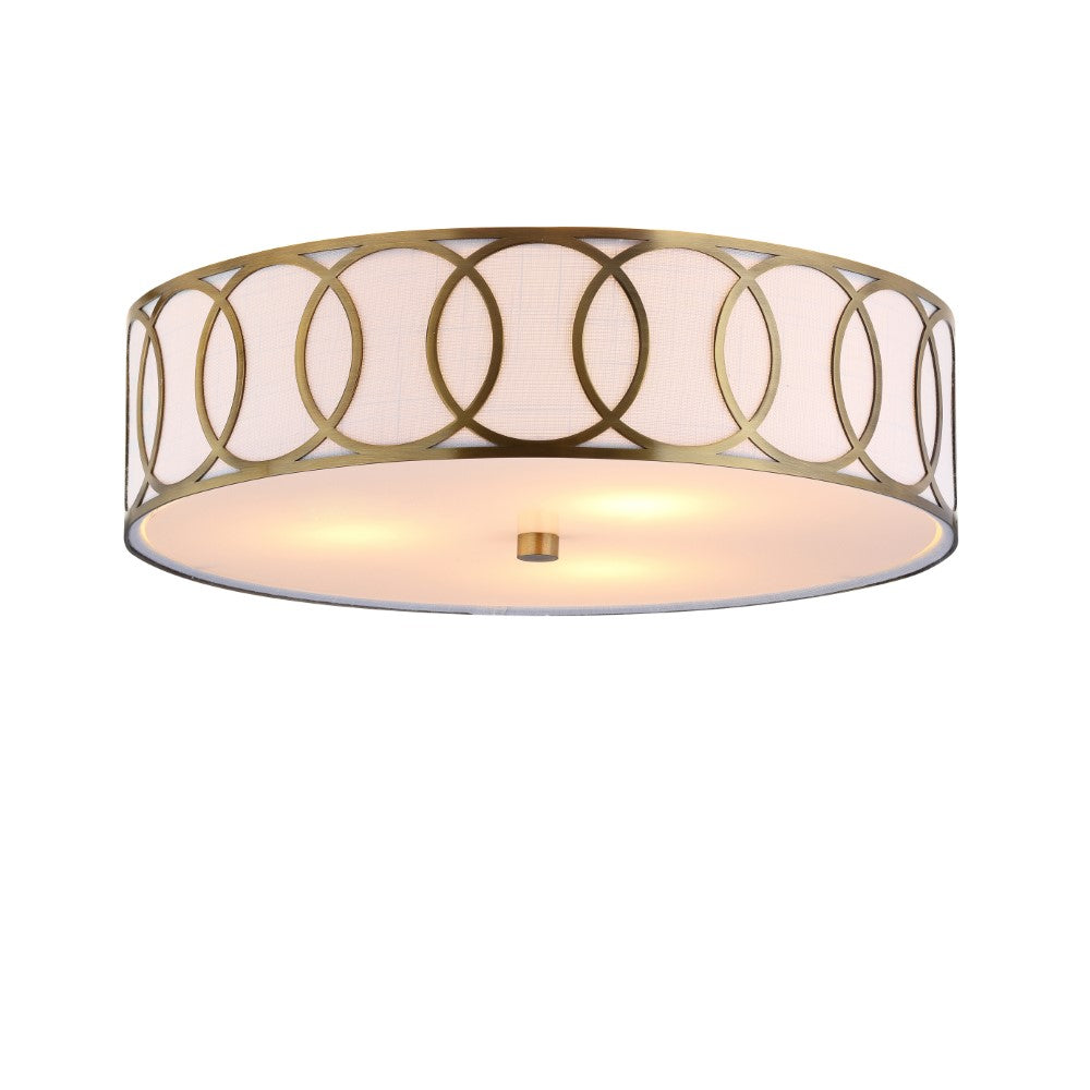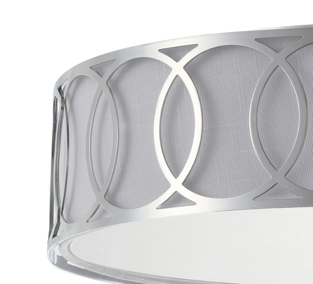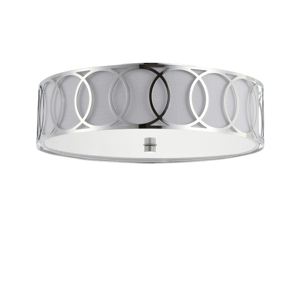 - This eye-catching flush mount ceiling light features overlapping circle fretwork surrounding a round linen shade