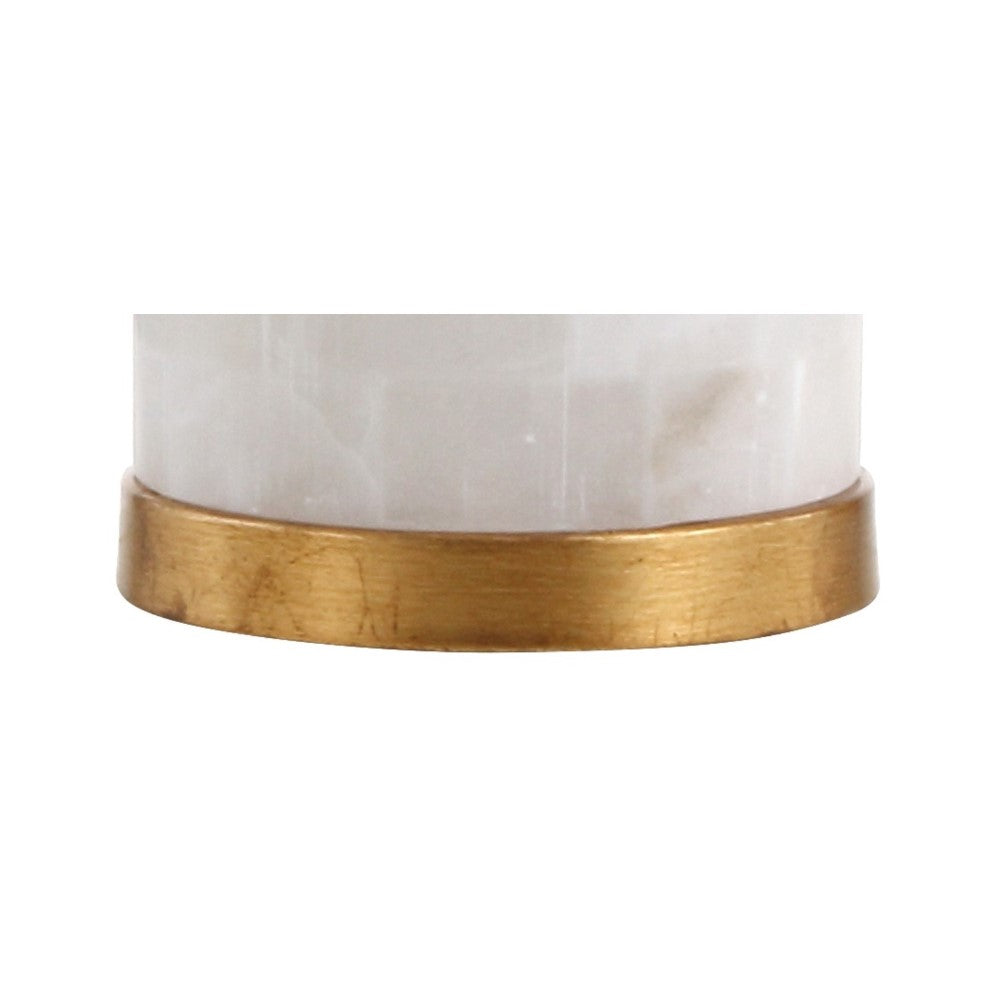 • Alabaster and gold add luxurious touches to a classic column table lamp silhouette