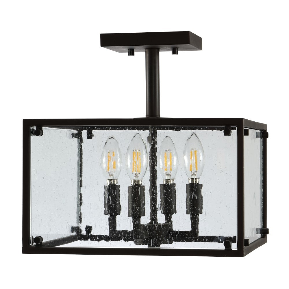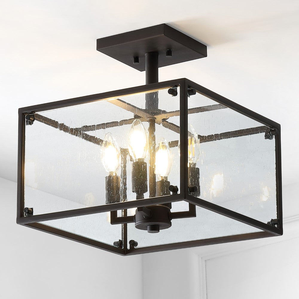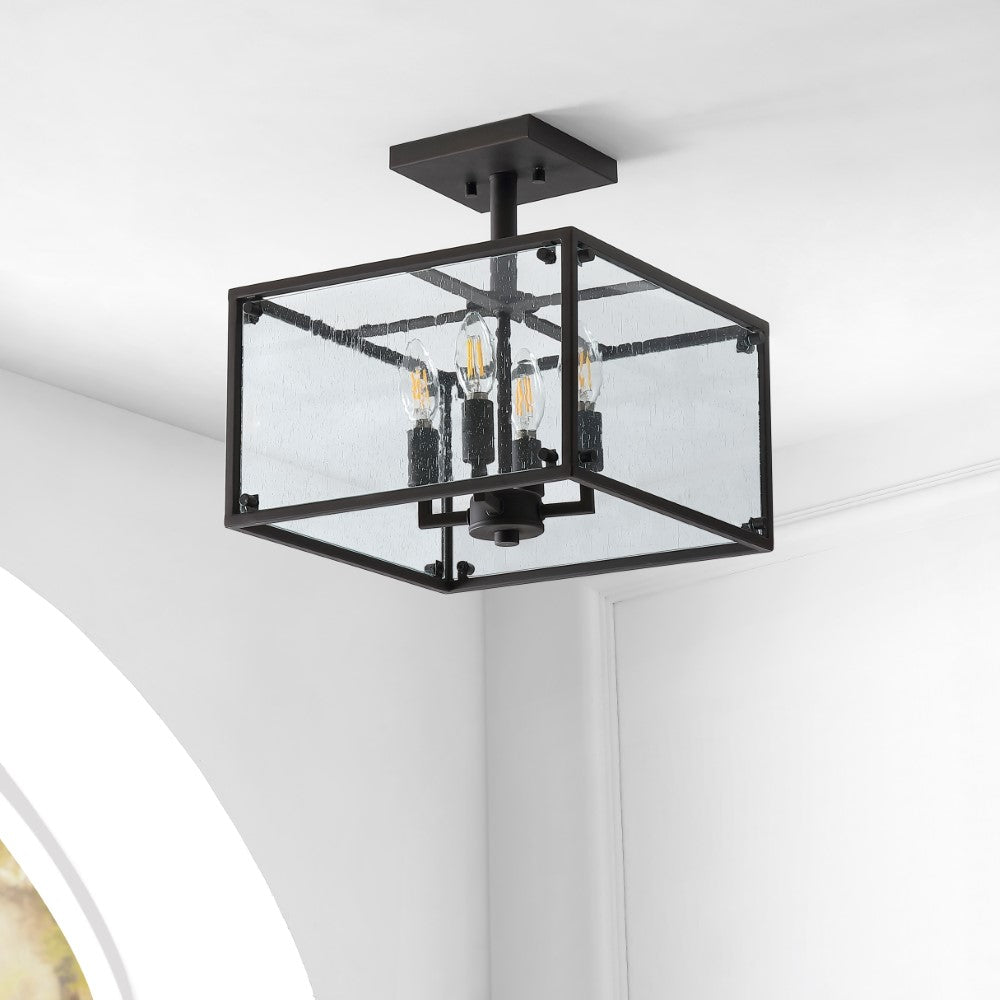 This square ceiling light is ideal for your modern farmhouse, rustic kitchen or industrial interior design. Features four LED bulbs inside a seeded clear glass lantern shade, accented with a black metal finish. This ceiling fixture is perfect for the kitchen, bedroom, entry, hallway or closet.