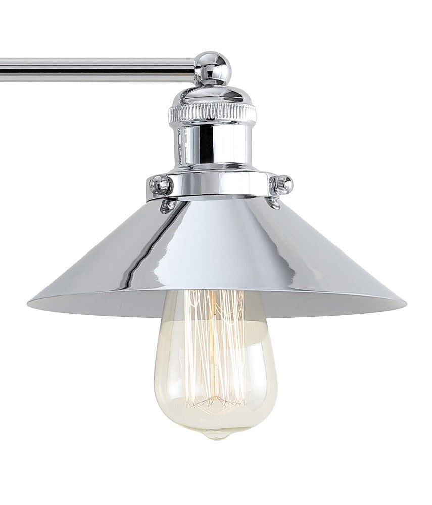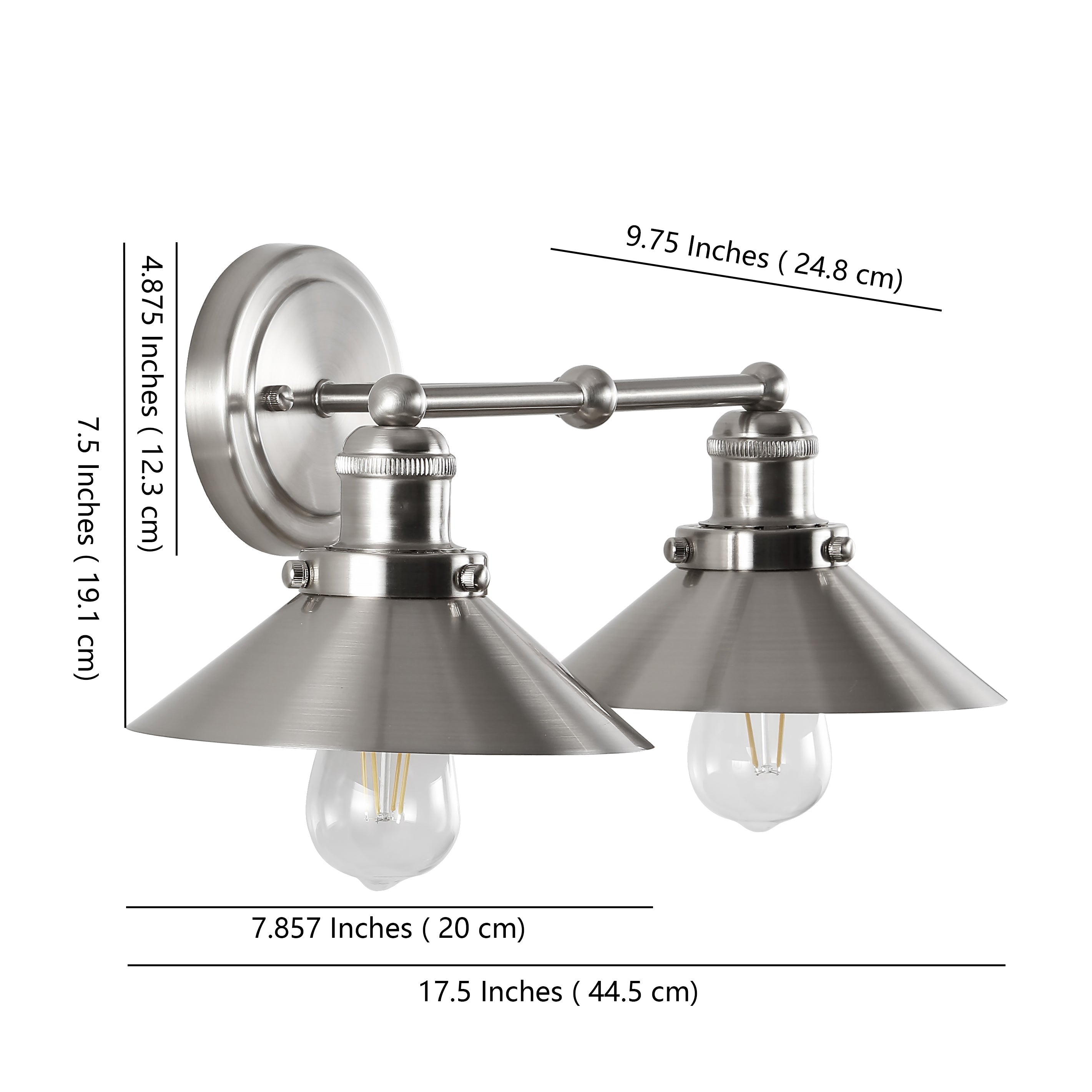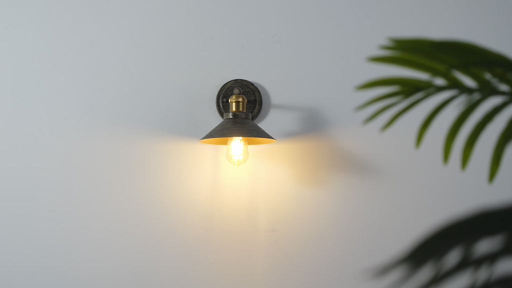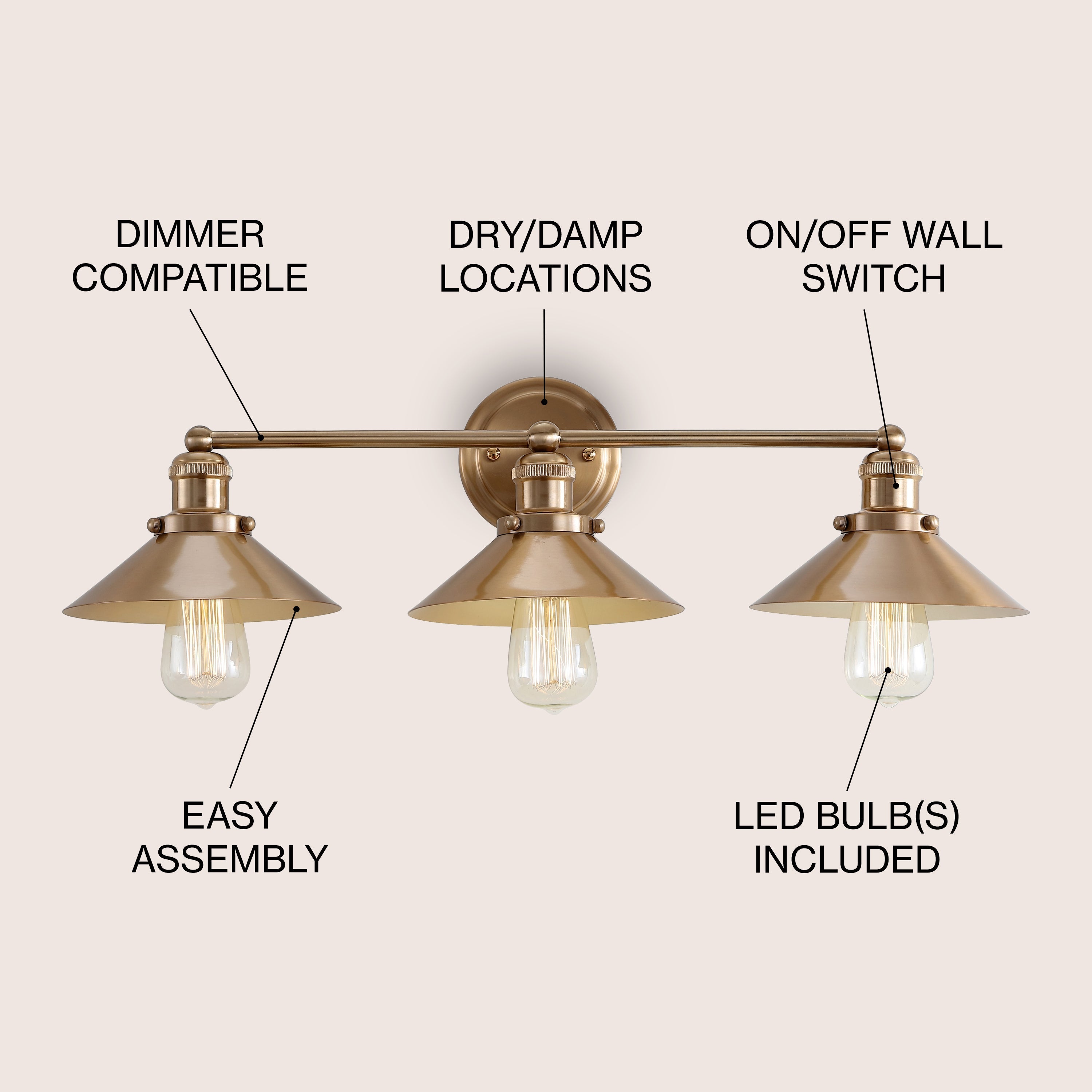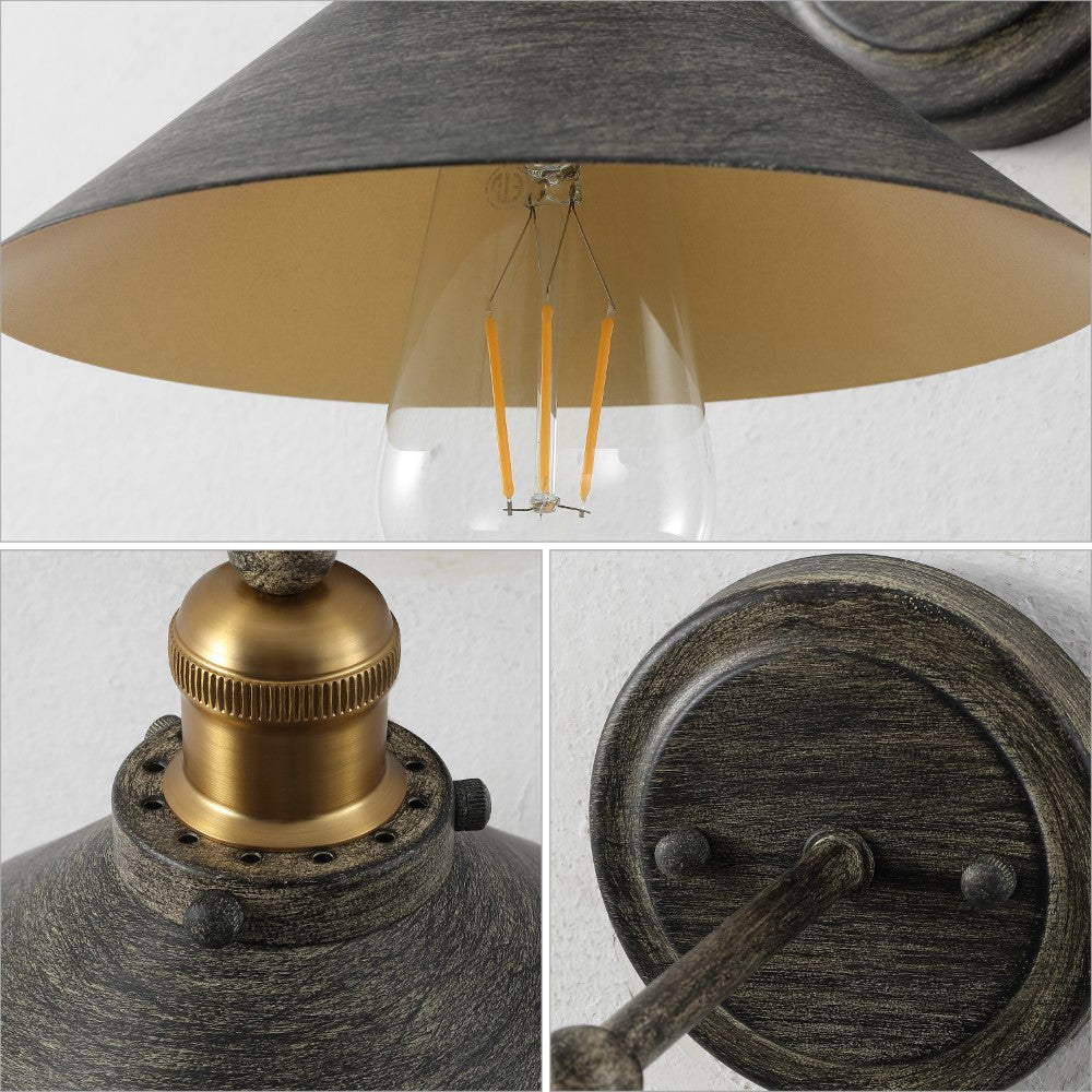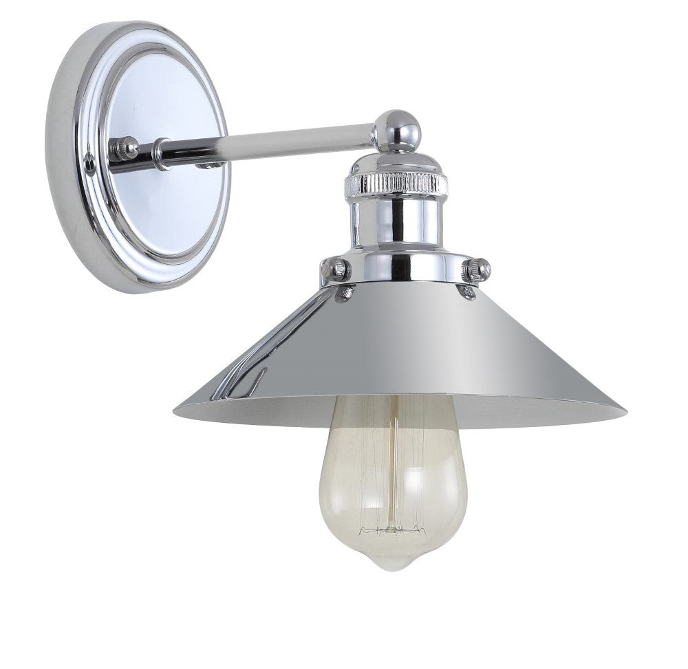 Like a classic barn light but in a modern shape and smaller scale, this classic design features a metal cone shade that conceals the top half of the bulb -- perfect for a clean, industrial look. In a matte orb finish, this sconce is perfectly at home on either side of a bathroom mirror or as extra lighting in kitchens, where your hardware truly shines. Also available in multi-light configurations, the geometric shape adds elegant interest to any space.