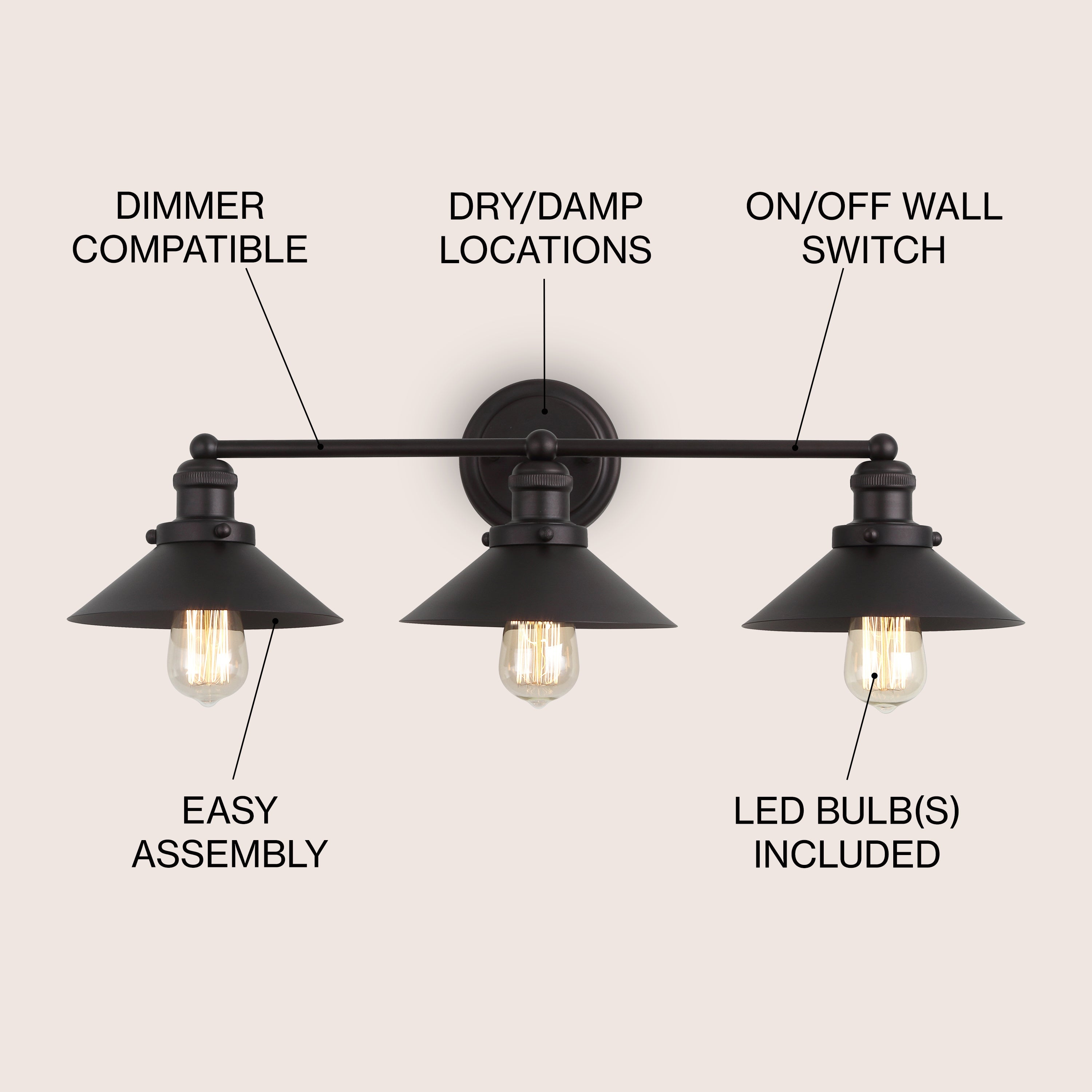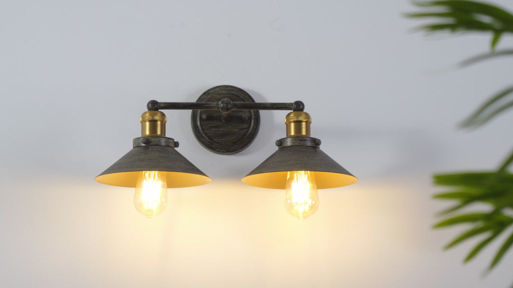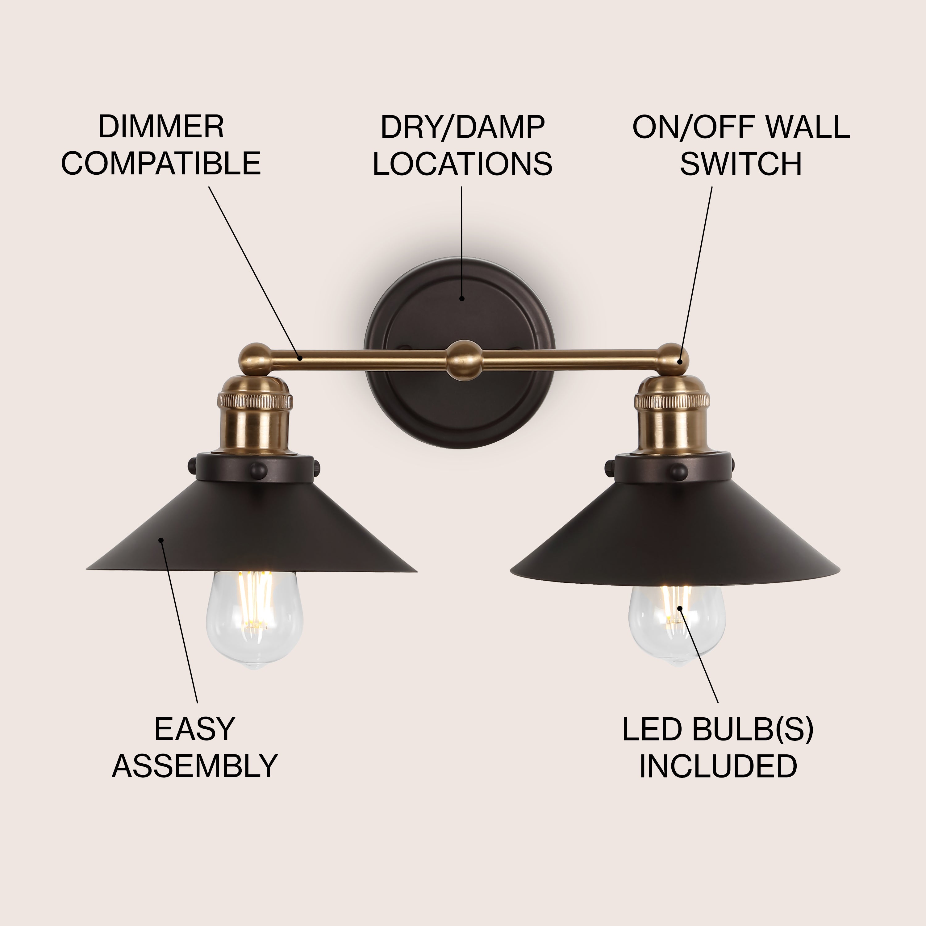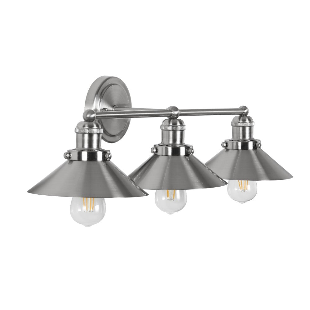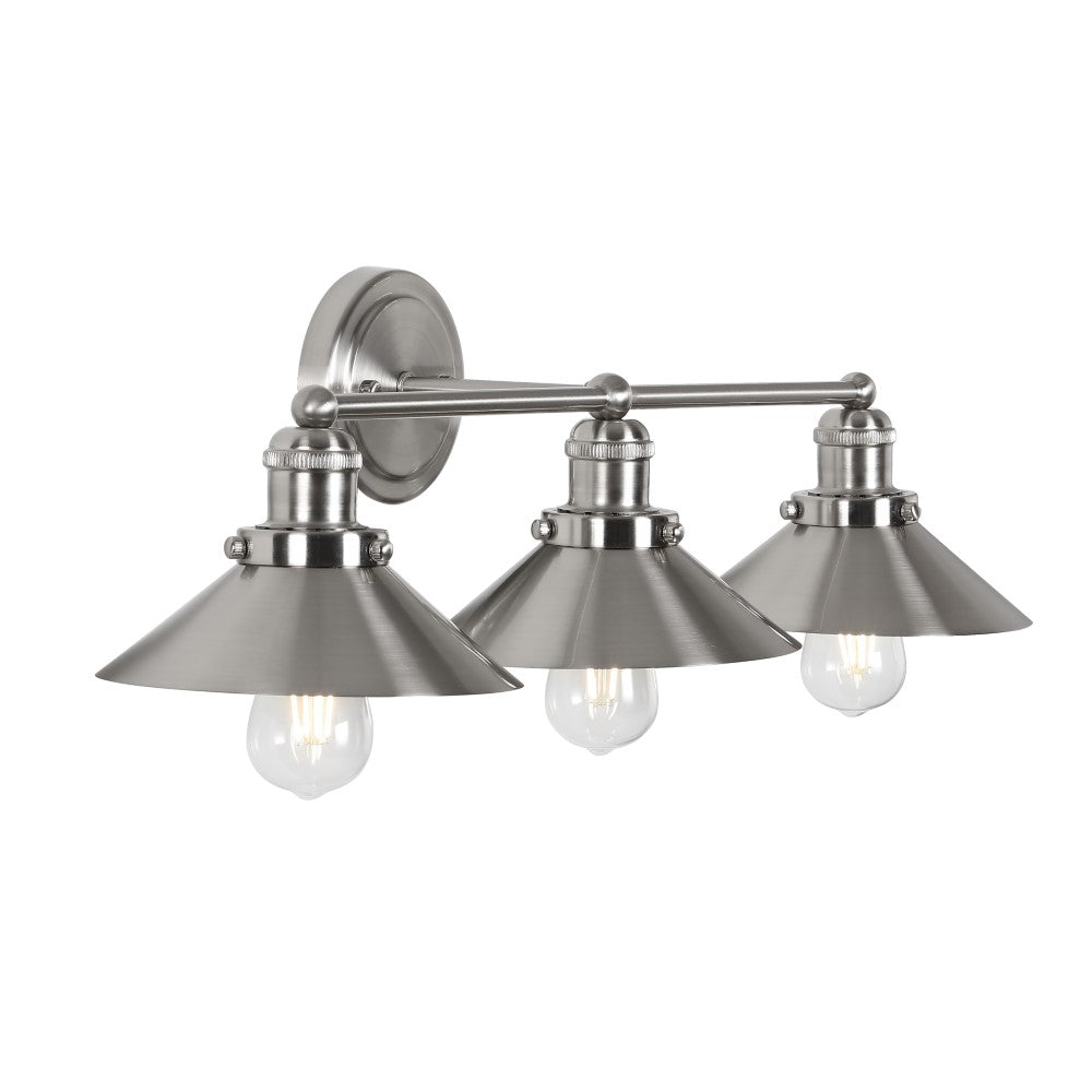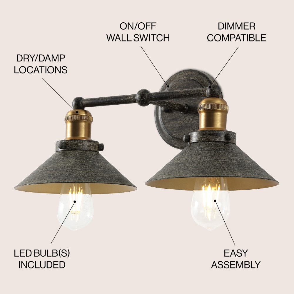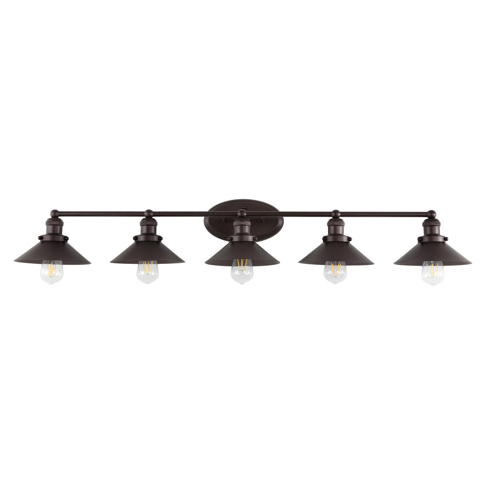 Like a classic barn light but in a modern shape and smaller scale, this classic design features a metal cone shade that conceals the top half of the bulb -- perfect for a clean, industrial look. In a matte orb finish, this sconce is perfectly at home on either side of a bathroom mirror or as extra lighting in kitchens, where your hardware truly shines. Also available in multi-light configurations, the geometric shape adds elegant interest to any space.