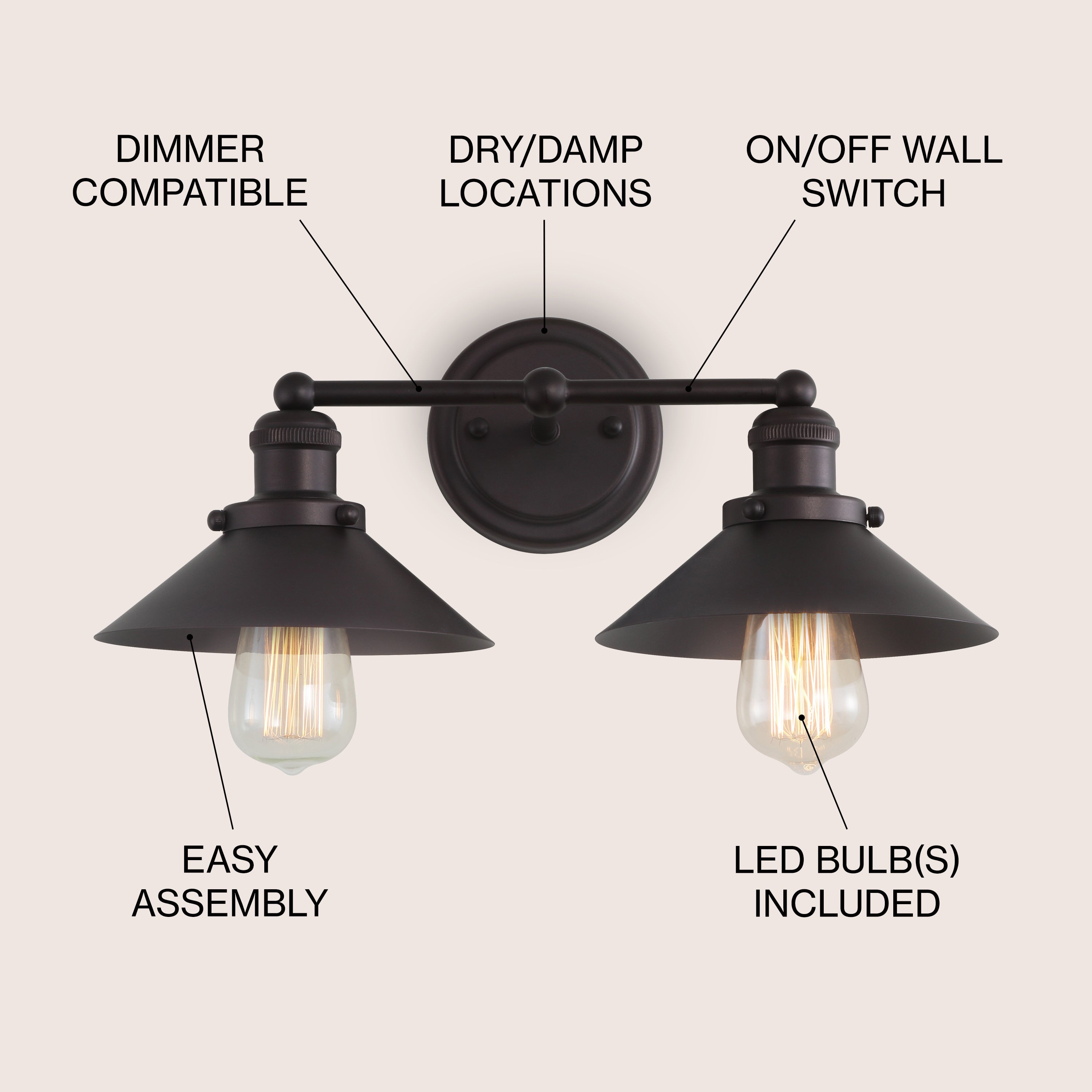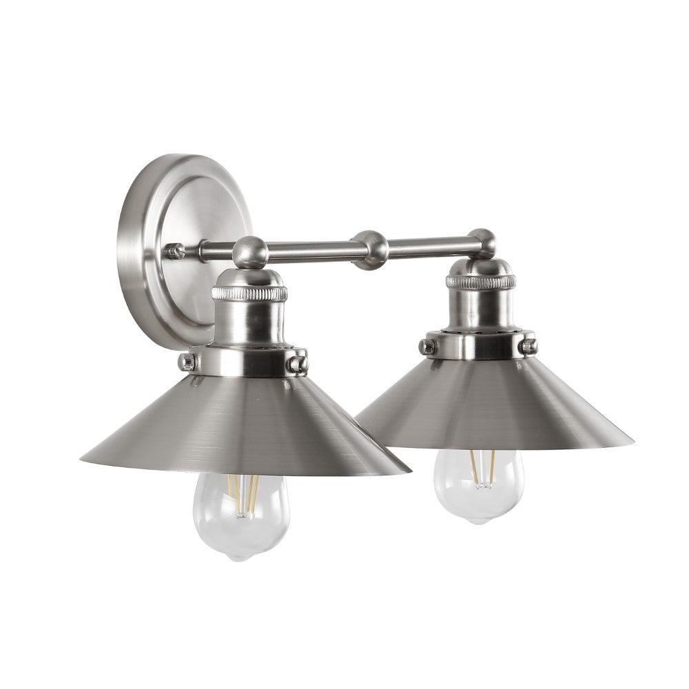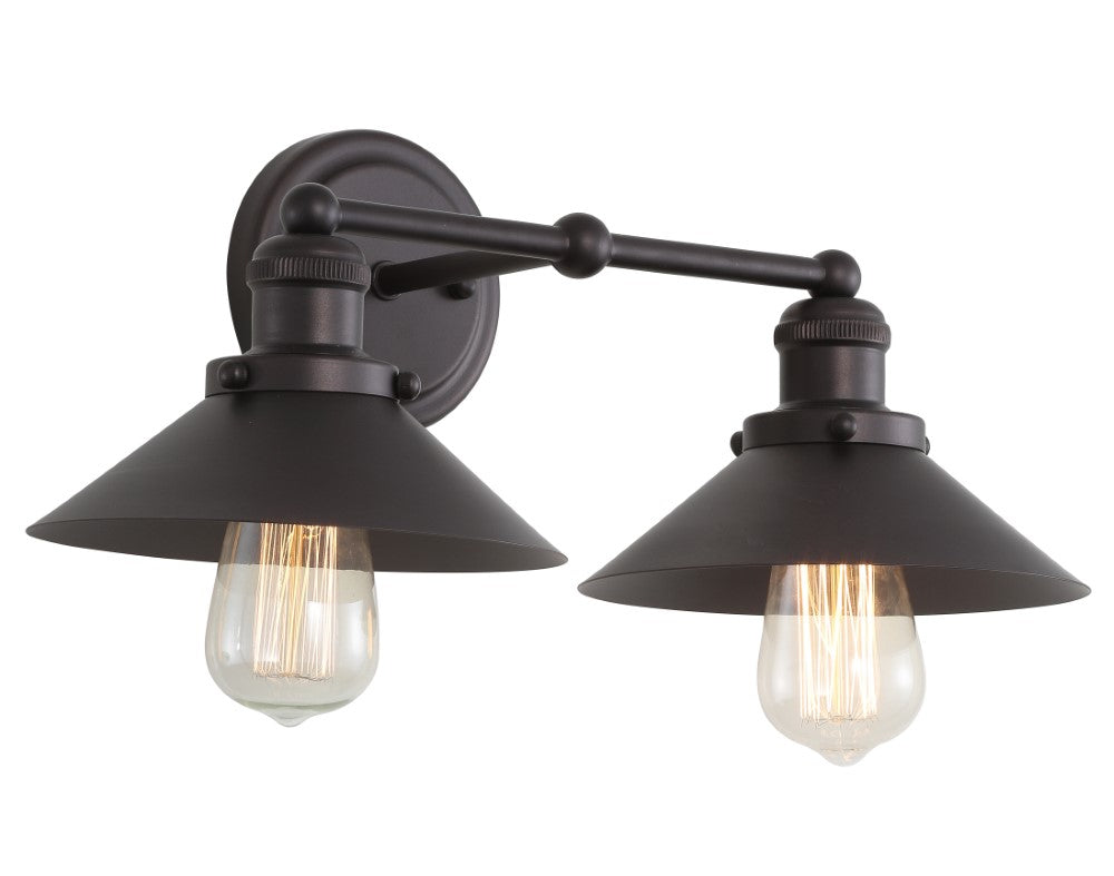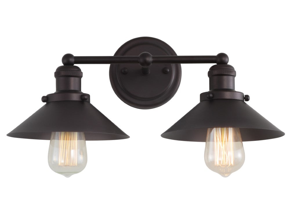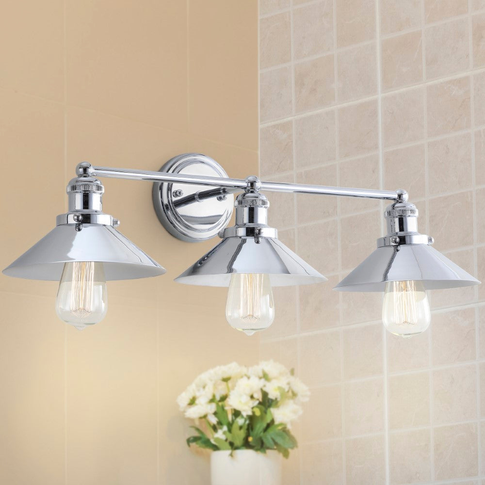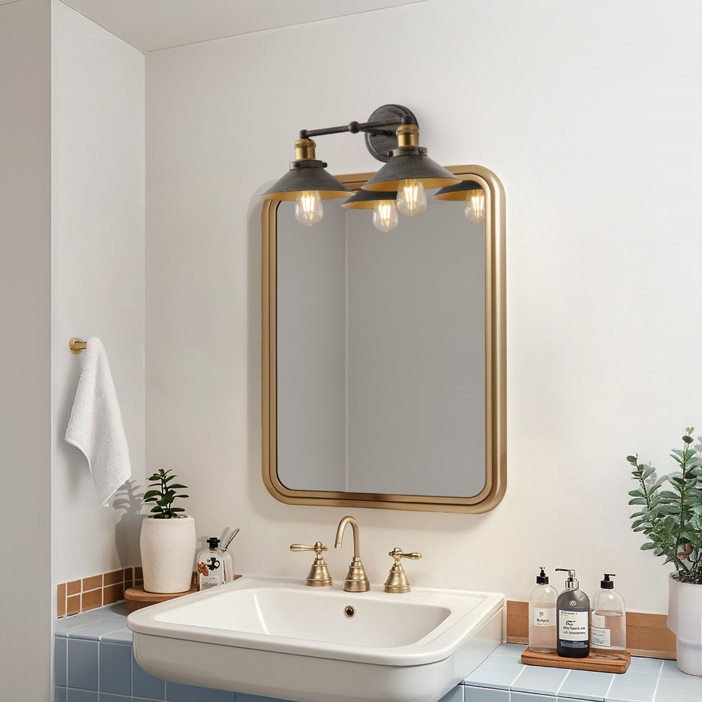Like a classic barn light but in a modern shape and smaller scale, this classic design features a metal cone shade that conceals the top half of the bulb -- perfect for a clean, industrial look. In a matte orb finish, this sconce is perfectly at home on either side of a bathroom mirror or as extra lighting in kitchens, where your hardware truly shines. Also available in multi-light configurations, the geometric shape adds elegant interest to any space.