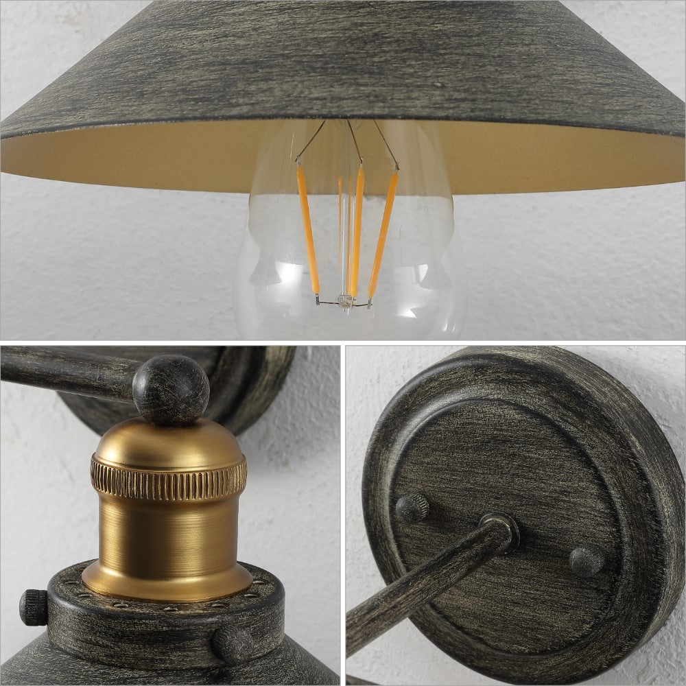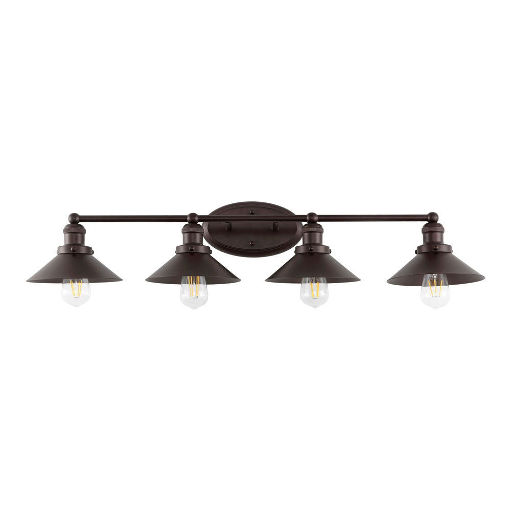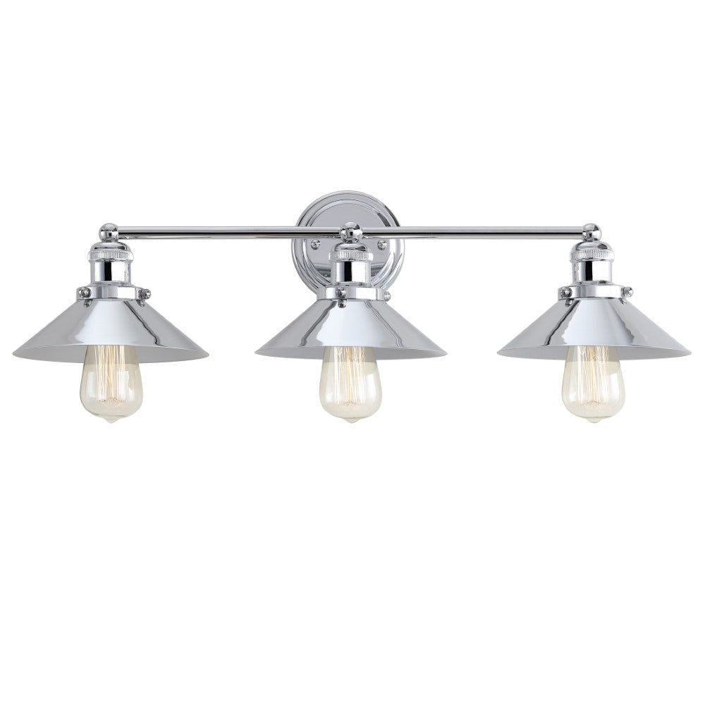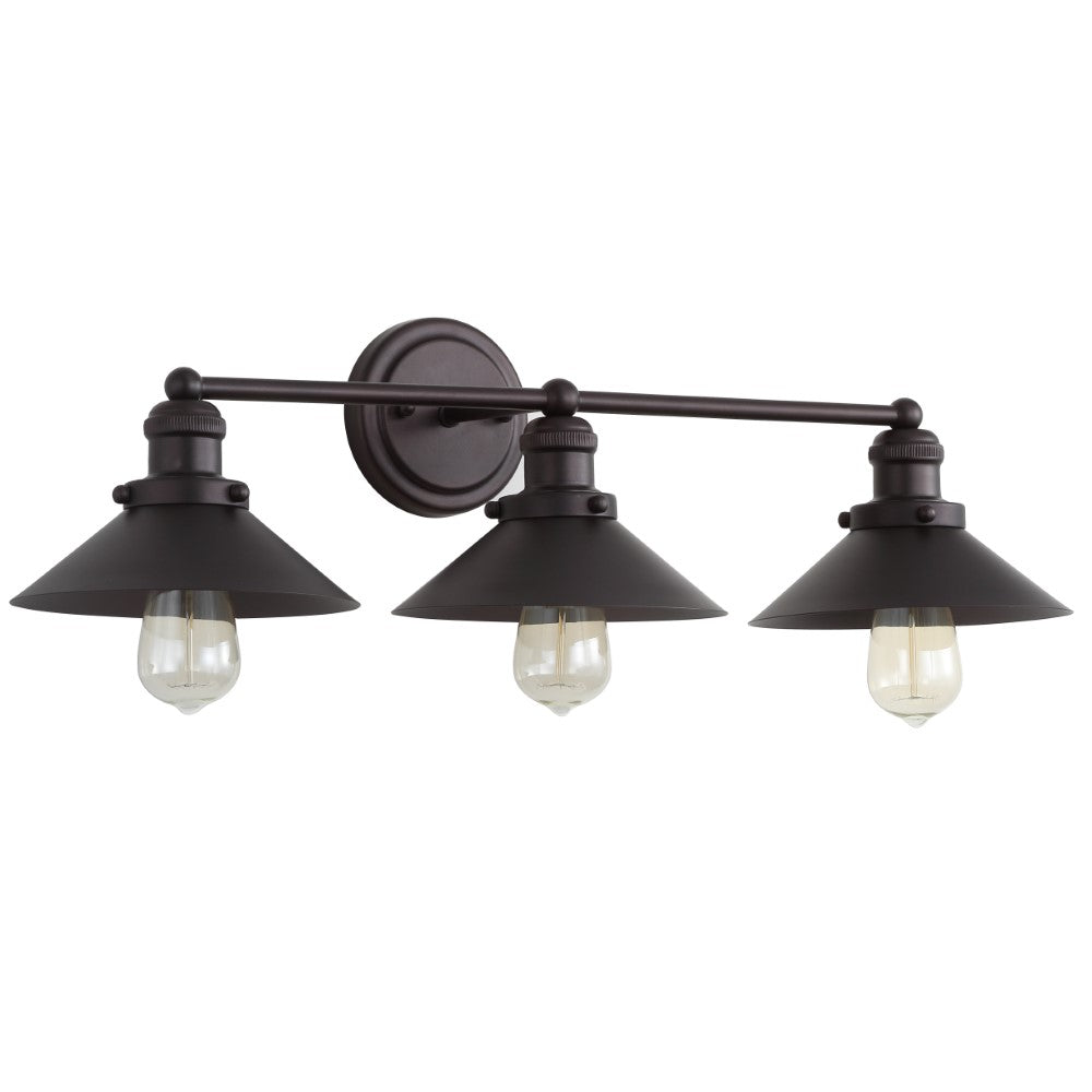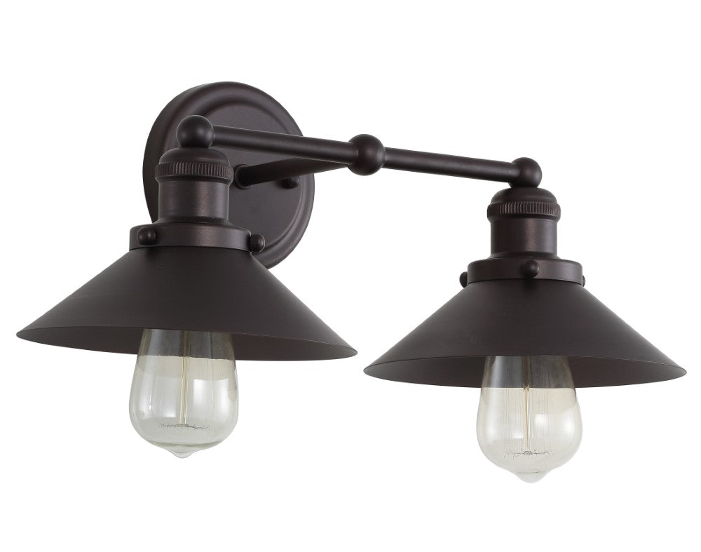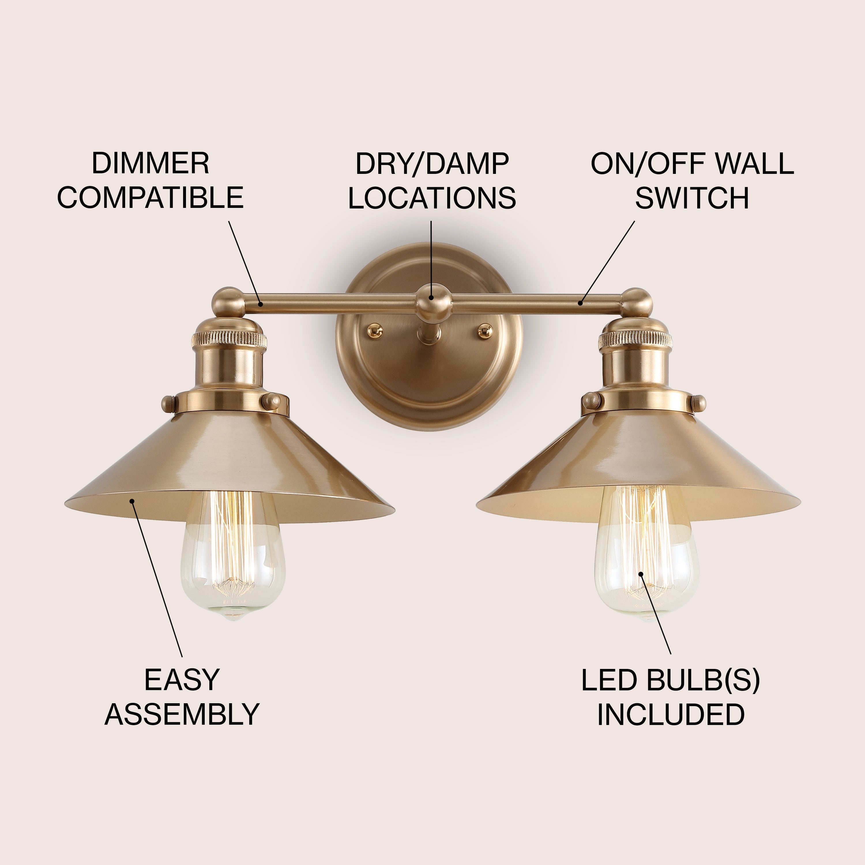 Like a classic barn light but in a modern shape and smaller scale, this classic design features a metal cone shade that conceals the top half of the bulb -- perfect for a clean, industrial look. In a matte orb finish, this sconce is perfectly at home on either side of a bathroom mirror or as extra lighting in kitchens, where your hardware truly shines. Also available in multi-light configurations, the geometric shape adds elegant interest to any space.