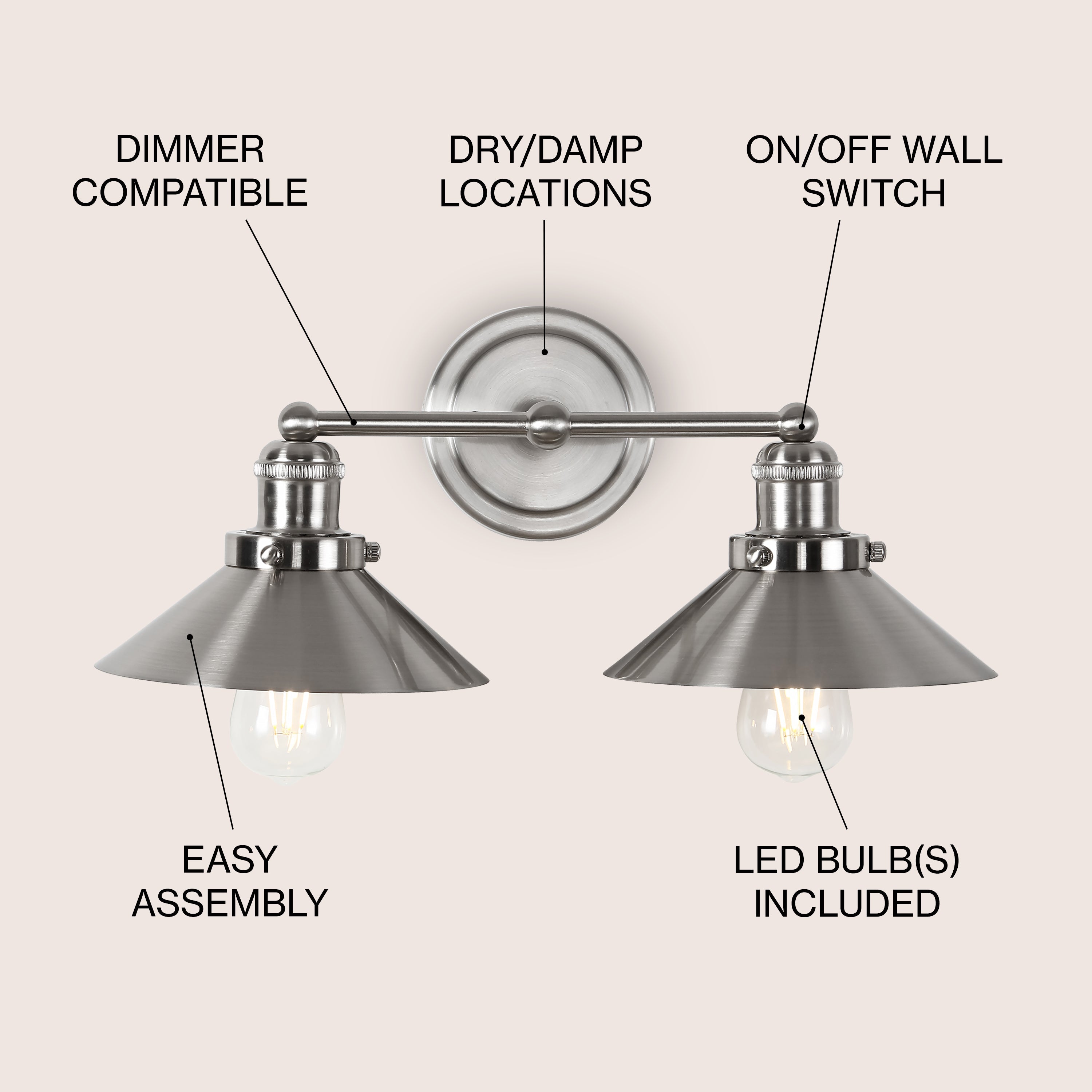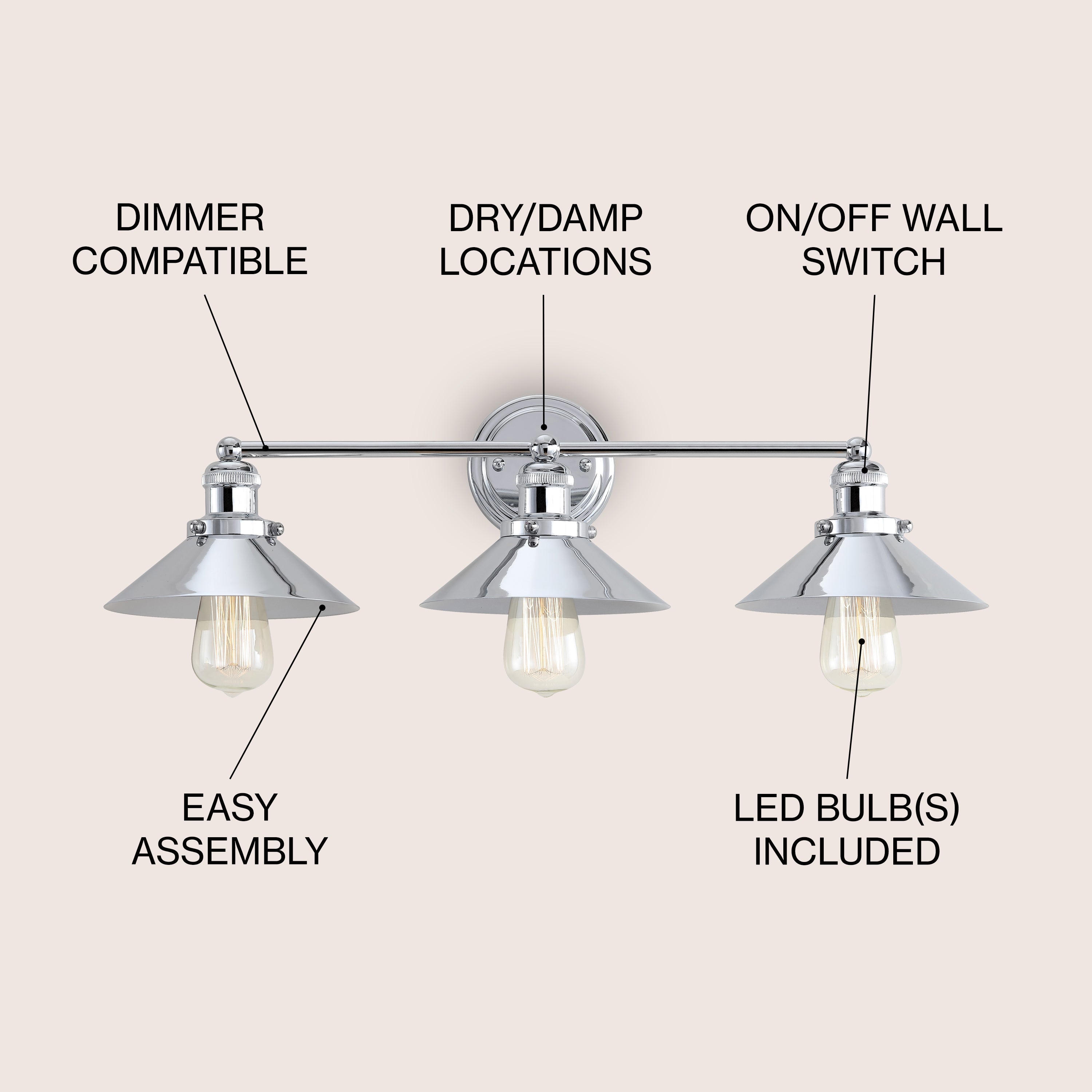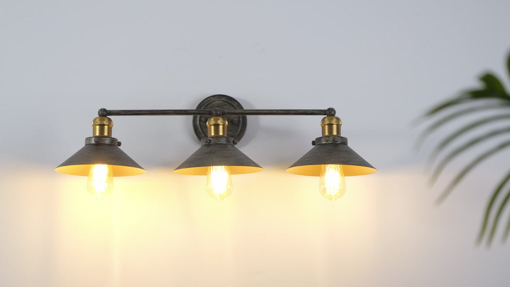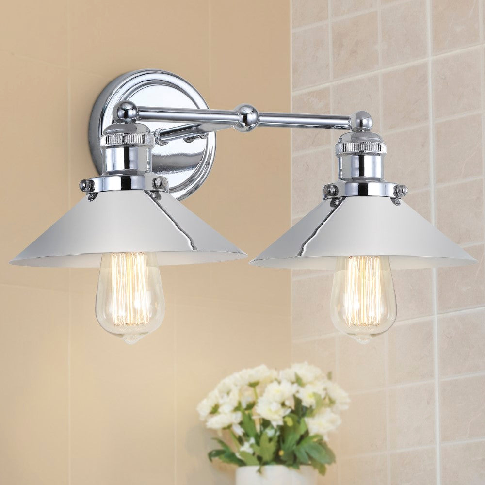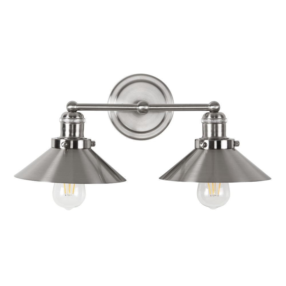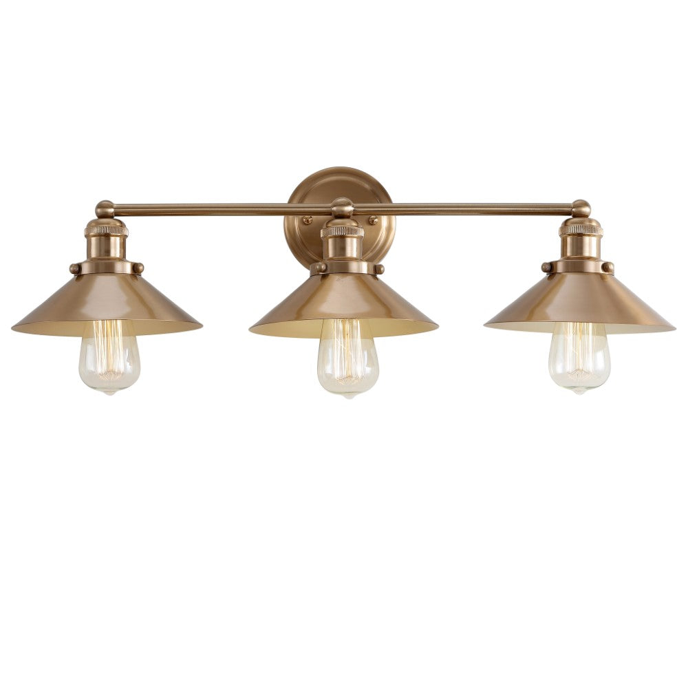 Like a classic barn light but in a modern shape and smaller scale, this classic design features a metal cone shade that conceals the top half of the bulb -- perfect for a clean, industrial look. In a matte orb finish, this sconce is perfectly at home on either side of a bathroom mirror or as extra lighting in kitchens, where your hardware truly shines. Also available in multi-light configurations, the geometric shape adds elegant interest to any space.