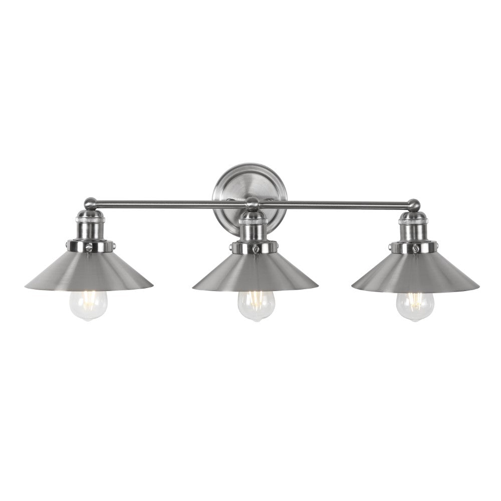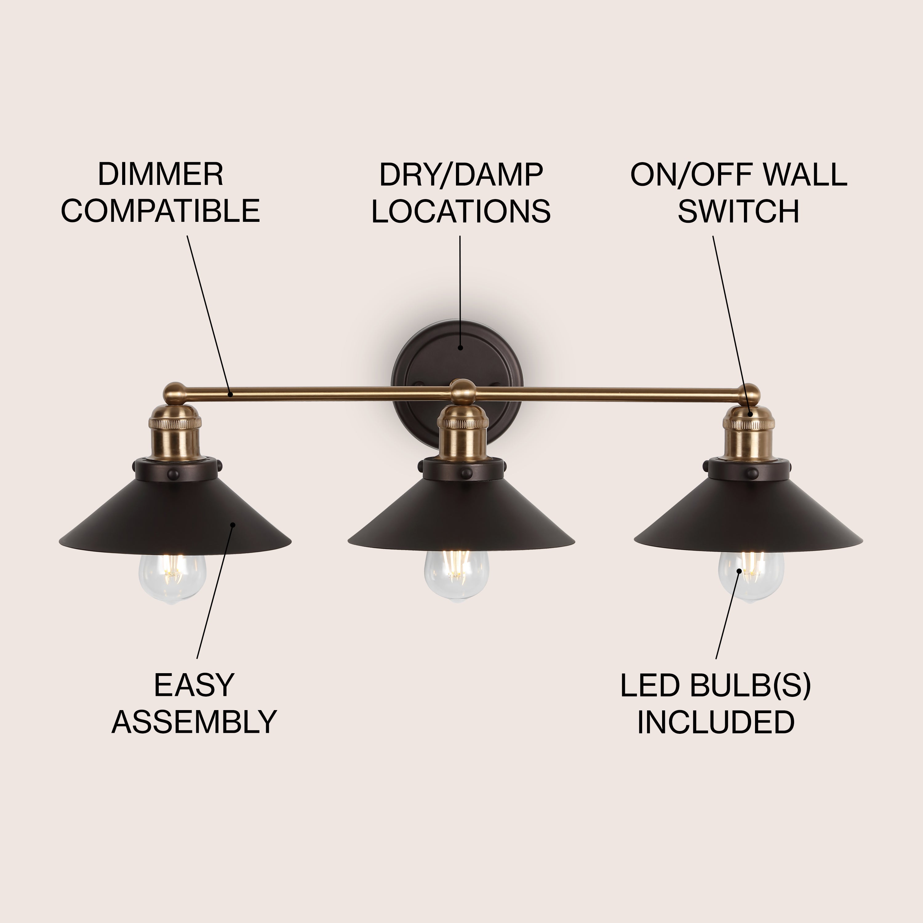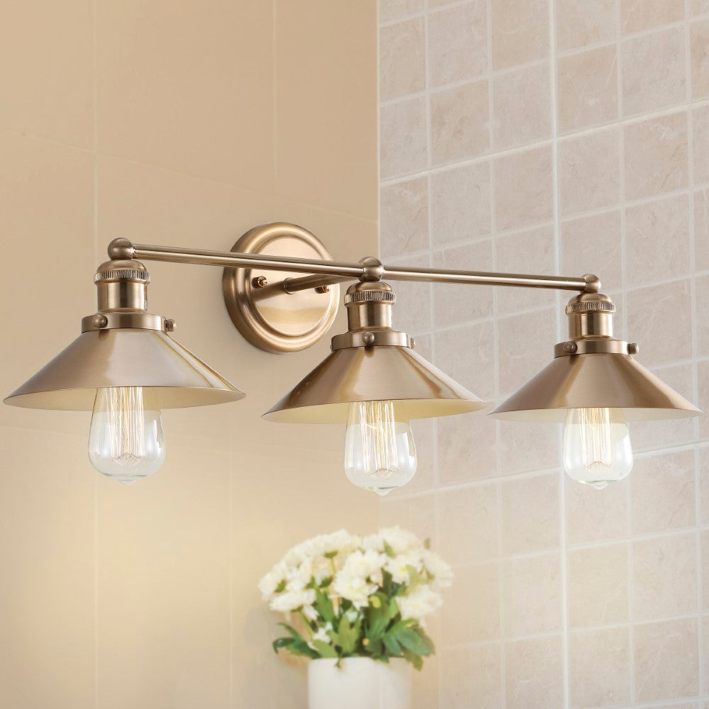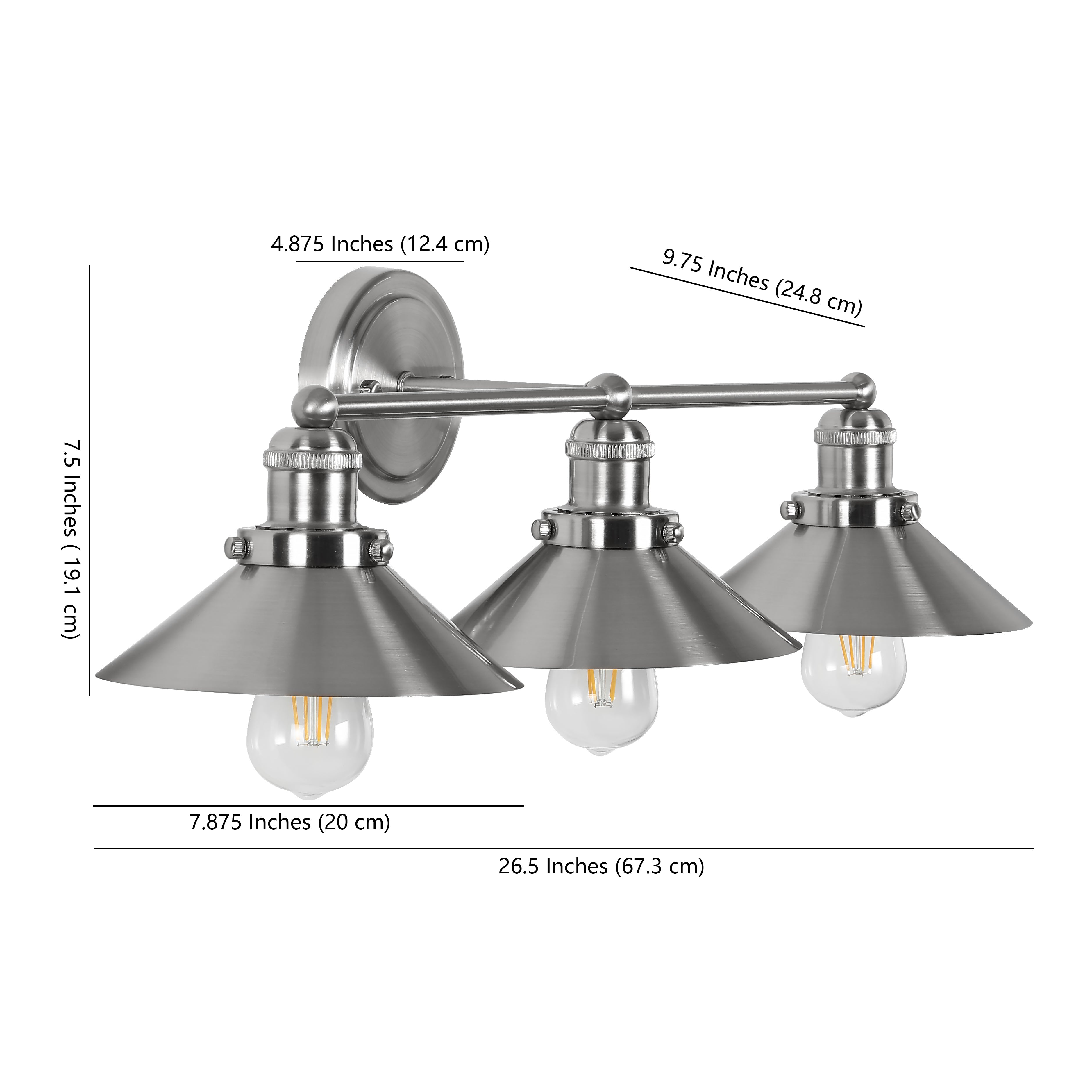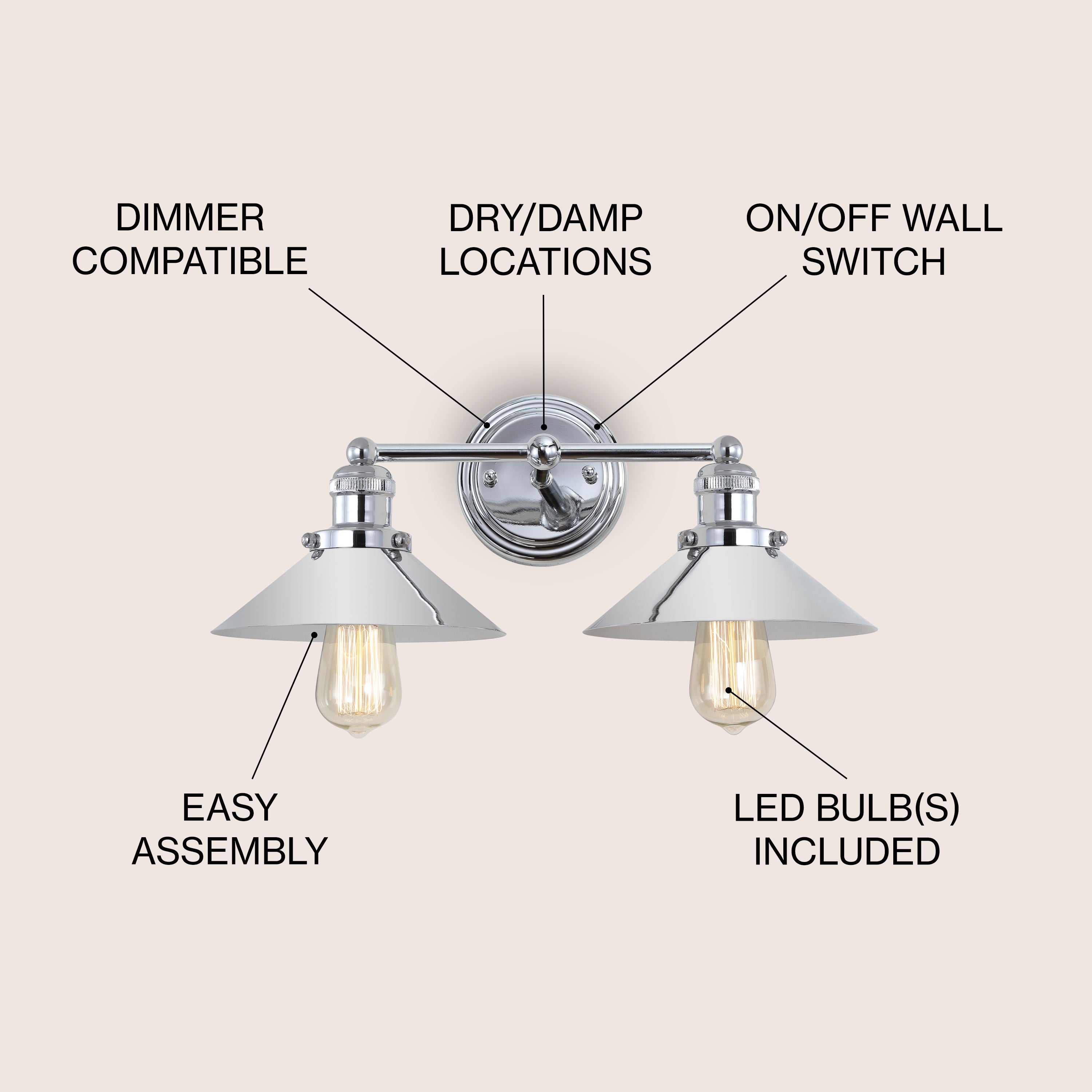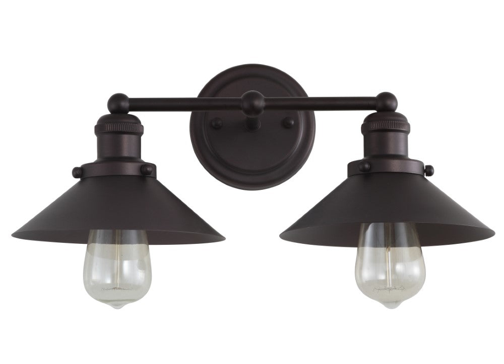 Like a classic barn light but in a modern shape and smaller scale, this classic design features a metal cone shade that conceals the top half of the bulb -- perfect for a clean, industrial look. In a matte orb finish, this sconce is perfectly at home on either side of a bathroom mirror or as extra lighting in kitchens, where your hardware truly shines. Also available in multi-light configurations, the geometric shape adds elegant interest to any space.