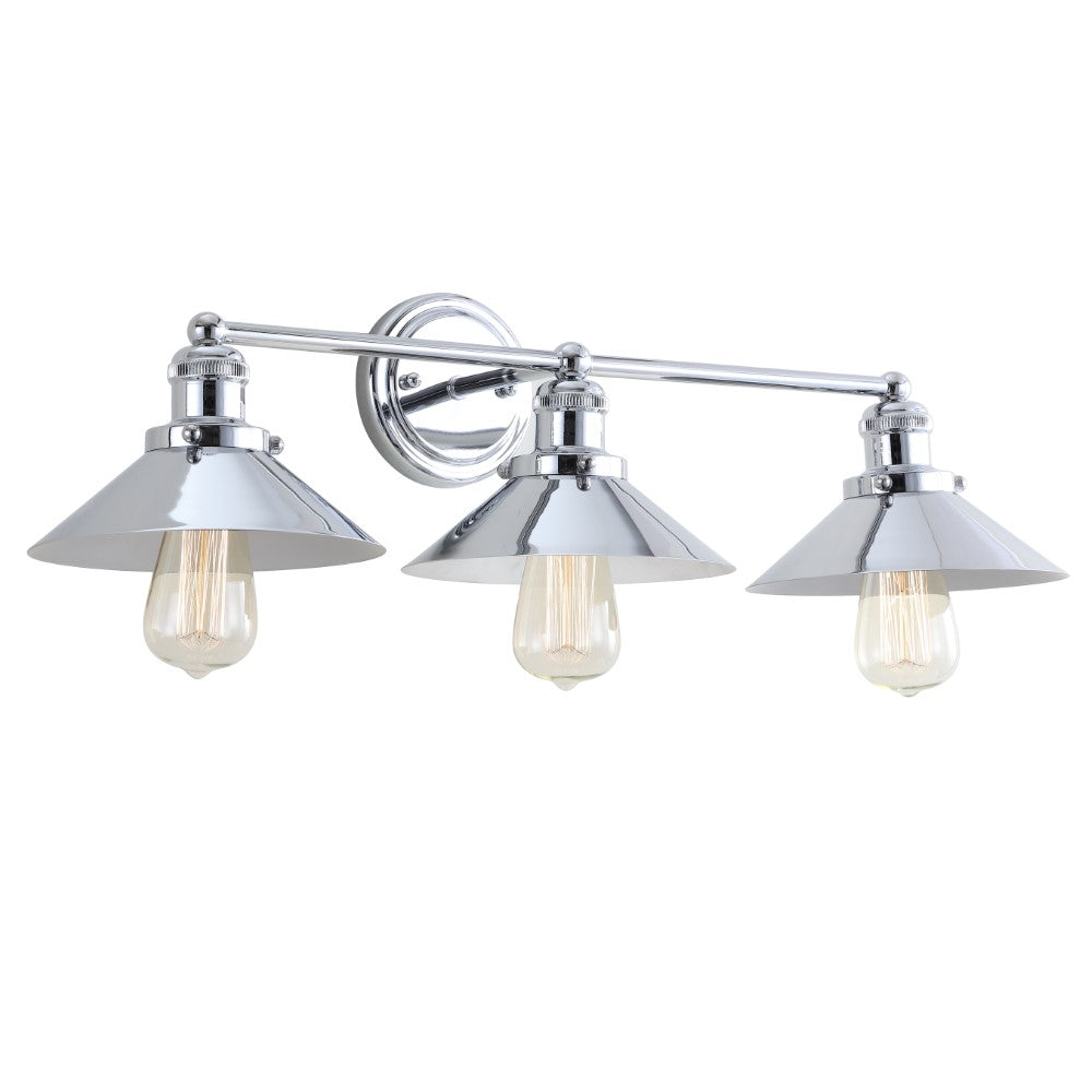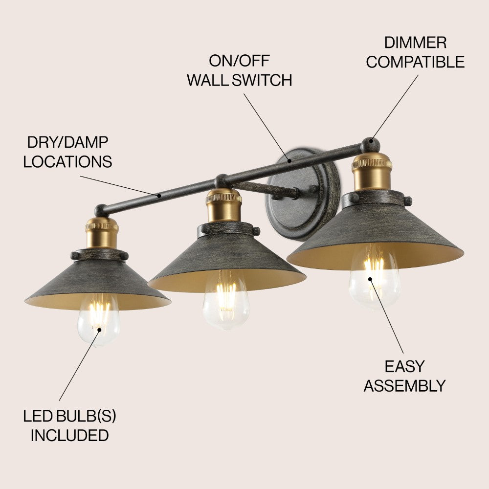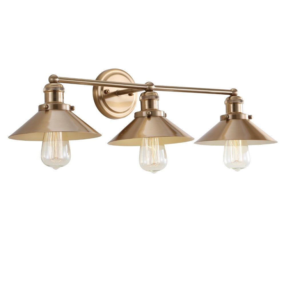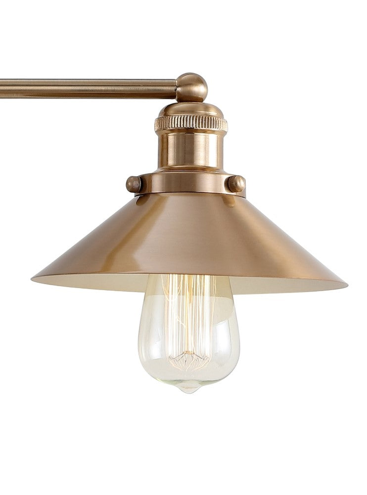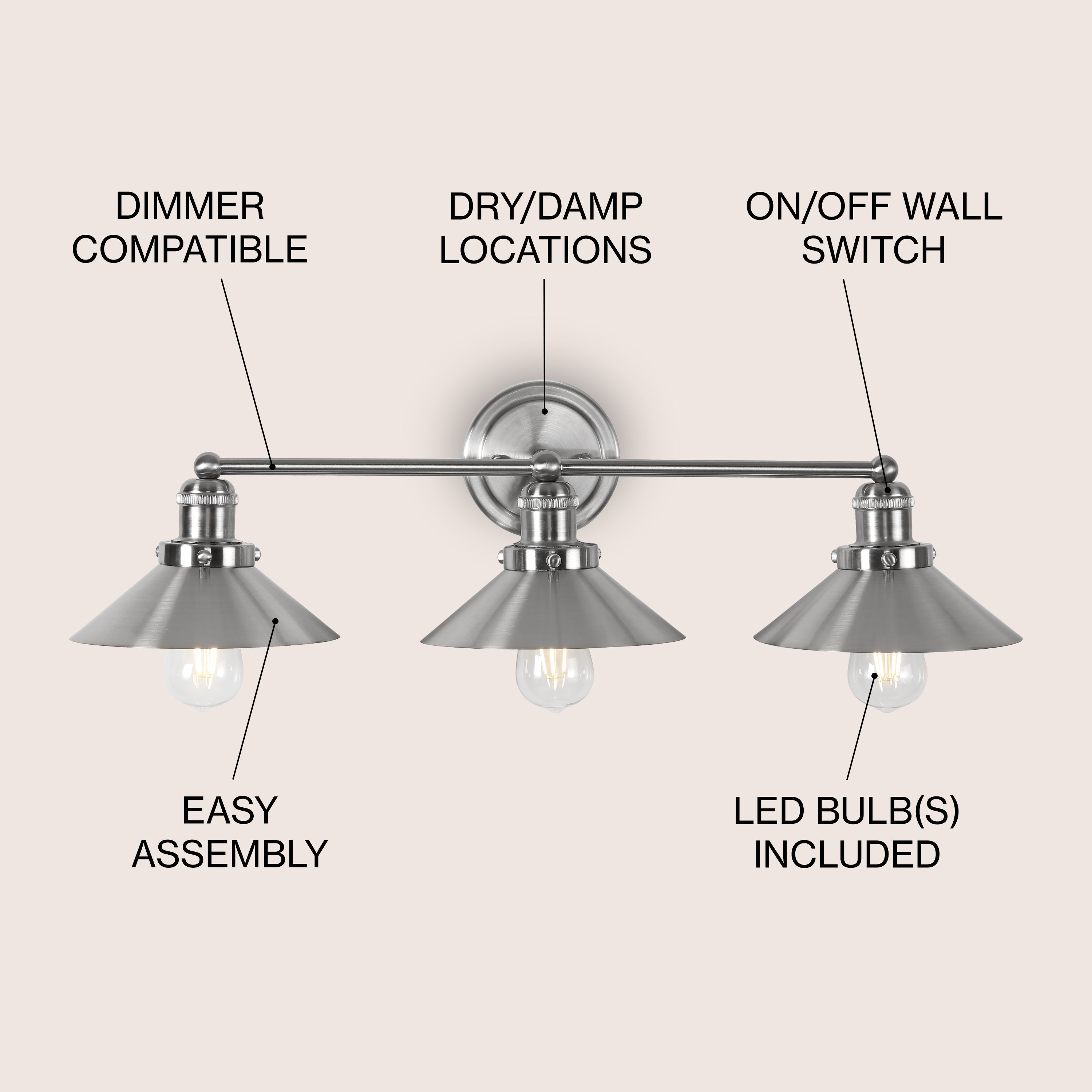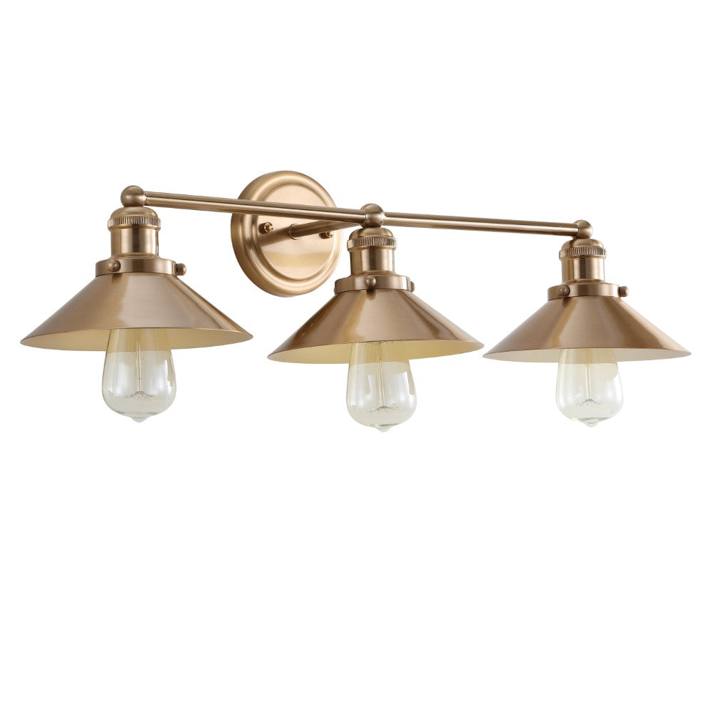 Like a classic barn light but in a modern shape and smaller scale, this classic design features a metal cone shade that conceals the top half of the bulb -- perfect for a clean, industrial look. In a matte orb finish, this sconce is perfectly at home on either side of a bathroom mirror or as extra lighting in kitchens, where your hardware truly shines. Also available in multi-light configurations, the geometric shape adds elegant interest to any space.