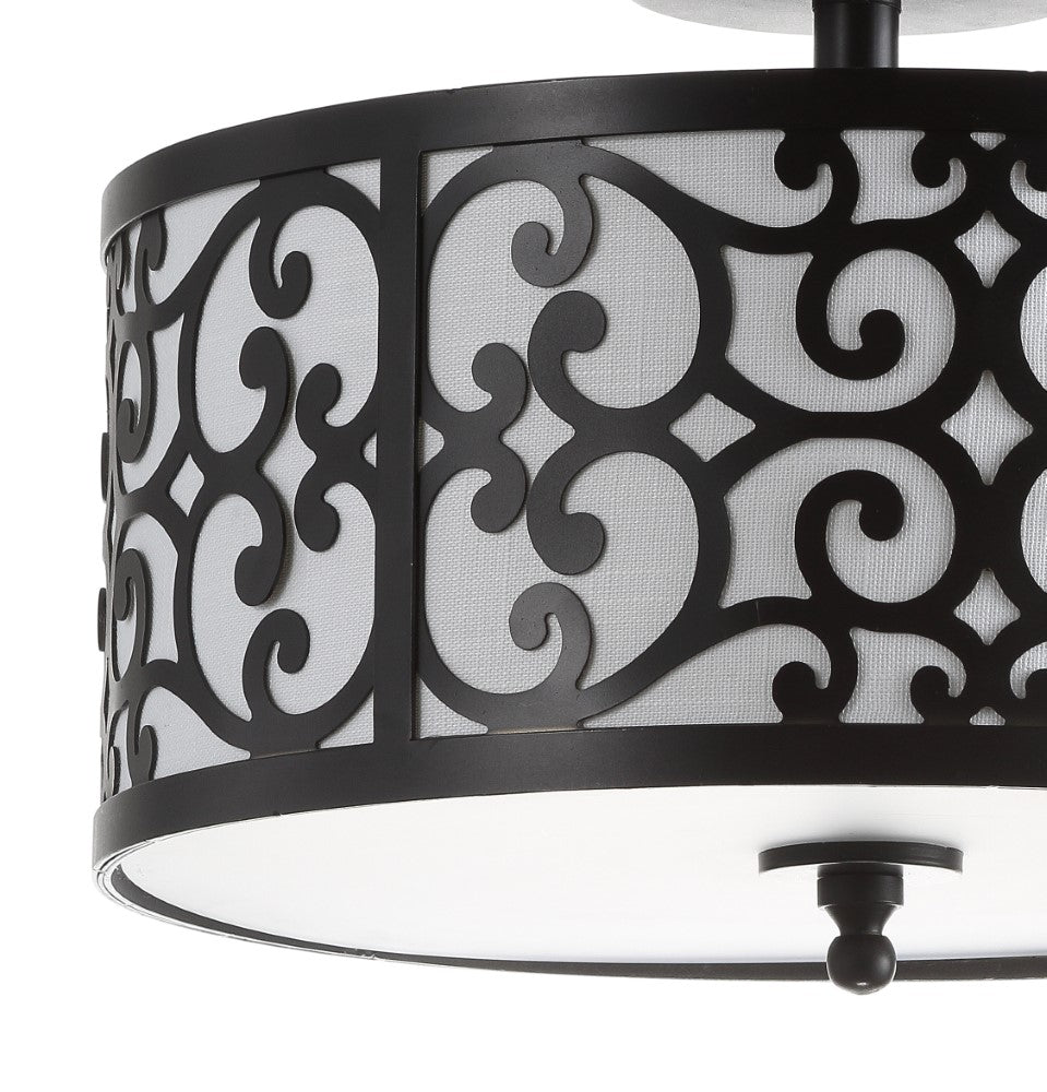 - Semi-flush to the ceiling, this fixture has the feeling of a pendant, with the space consumption of a flush mount
