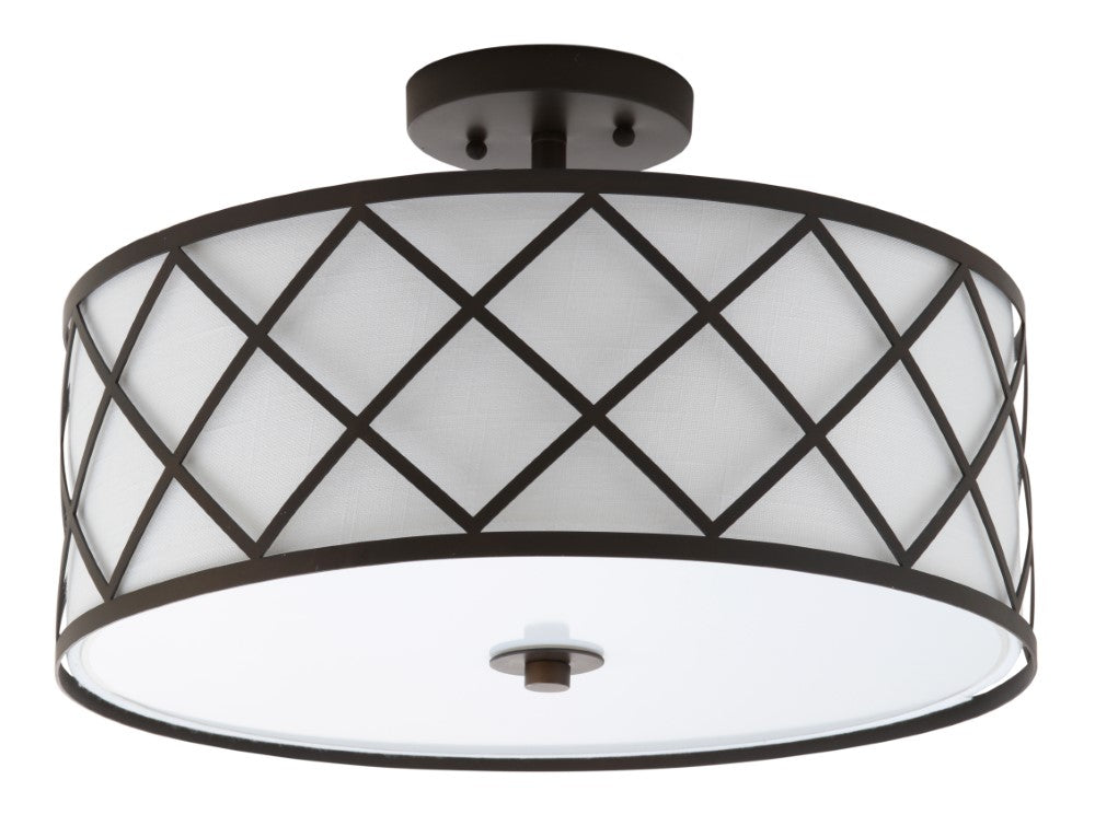 - Classic fretwork in a crisscross trellis is laser cut from iron in this flush mount light