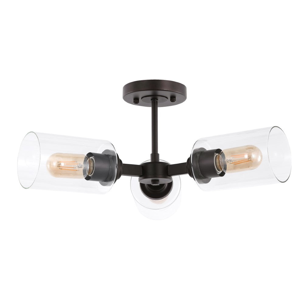 Phillip 20" Farmhouse Industrial Iron Cylinder LED Semi Flush Mount