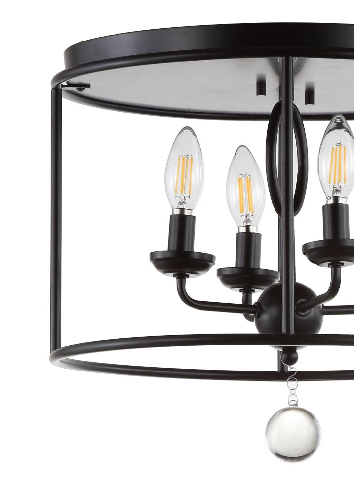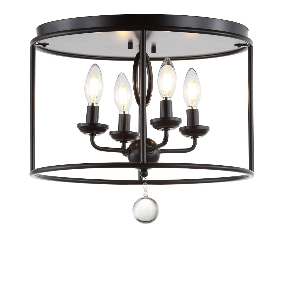 If your style is industrial with a hint of femininity, you can't go wrong with this flush mount. Holding four candelabra bulbs (LED compatible!), the oil rubbed bronze frame is softened by the addition of a single hanging crystal orb. For serious style in a small room or with a low ceiling, try a fixture like this that makes a statement without dominating the space.