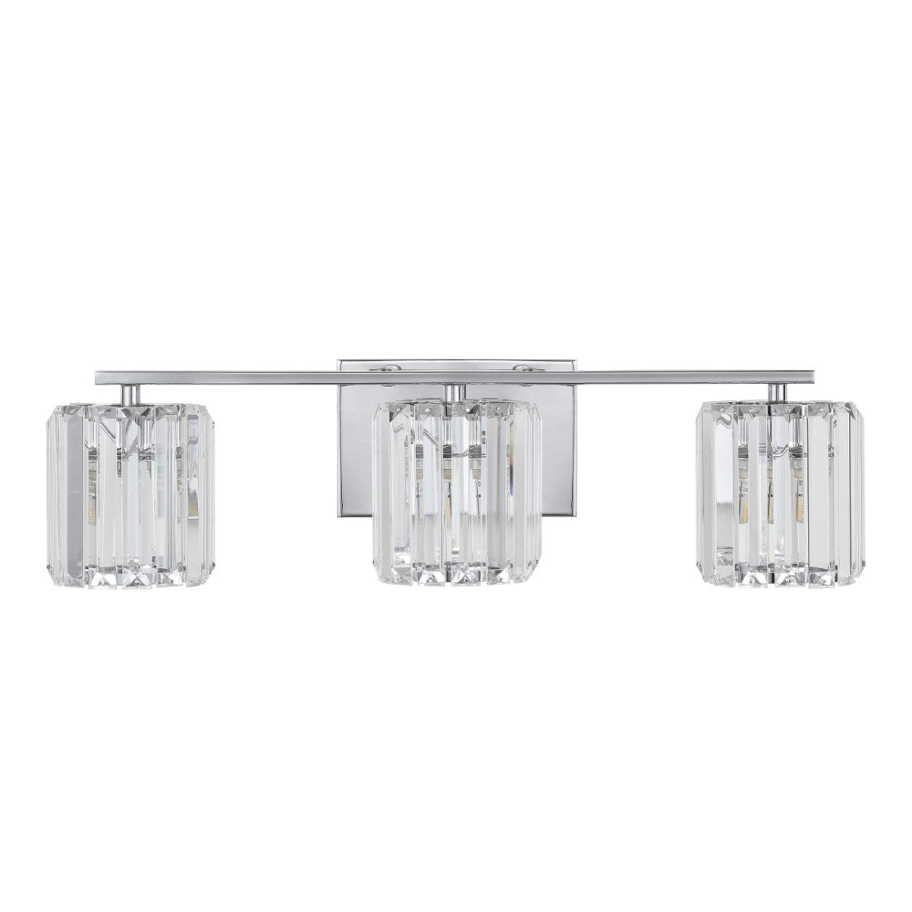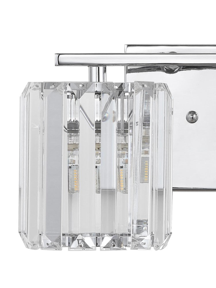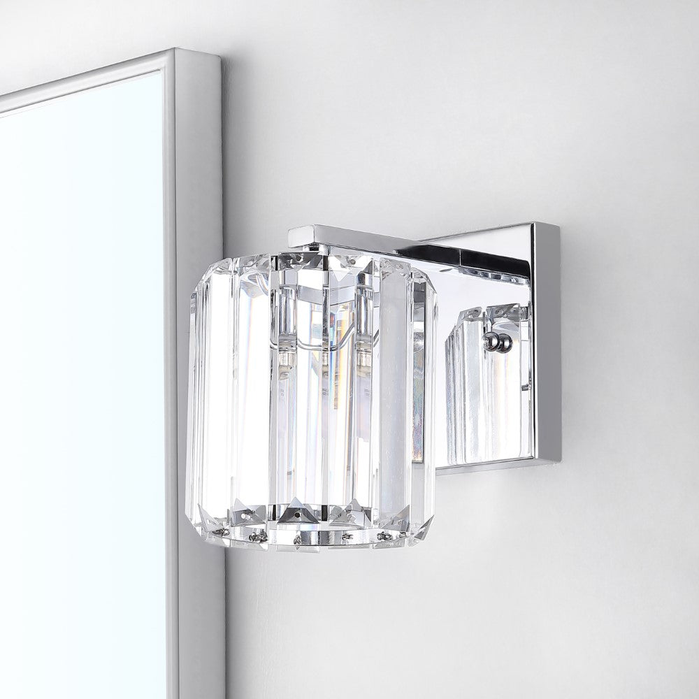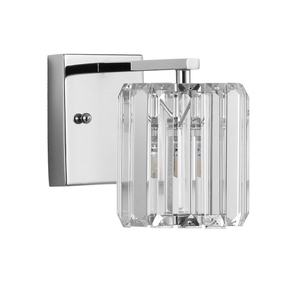 Bring on the glam with our Art Deco-inspired glass prism wall light. A single LED bulb casts a warm glow, providing plenty of light. Sparkling glass and chrome add feminine style to your bath vanity, kitchen, hallway, or entry.