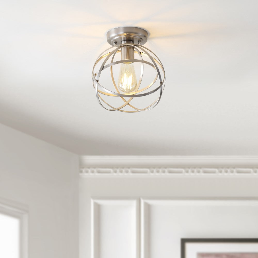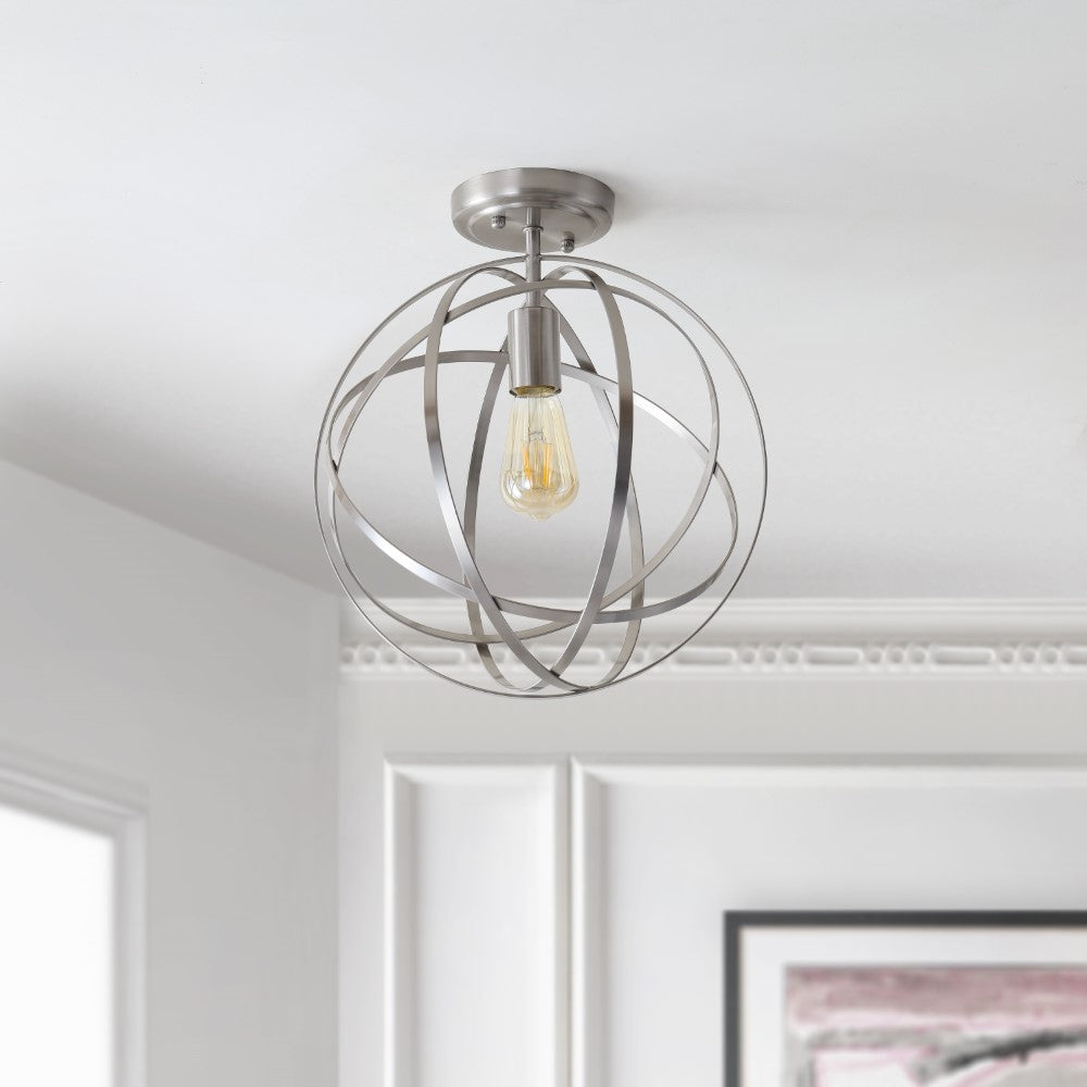 A modern orb chandelier now in a semi-flush mount pendant, this style has all the components of classic design but in a modern silhouette